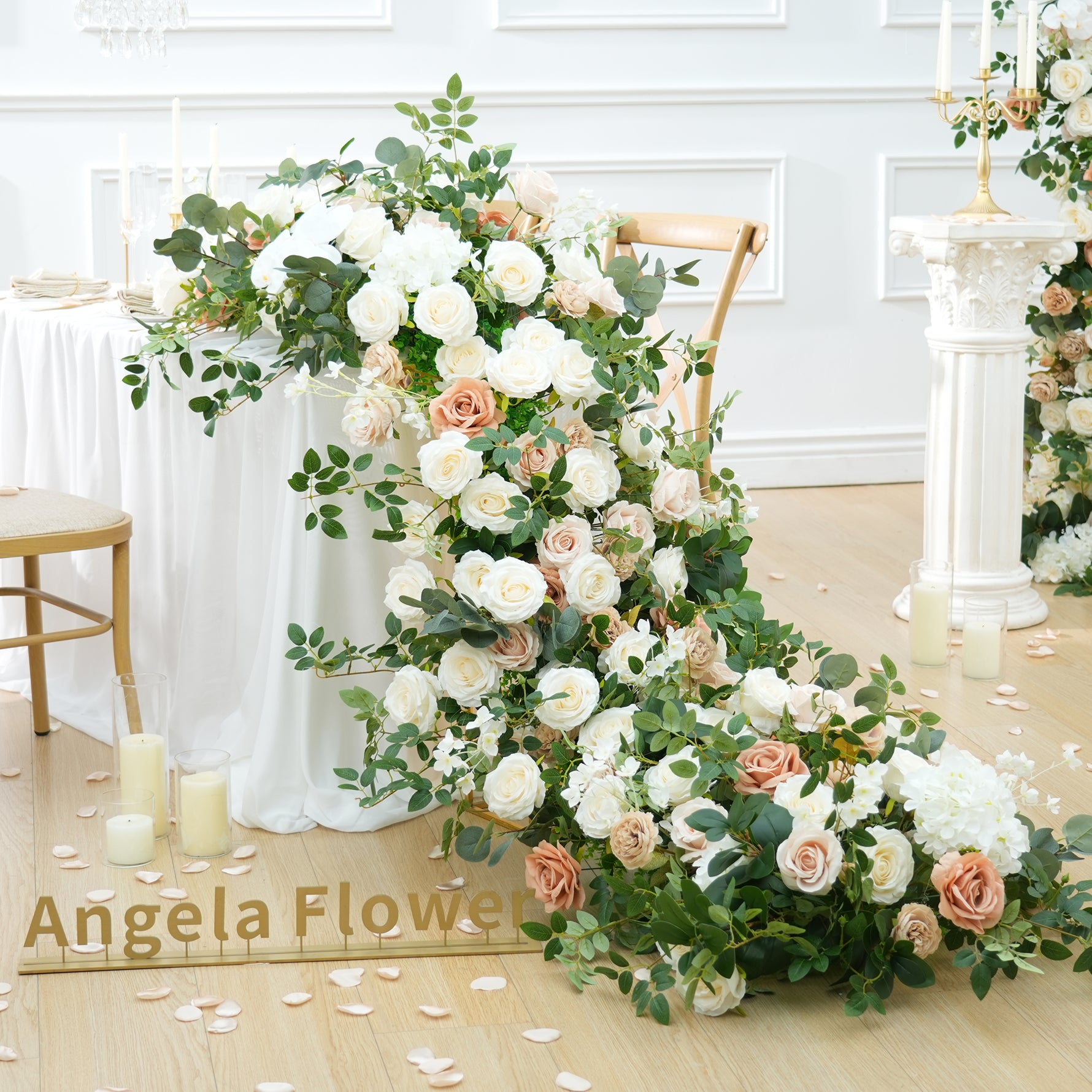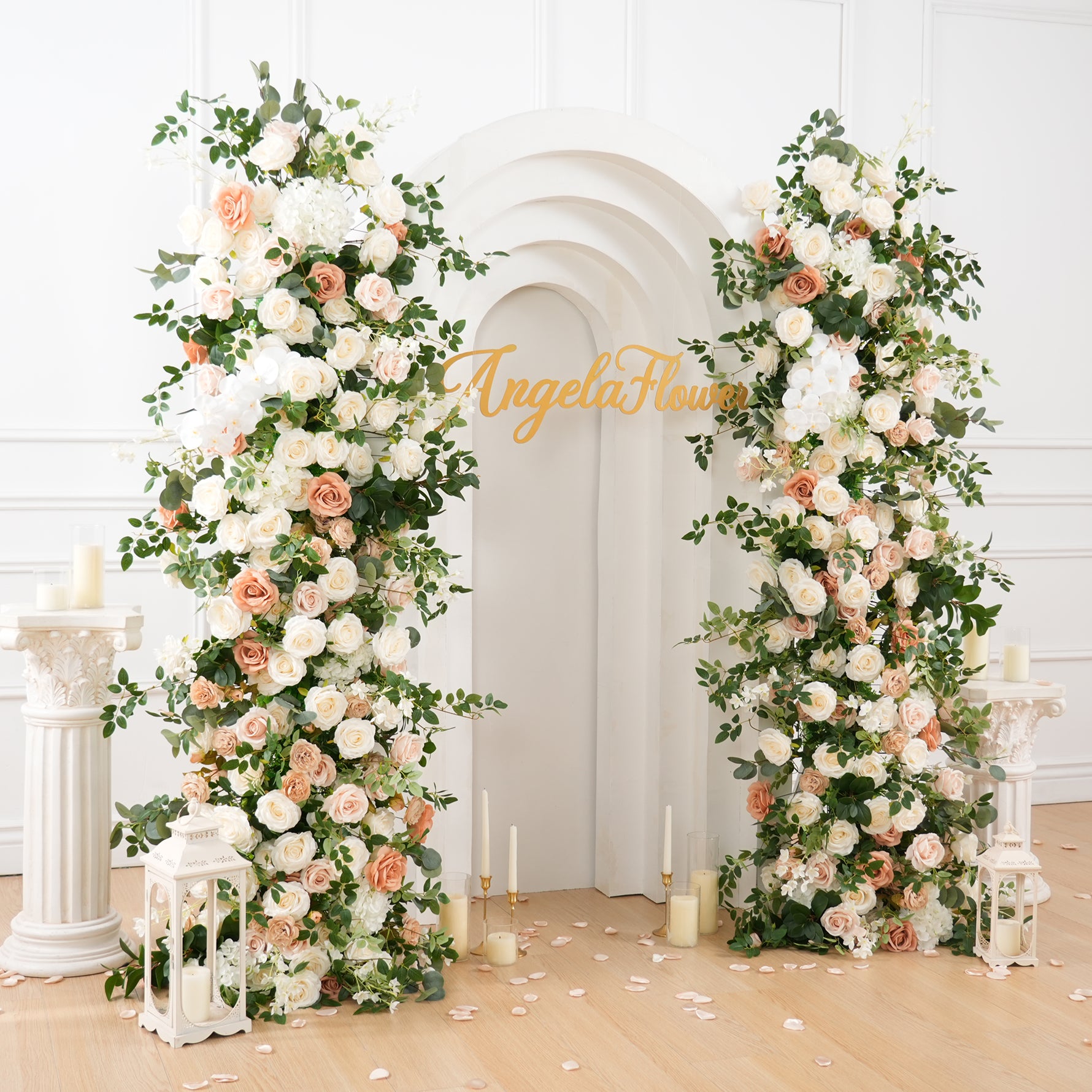 White themed wedding, let's witness their romantic journey with a white rose backdrop!