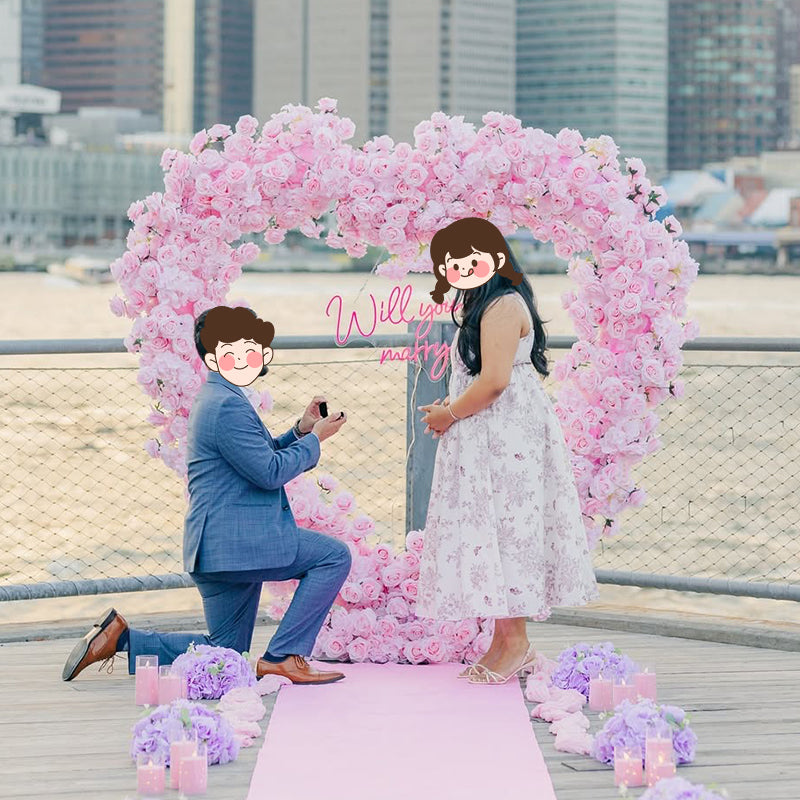 S-A7750 5D Pink Rose Green Leaves Wedding Backdrop Arch KT Board Decor Floral Arrangement