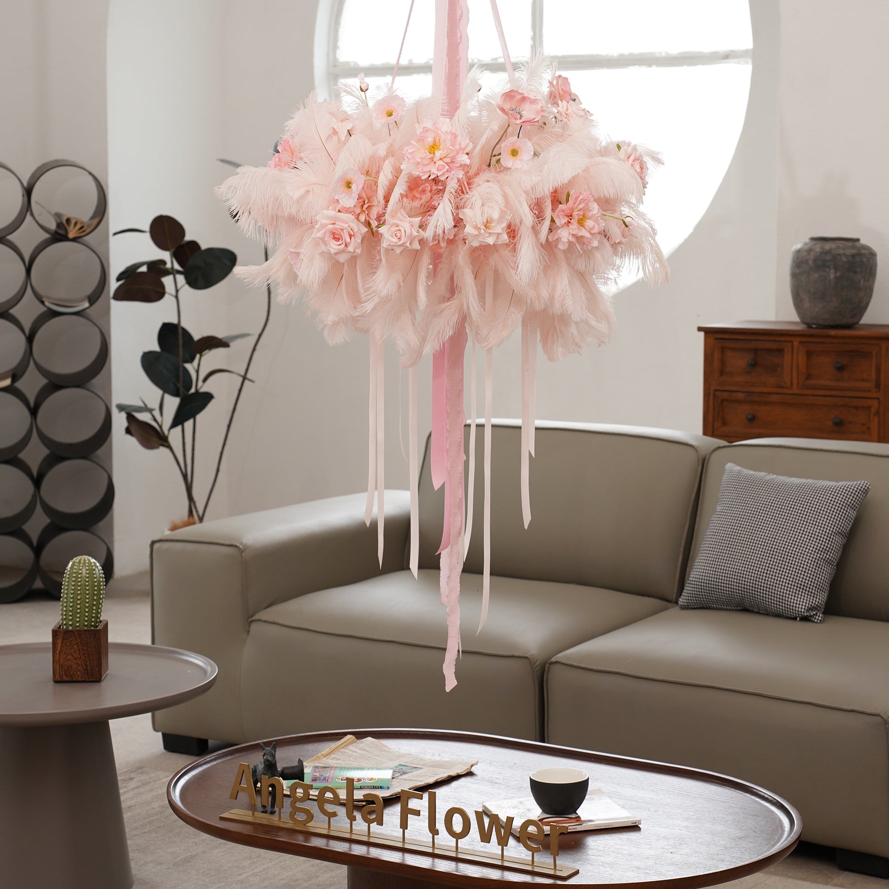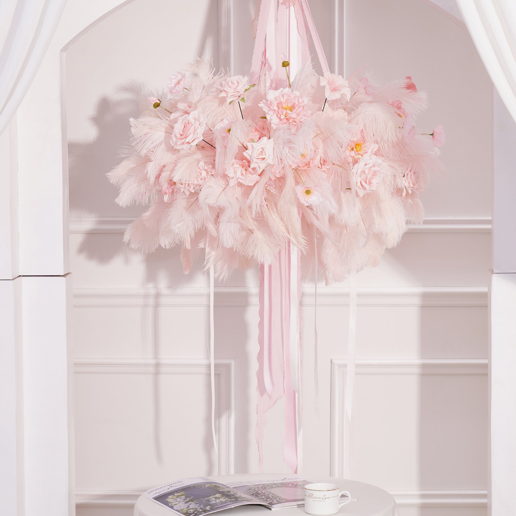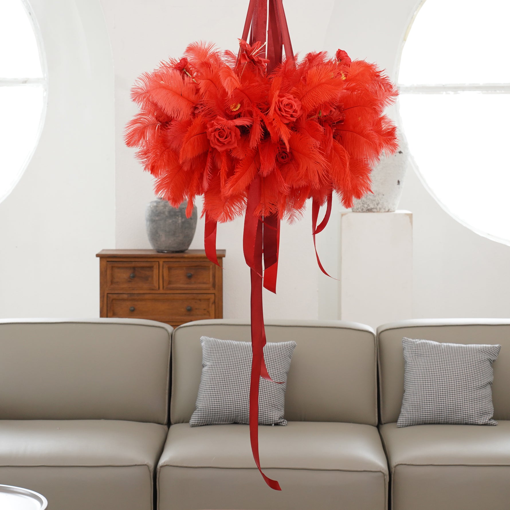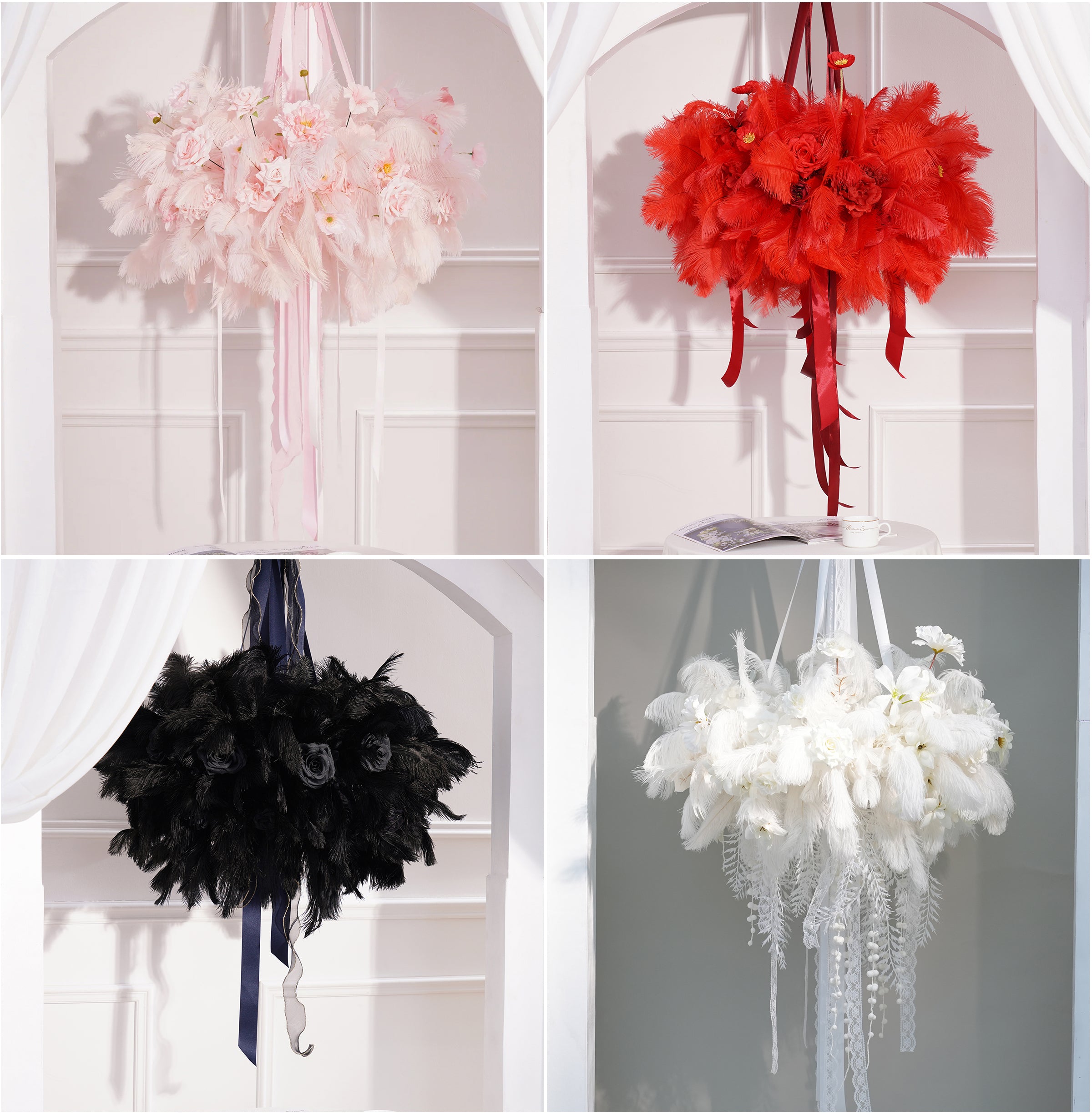 A8867 Feather Ribbon Hanging Wreath Wedding Background Ceiling Hoop Decor Props