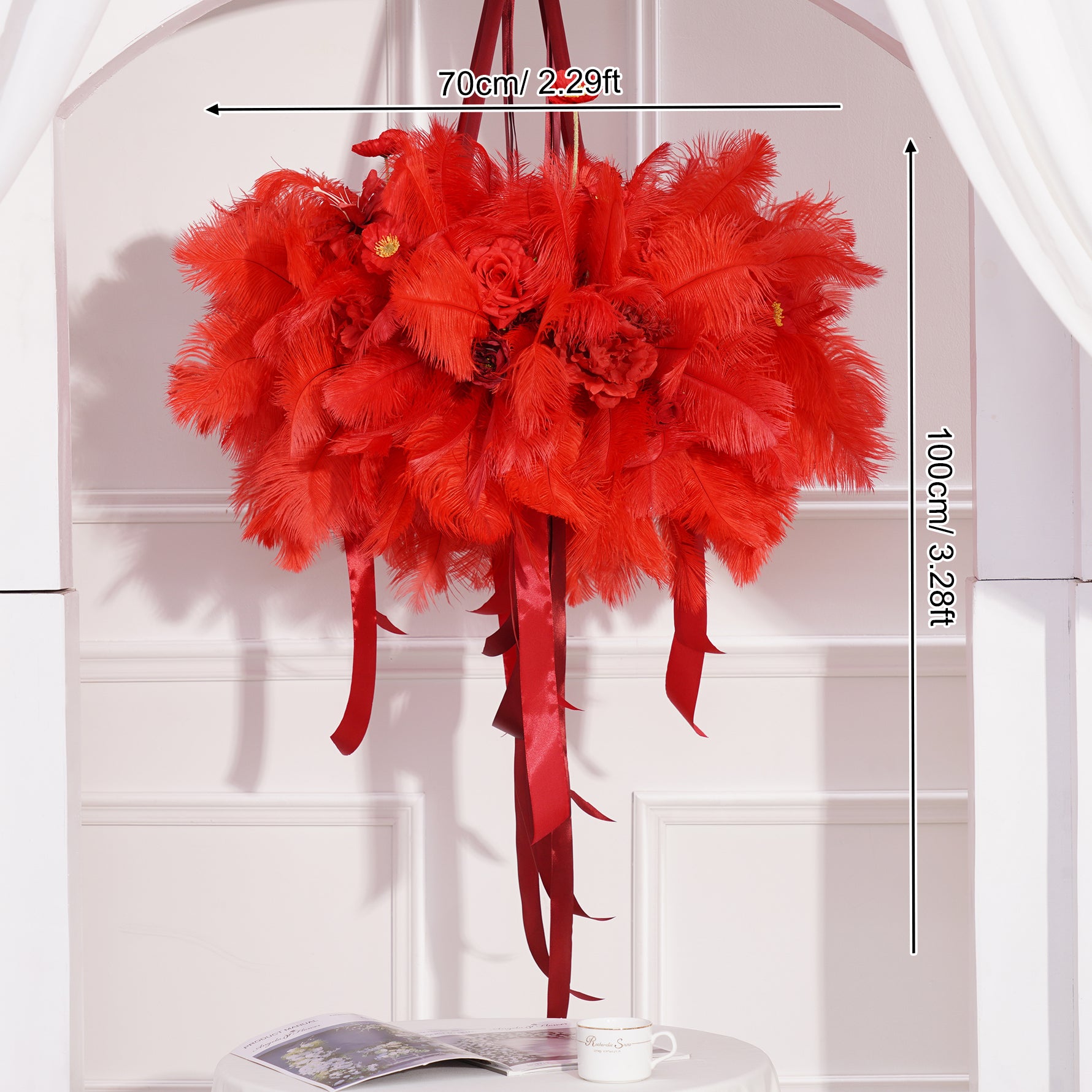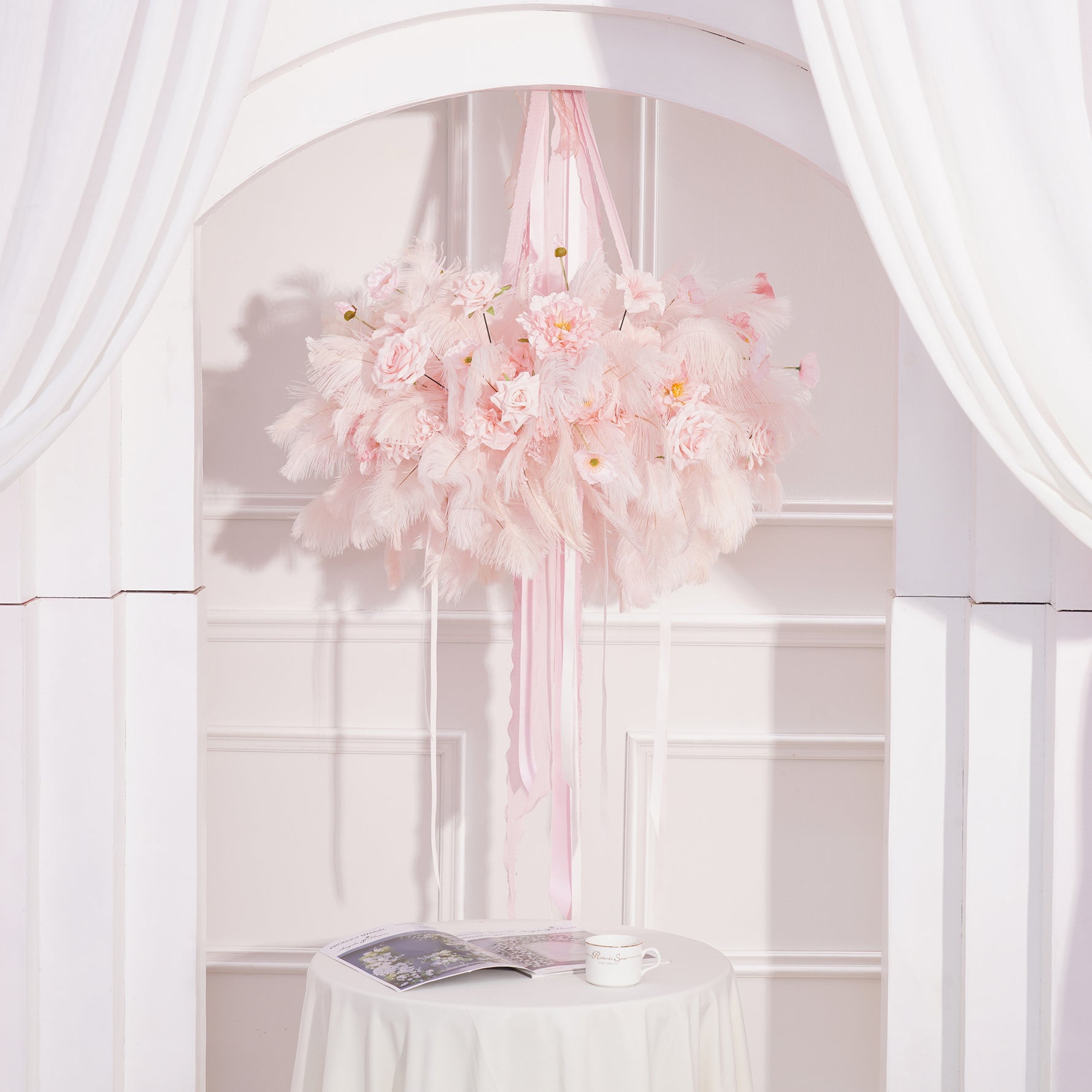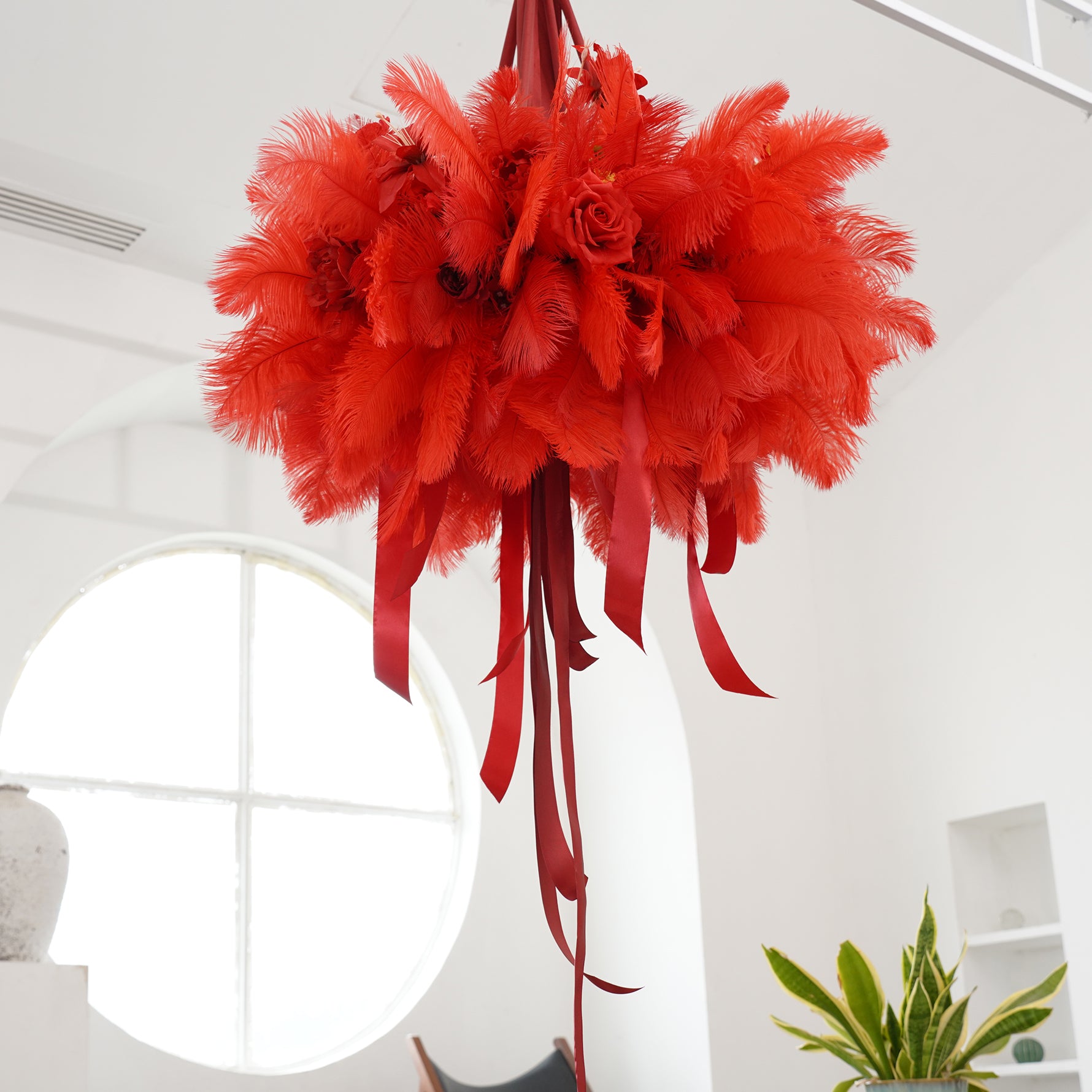 A8867 Feather Ribbon Hanging Wreath Wedding Background Ceiling Hoop Decor Props