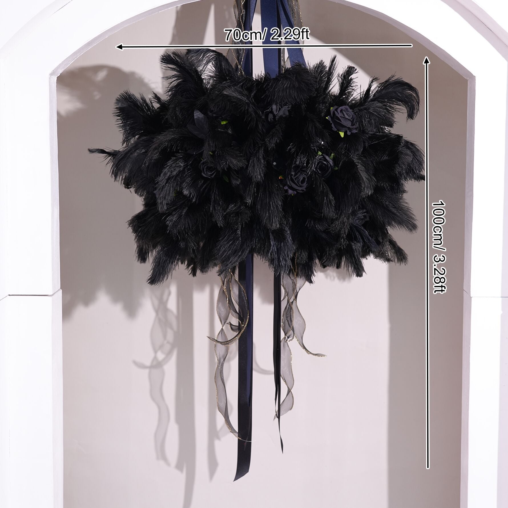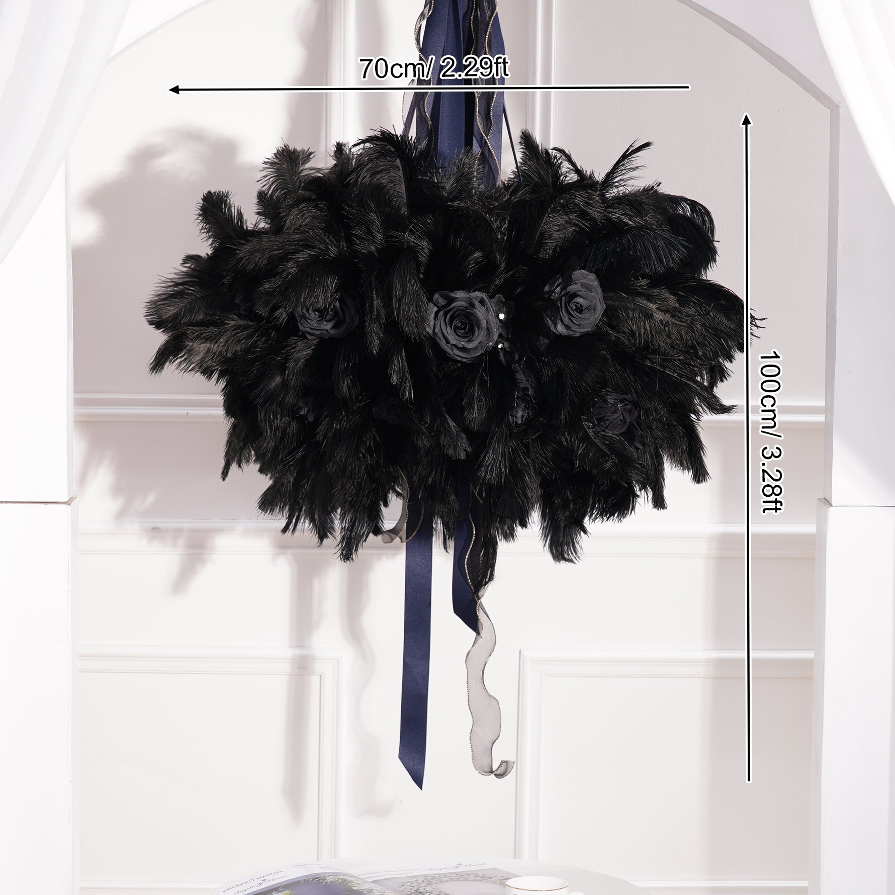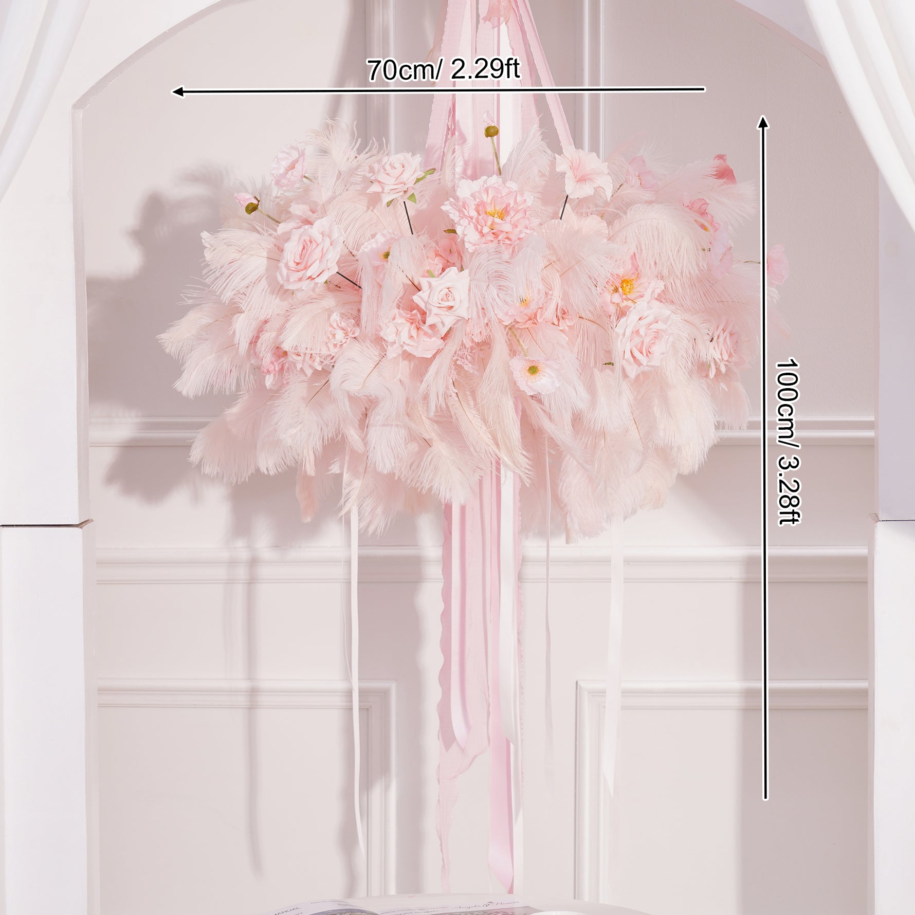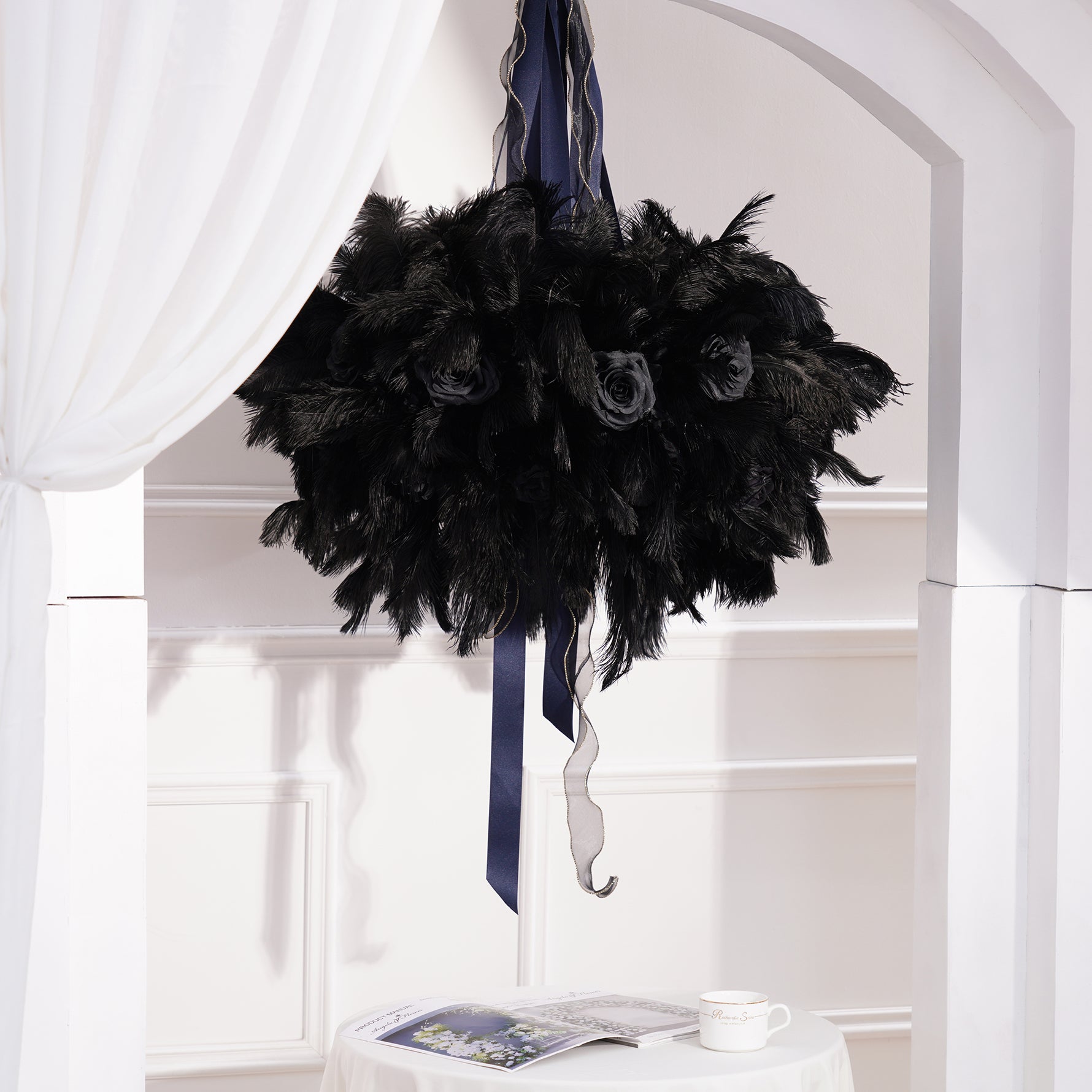 A8867 Feather Ribbon Hanging Wreath Wedding Background Ceiling Hoop Decor Props
