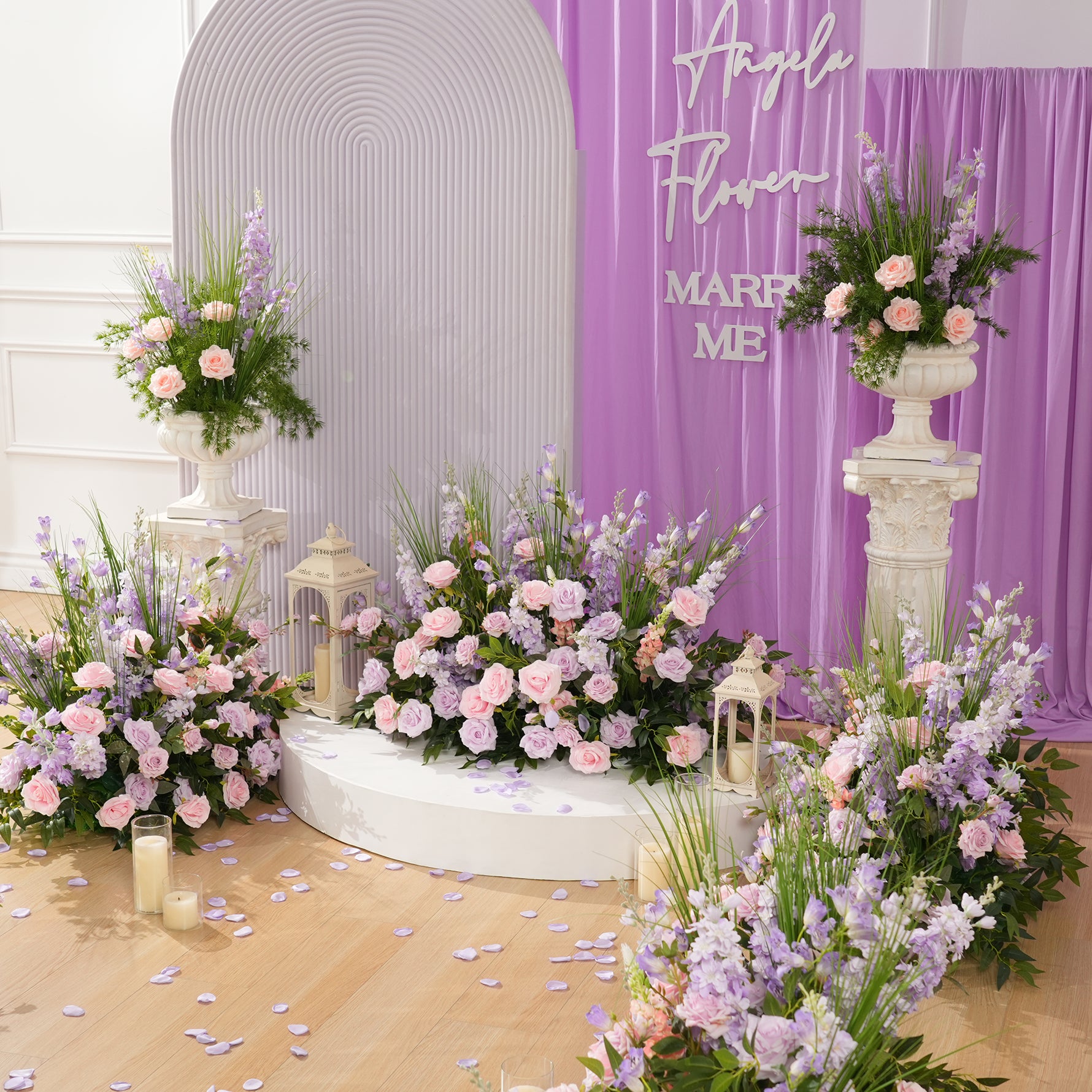 A9029 Purple Delphinium Pink Flower Arrangement Wedding Aisle Floral Supplies