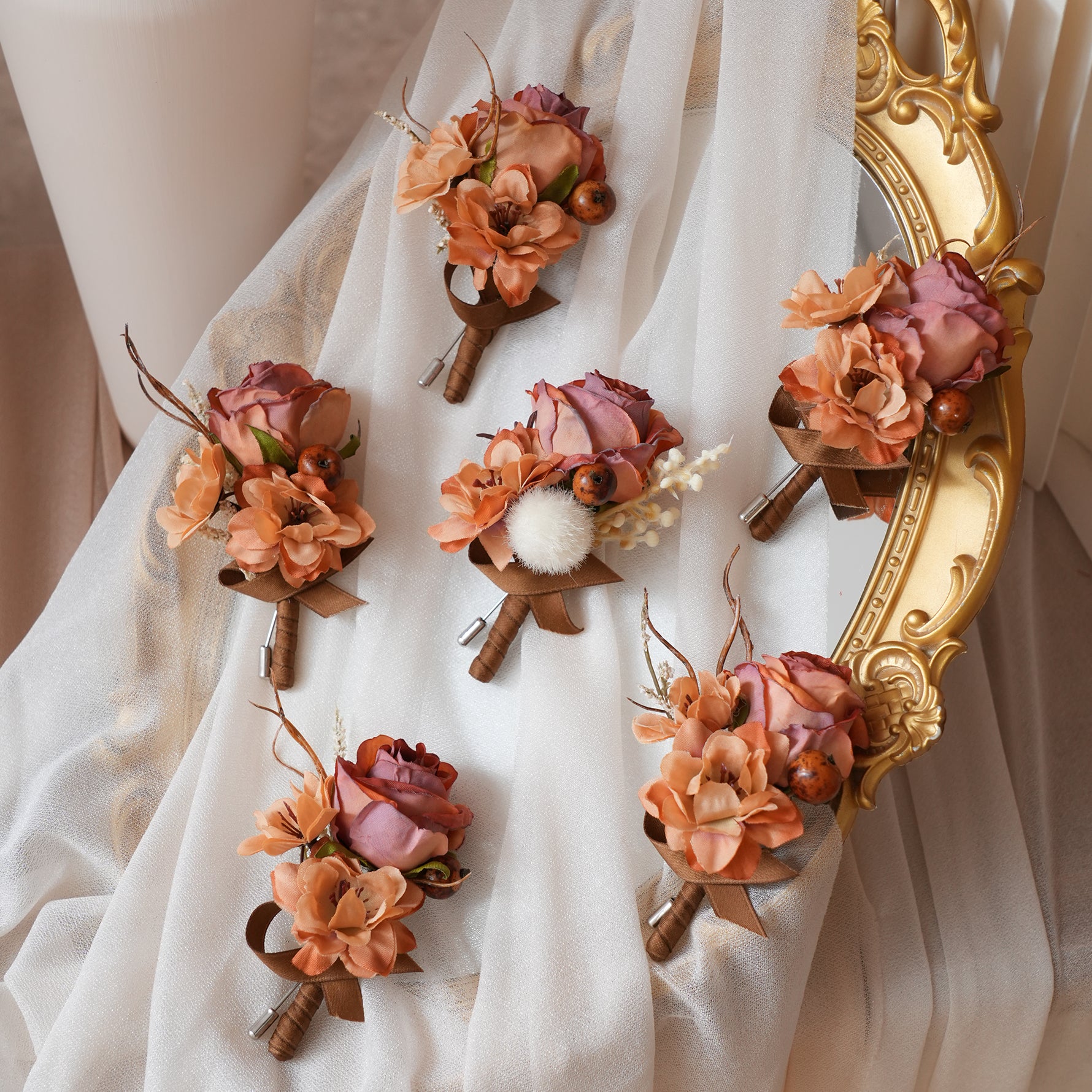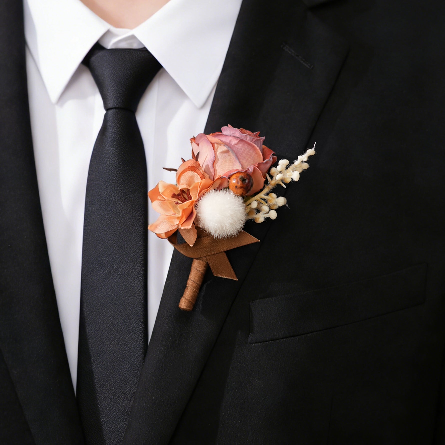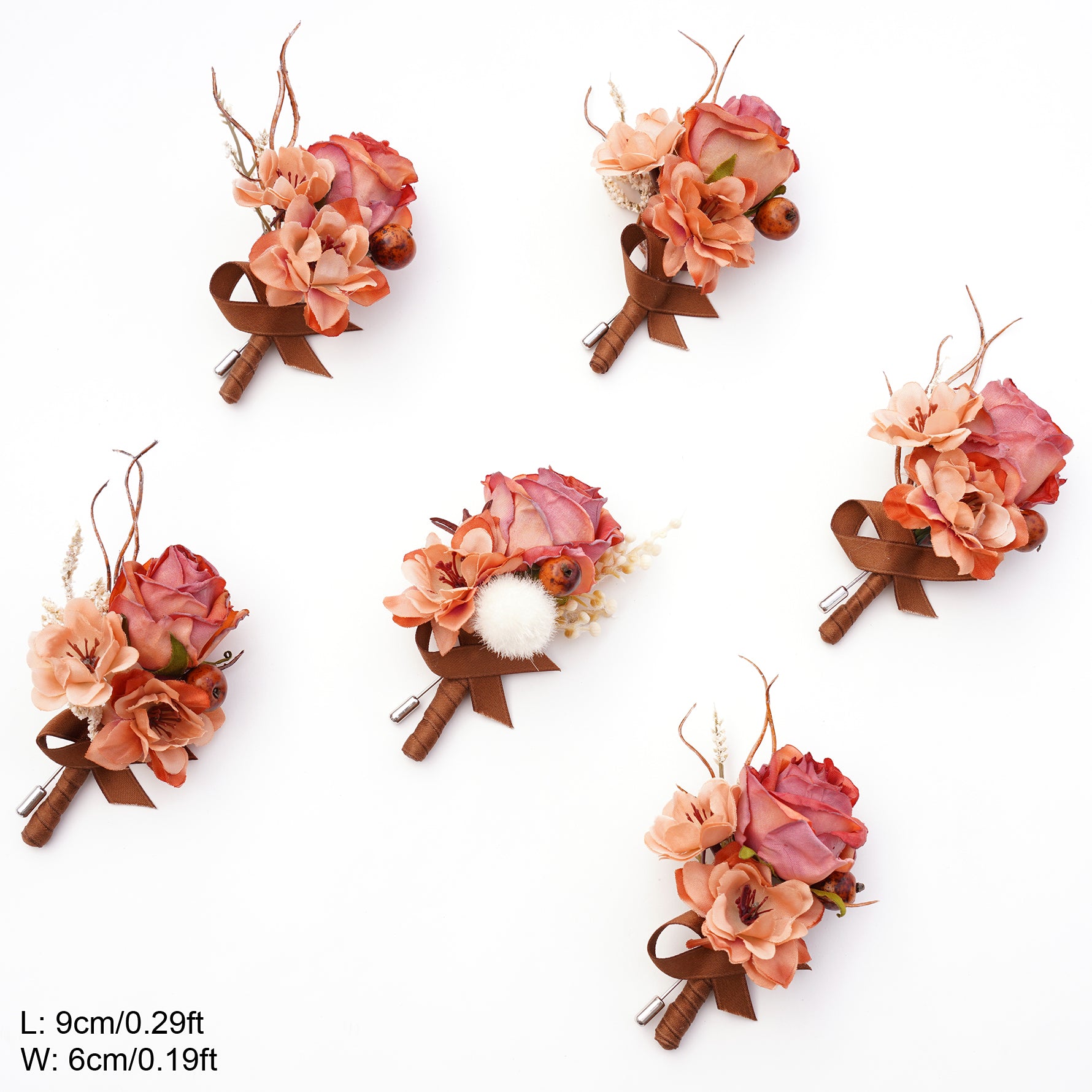 Color Inspiration: This exquisite set of 6 coffee brown boutonnieres is the perfect finishing touch for your wedding party. Crafted from high-quality artificial flowers, these boutonnieres offer a rustic, vintage charm, ideal for groomsmen and the groom. The set ensures a cohesive and elegant look, suitable for weddings, proms, or any special occasion.