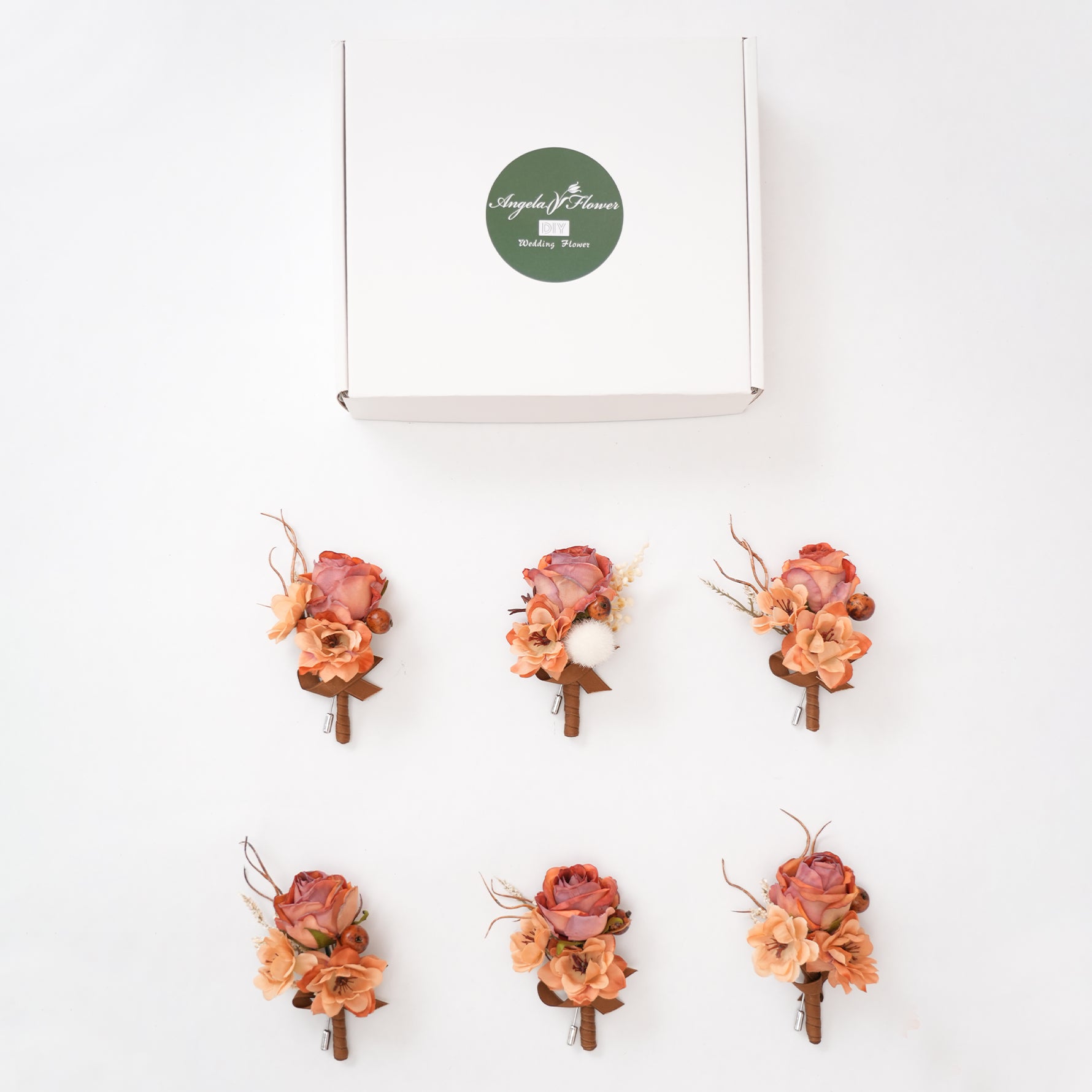 A9057 6pcs/set Artificial Coffee Corsages Boutonniere Groomsmen Wedding Party Props