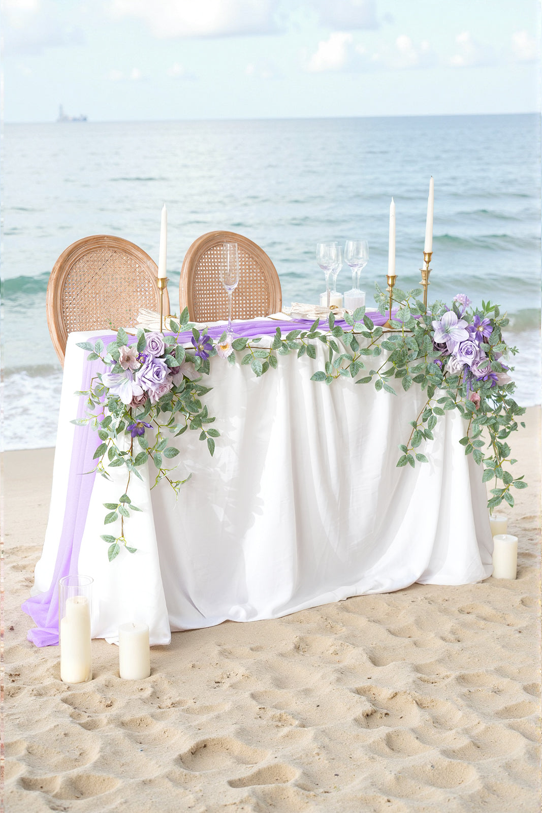 Color Inspiration: Elevate your space with our purple eucalyptus garland, artfully blended with delicate roses and daisies. This versatile set combines rustic charm and romantic elegance, perfect for creating a harmonious decor theme. Ideal for weddings, special events, or adding a graceful touch to your daily life. Durable and reusable for long-lasting beauty.