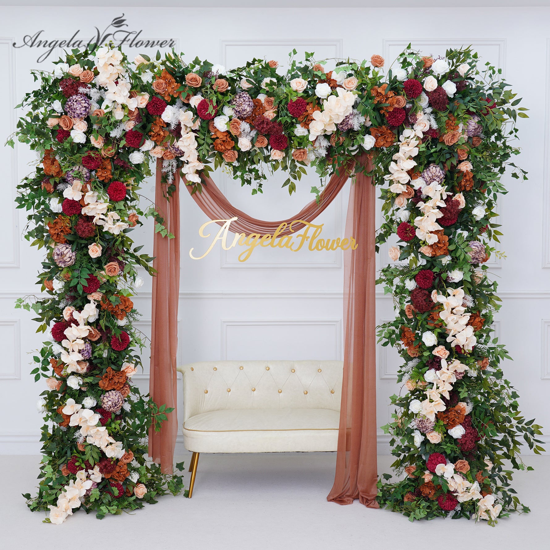 A8763 Coffee White Champagne Greenery Flower Row Decor Wedding Arch Frame