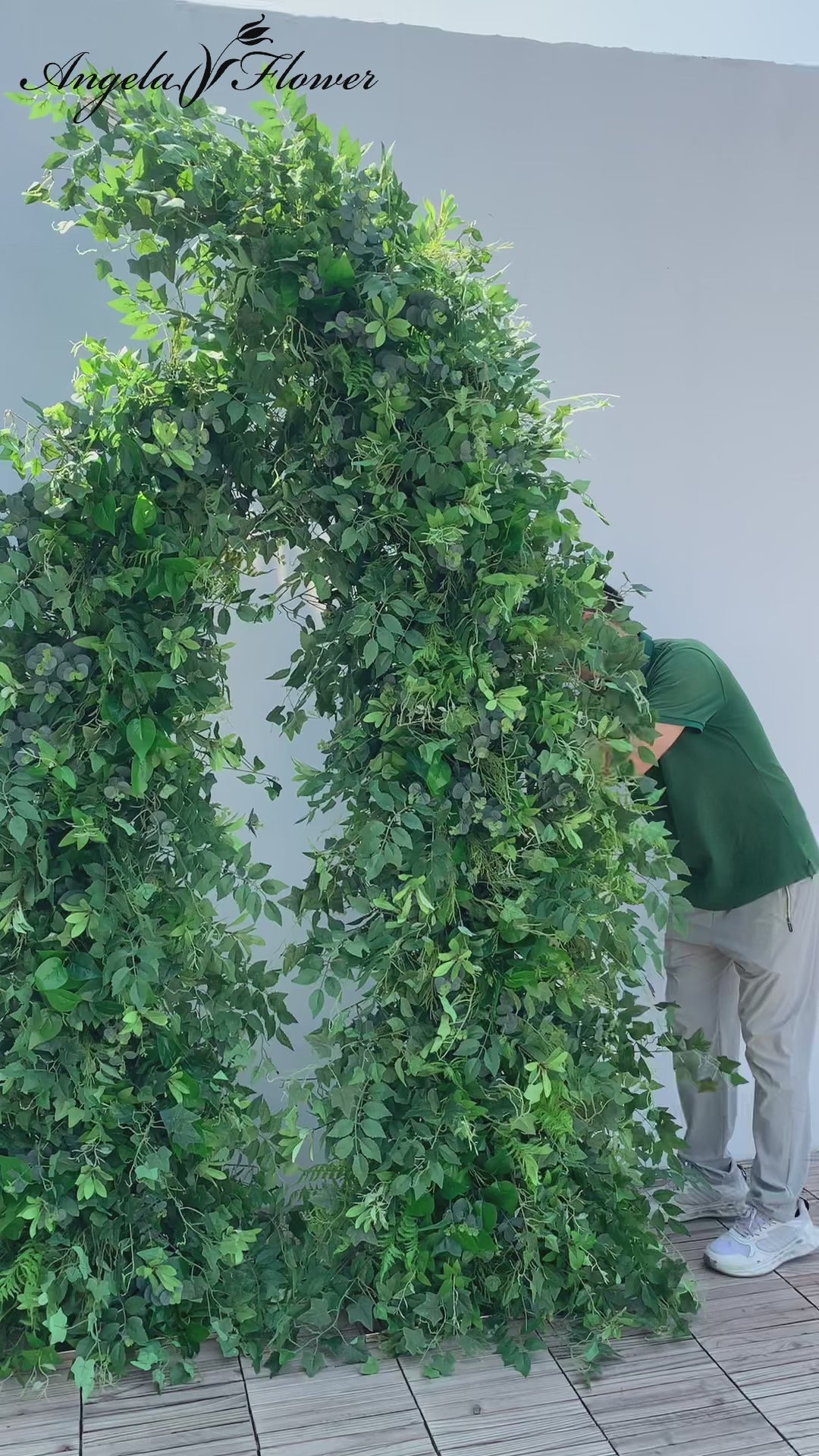 A8157 Outdoor Wedding Backdrop Horn Arch Decor Green Leaves Floral Arrangement