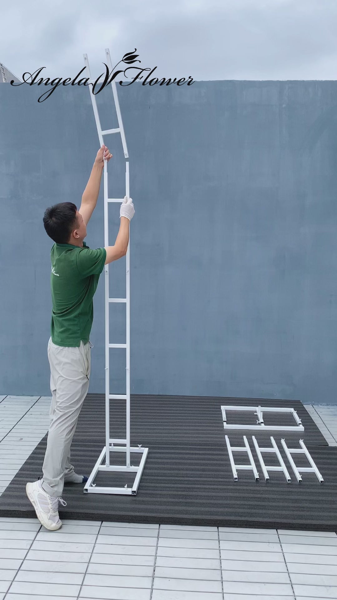 Angela Flower Wrought-Iron White Double Pipe Straight Square Shelf Wedding Stage Backdrop Flower Stand A8084