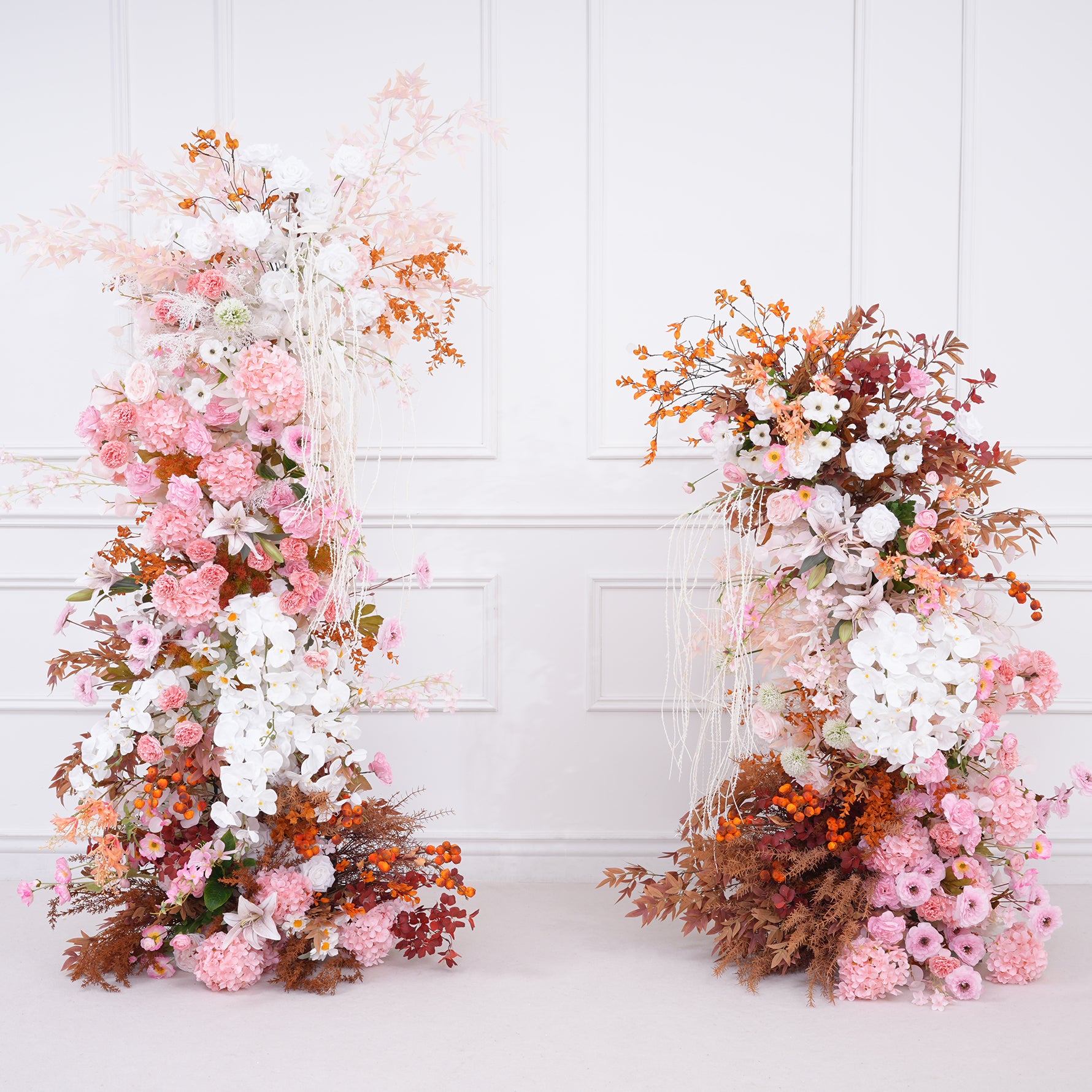 A8825 Autumn Pink Hydrangea Floor Floral Welcome Sign Flower Horn Arch Wedding Decor