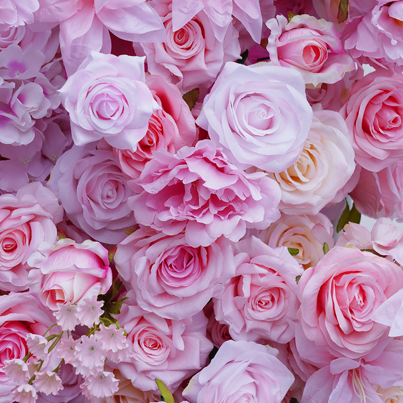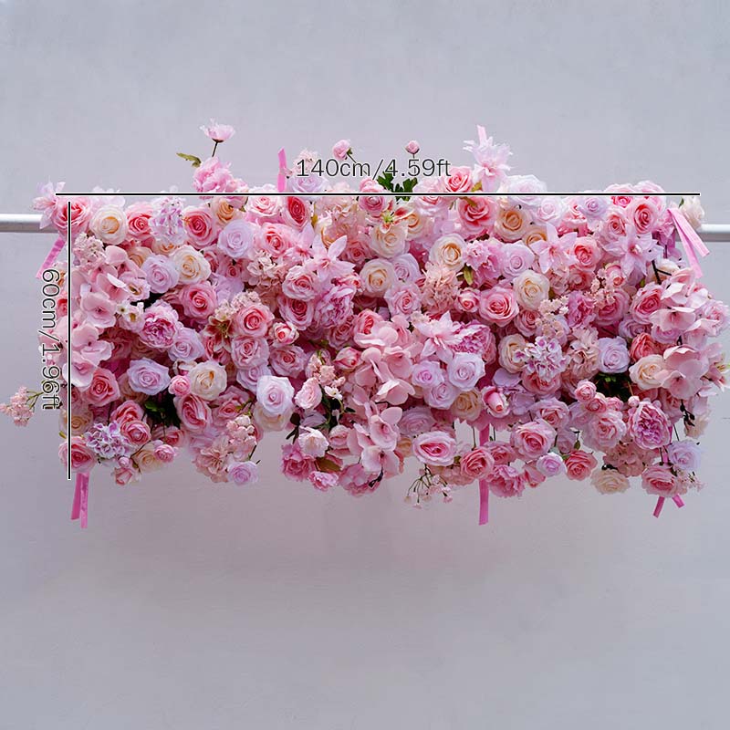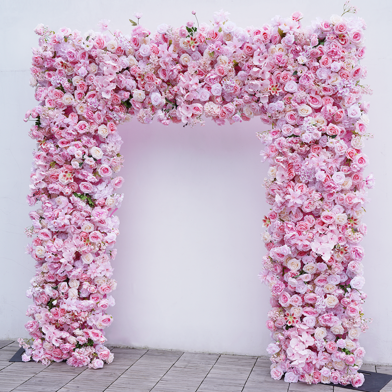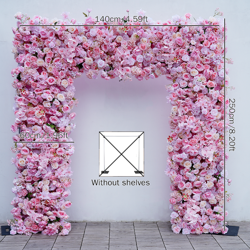 A8630 Pink Rose Cloth Base Flower Row Decor Wedding Backdrop Square Frame