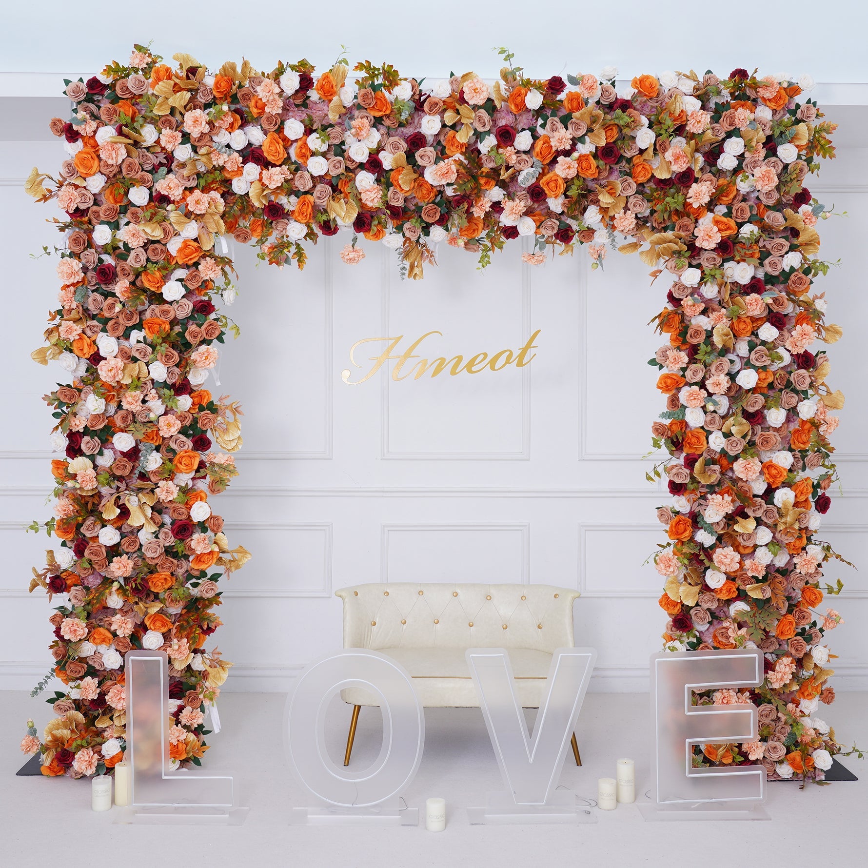 A8779 Autumn Coffee Cloth Base Flower Row Decor Wedding Backdrop Square Frame