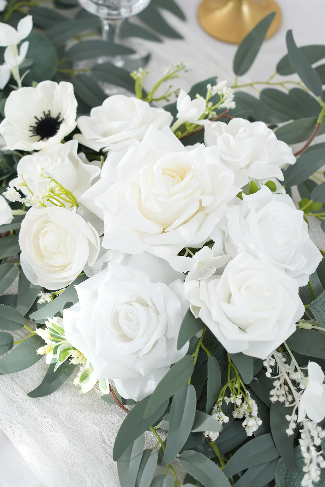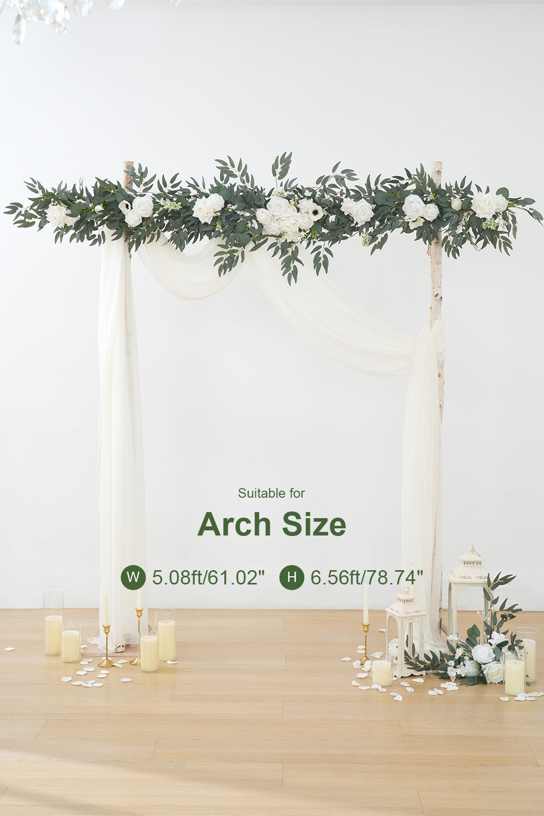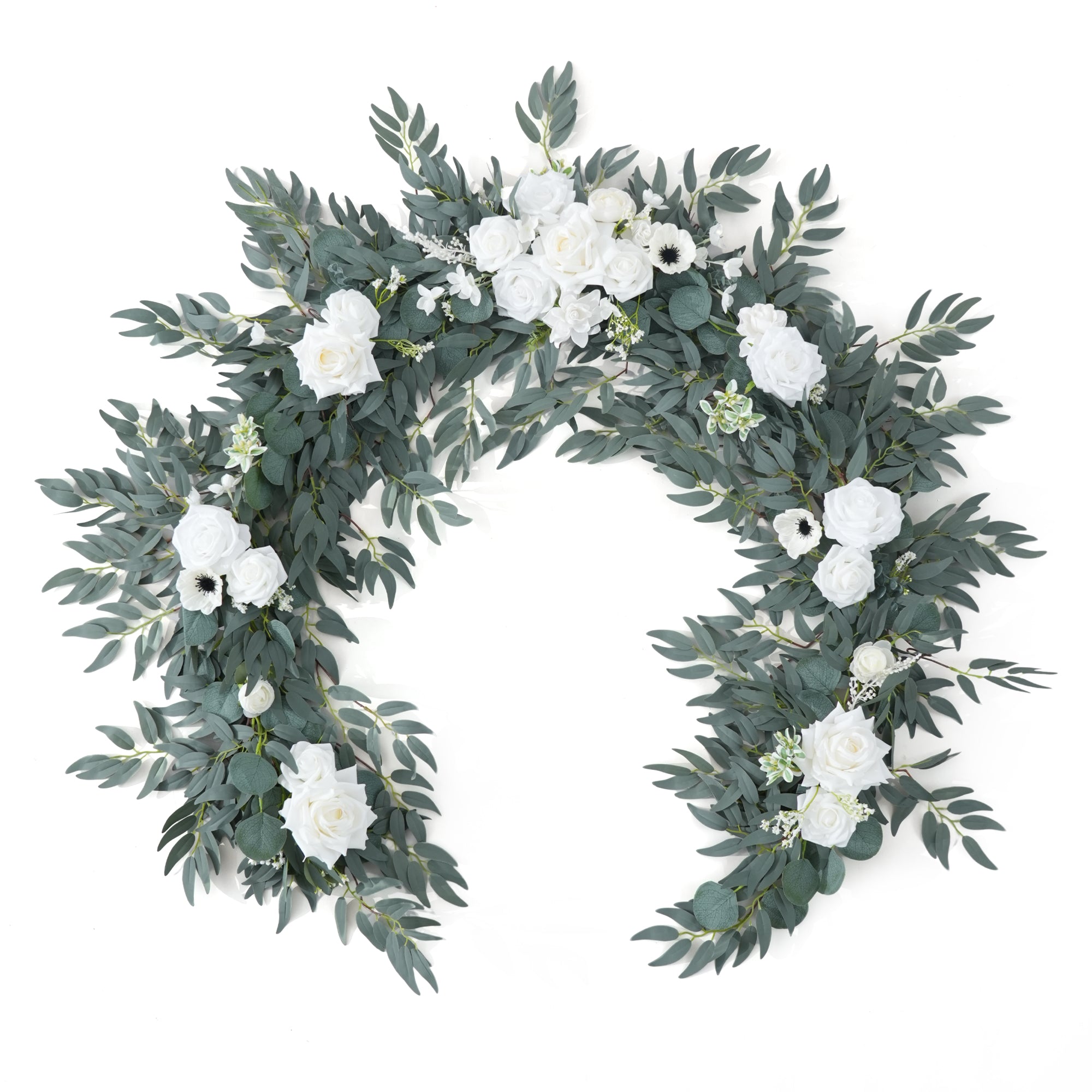 Color Inspiration: This floral garland features premium materials including lifelike silk roses, willow vines, baby's breath, and eucalyptus leaves. The pure white blossoms intertwined with emerald green foliage create a fresh and elegant woodland aesthetic.