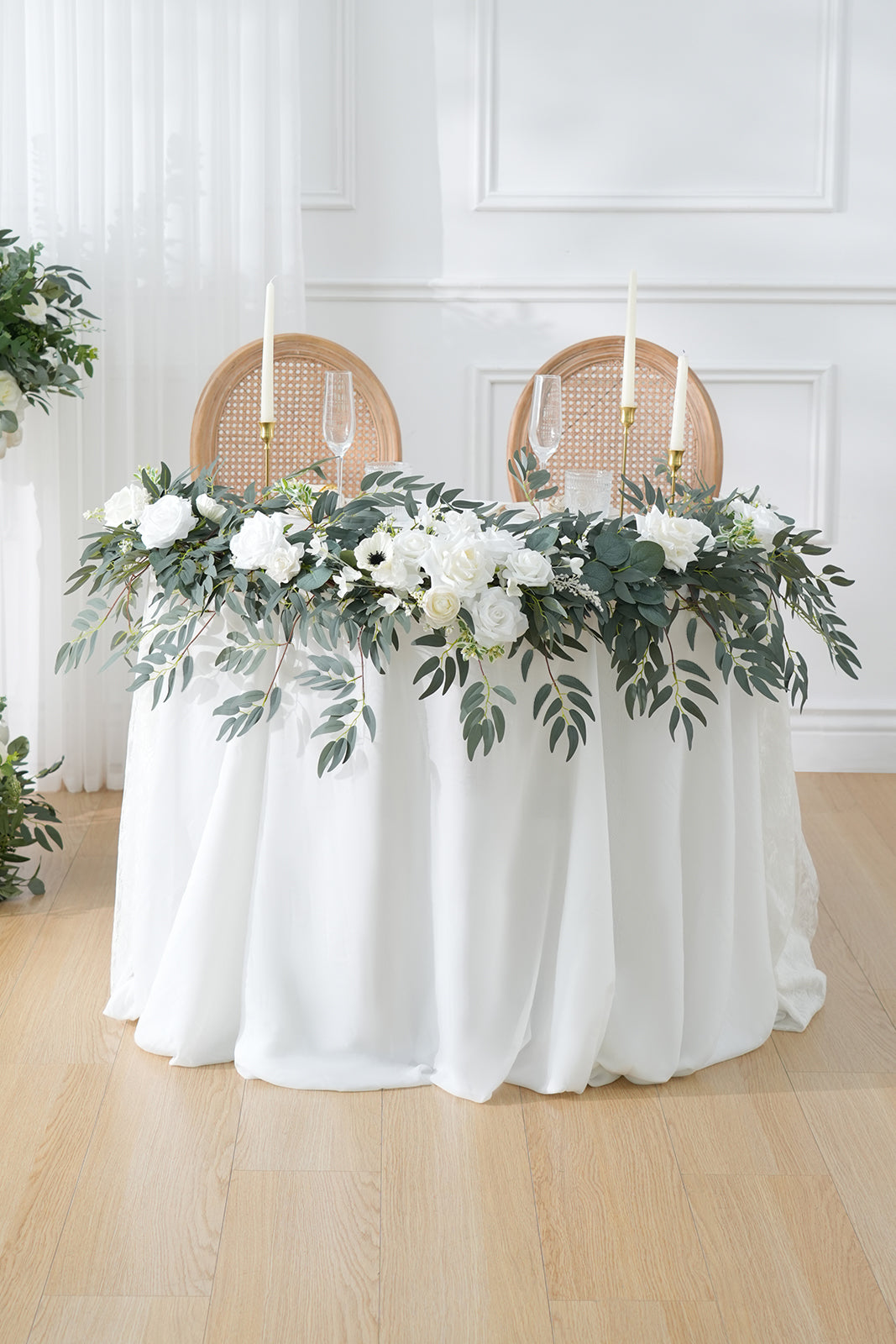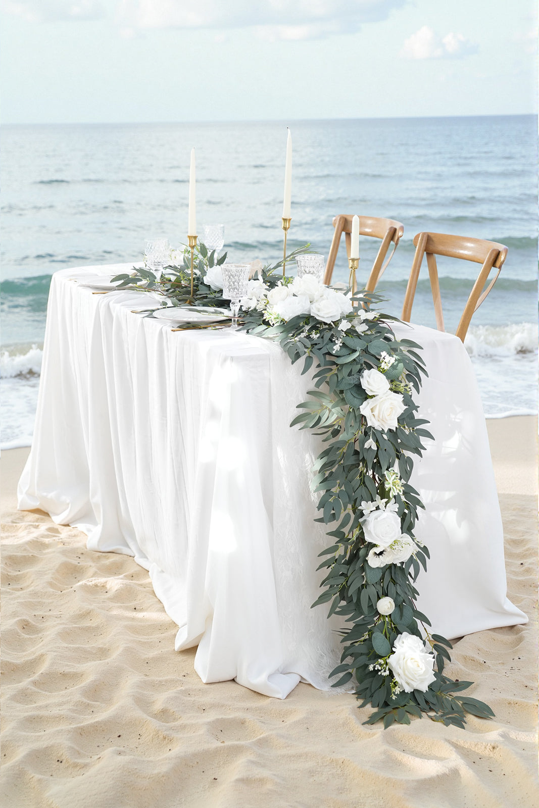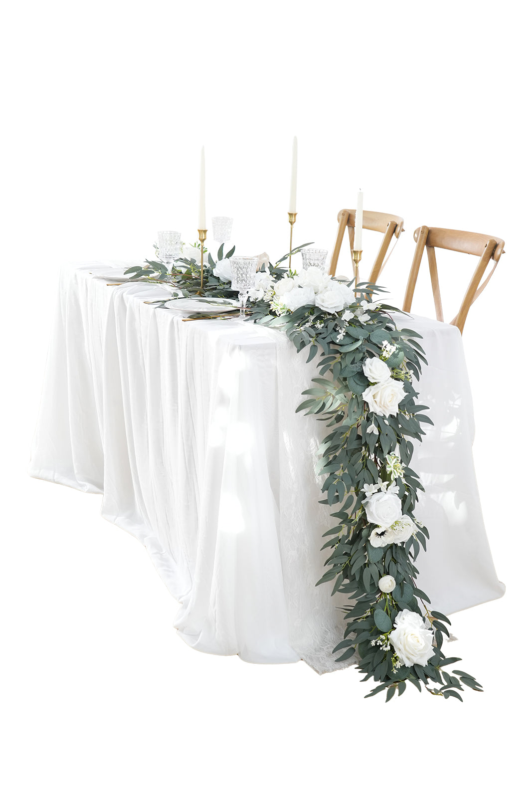 Color Inspiration: This floral garland features premium materials including lifelike silk roses, willow vines, baby's breath, and eucalyptus leaves. The pure white blossoms intertwined with emerald green foliage create a fresh and elegant woodland aesthetic.