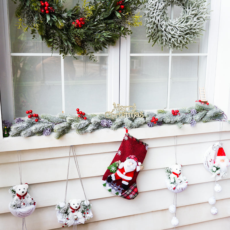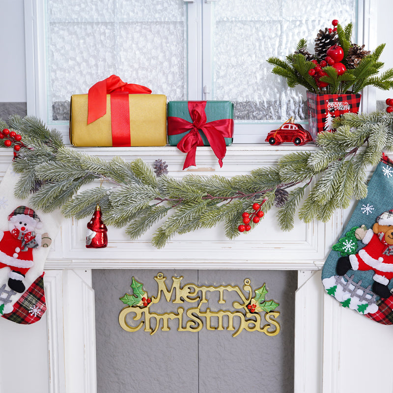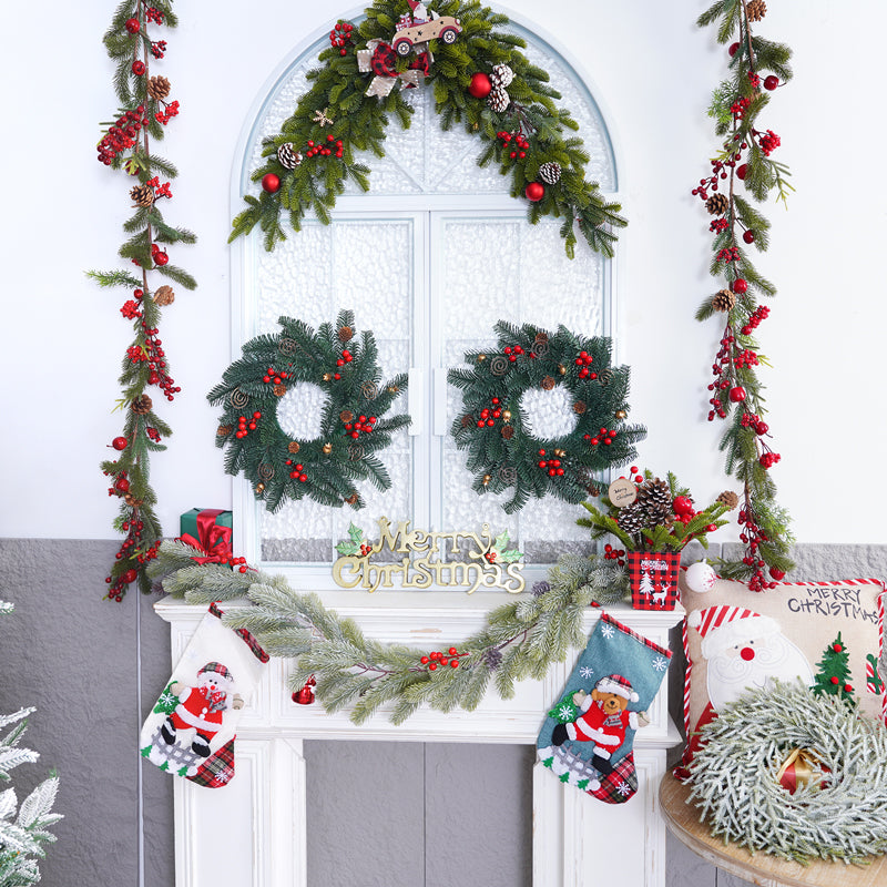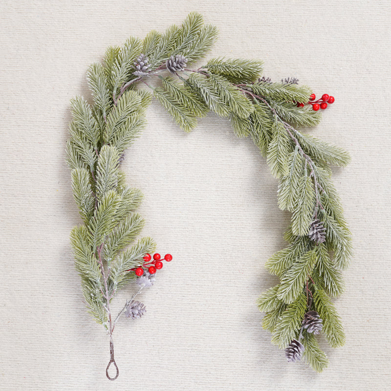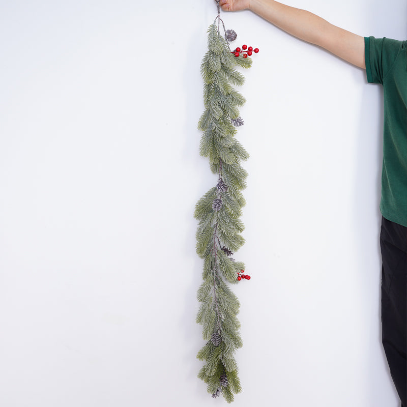 SD0366 3.77ft Pine Needles Red Berry Christmas Decoration Rattan