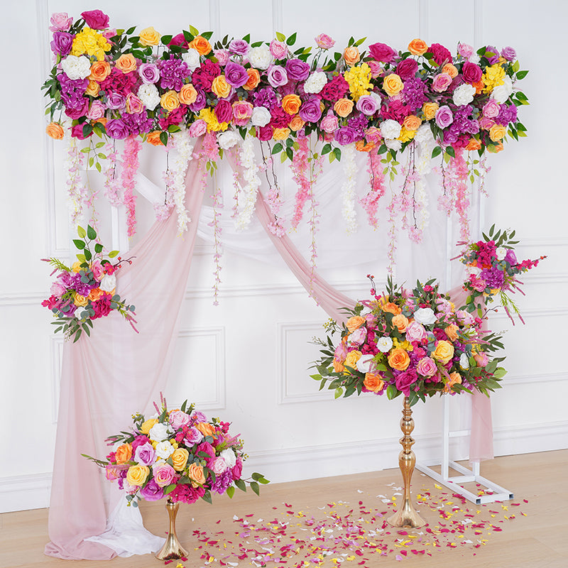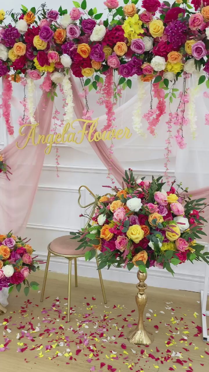 A7569 Wedding Frame Backdrop Decor Orange Pink Floral Arrangement