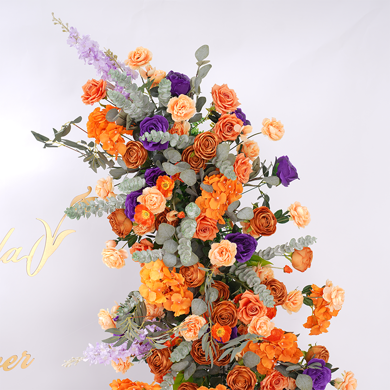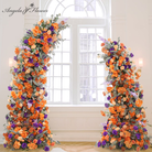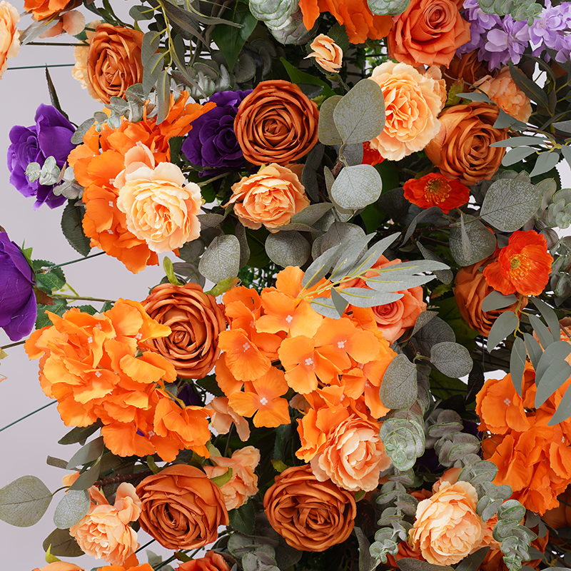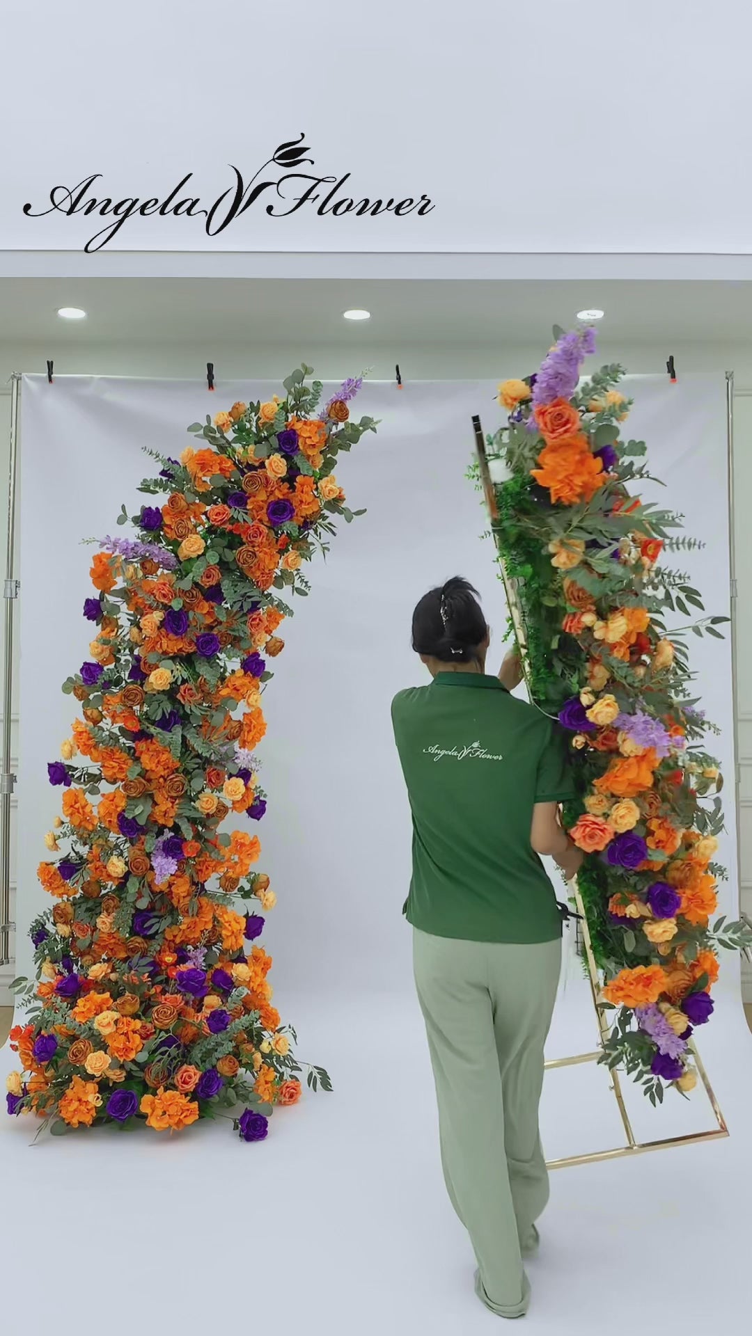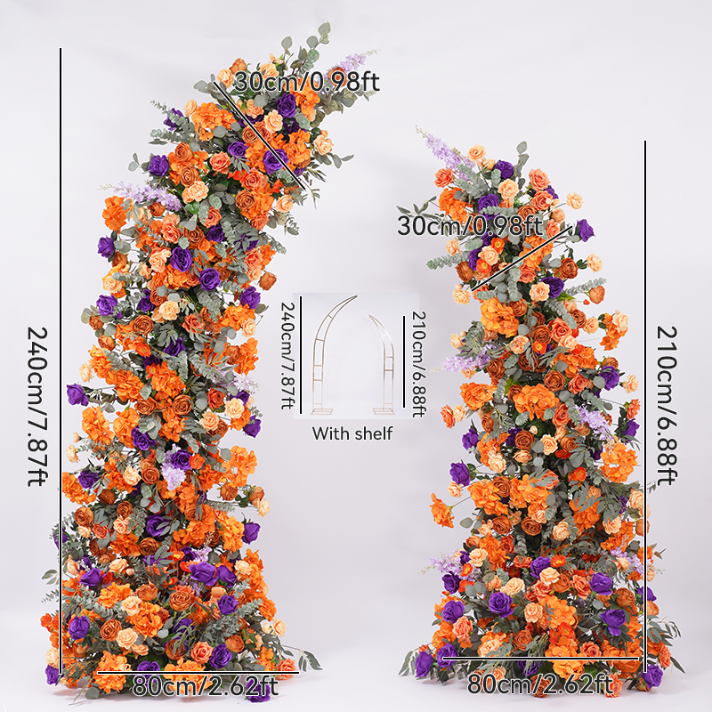 A8613 Wedding Horn Arch Frame Decor Orange Purple Series Flower Row