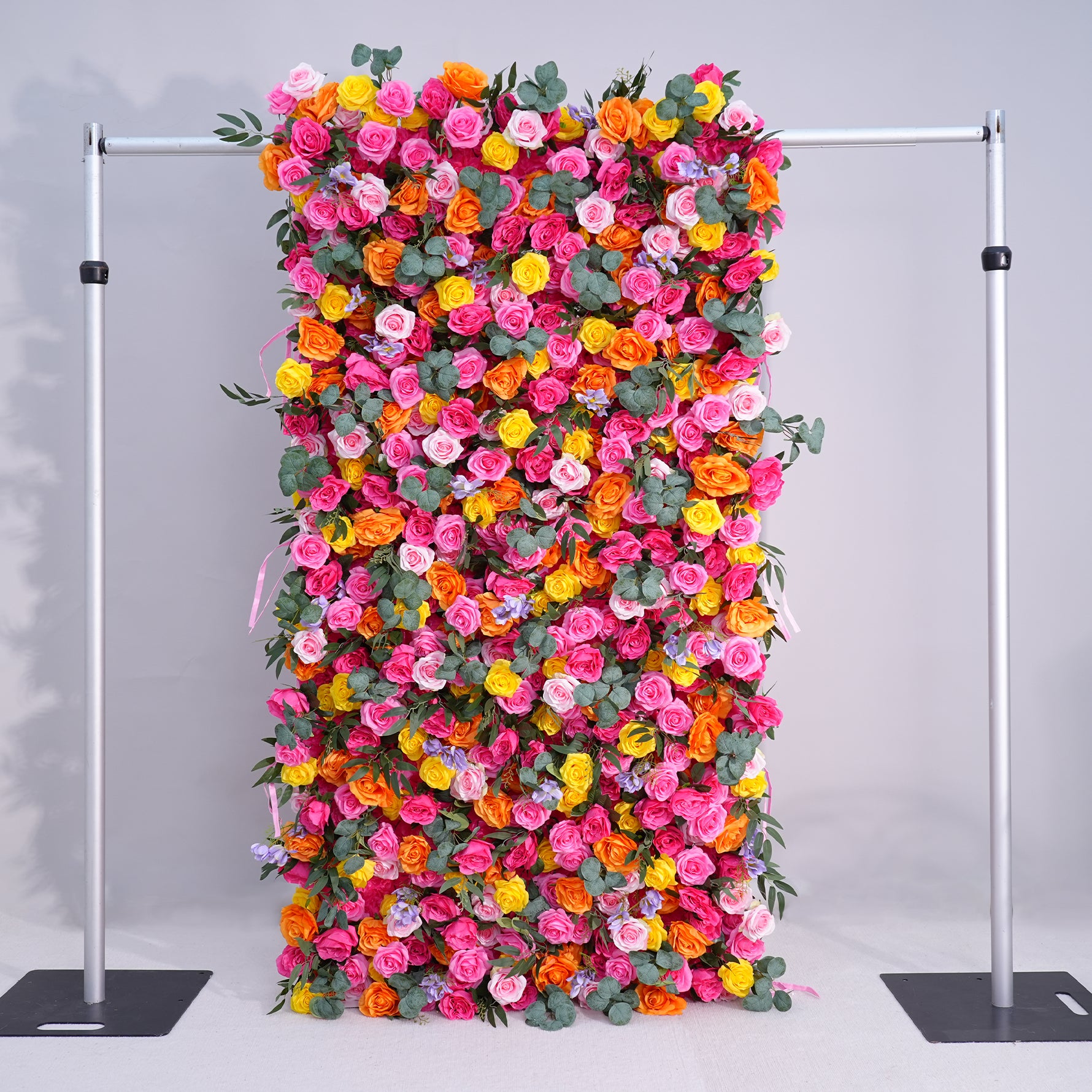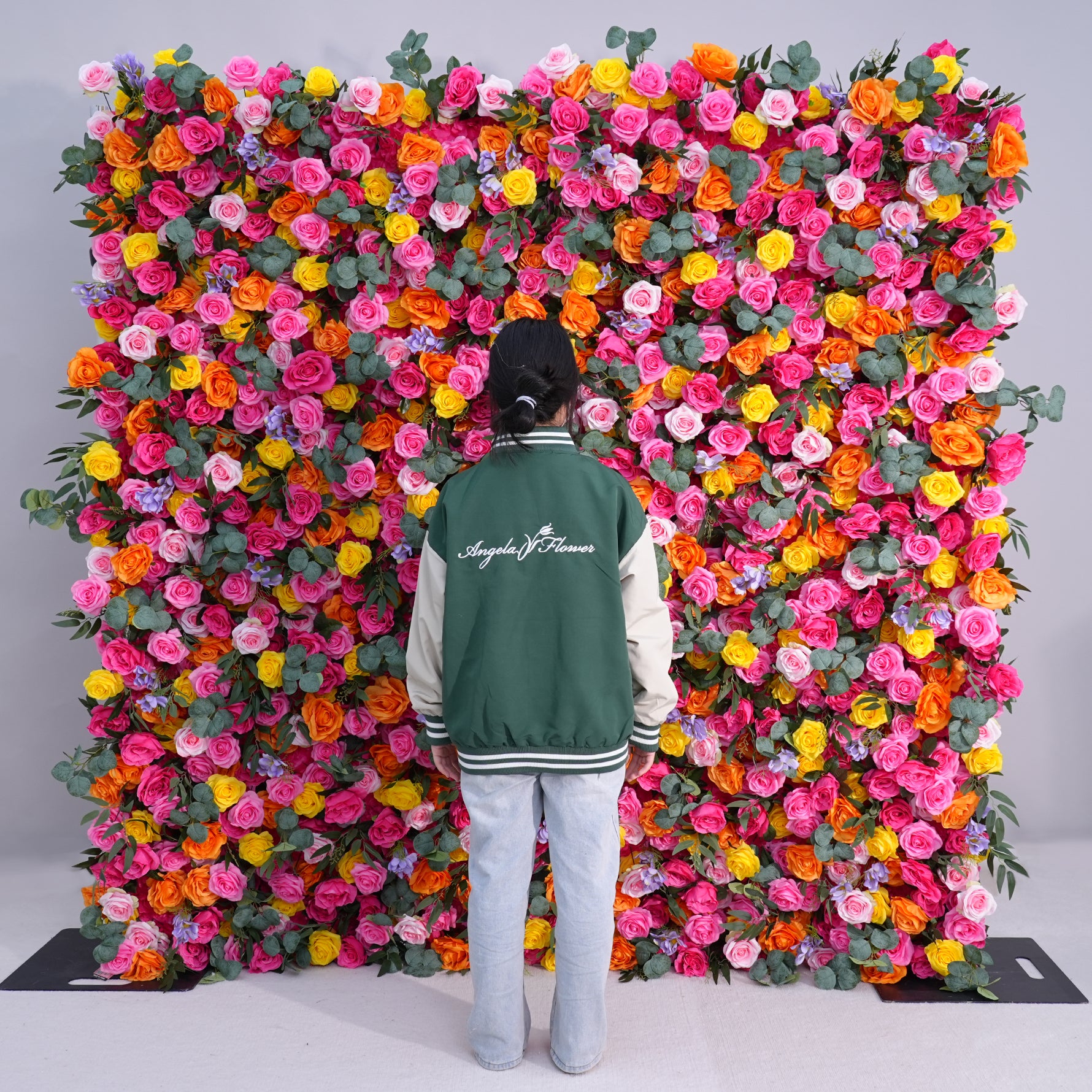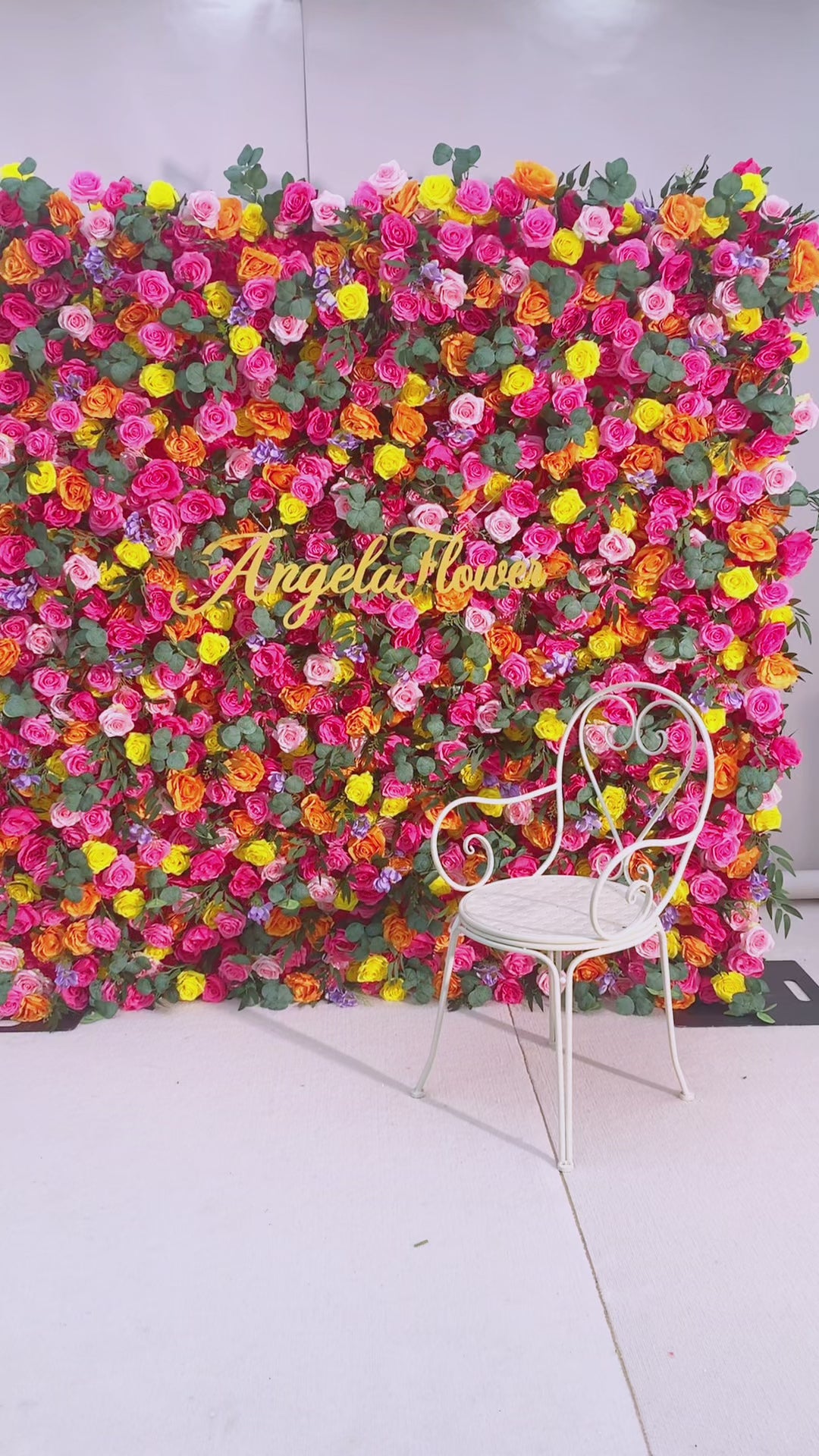 A8856 Colorful Rose Cloth Base 5D Roll Up Curtain Fower Wall Wedding Background
