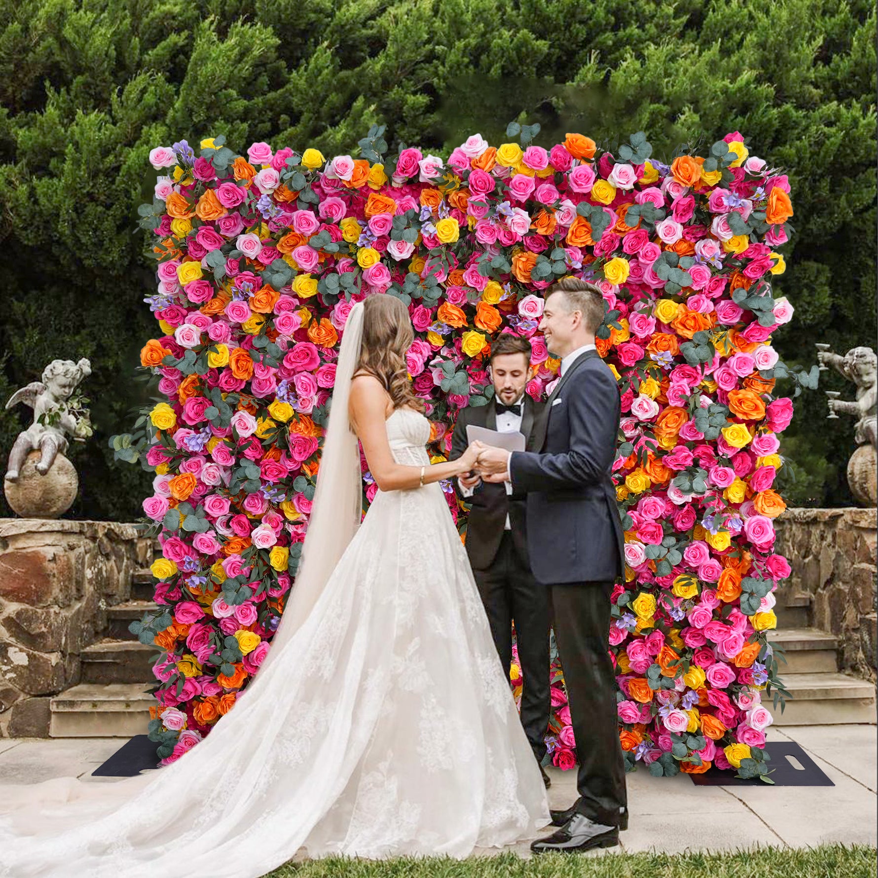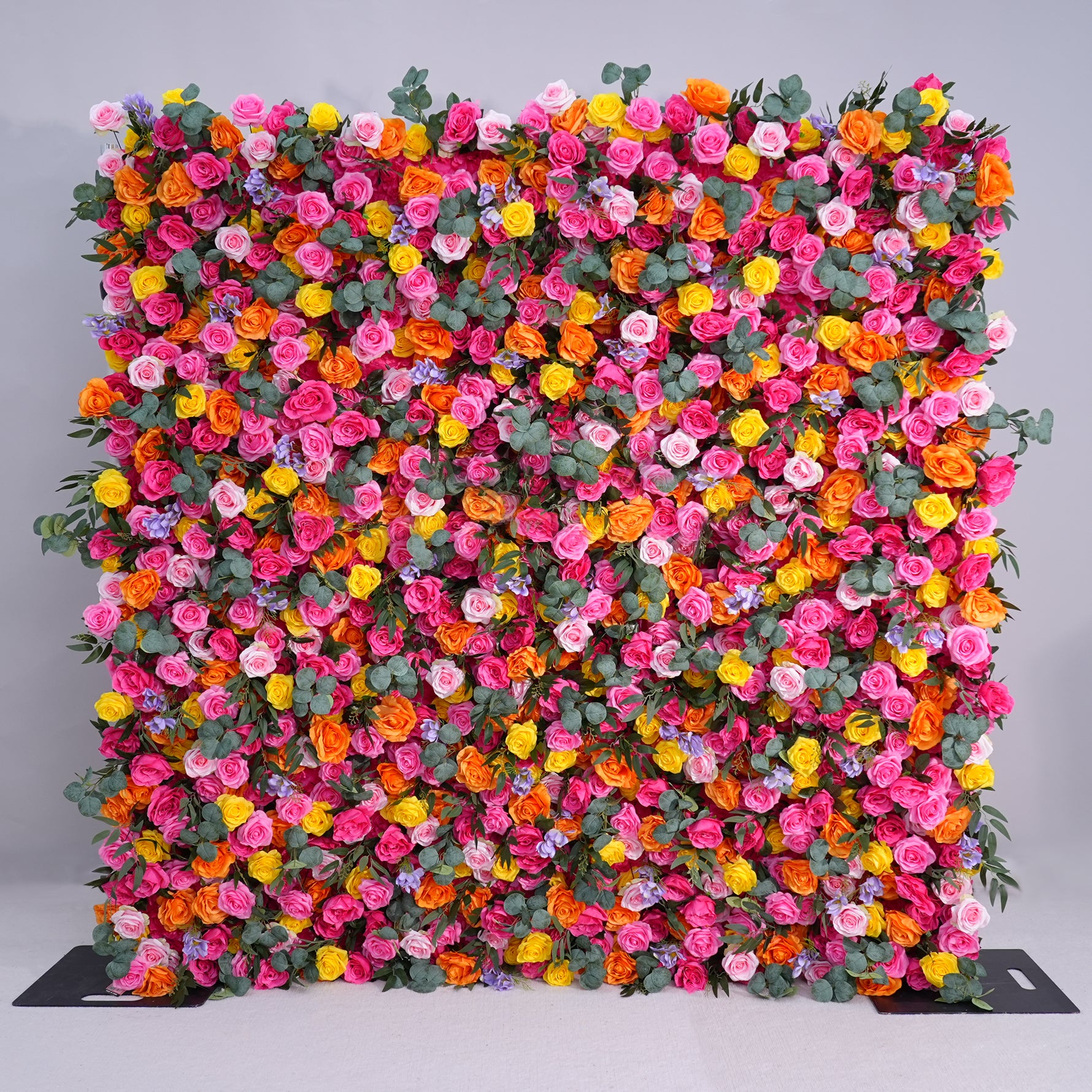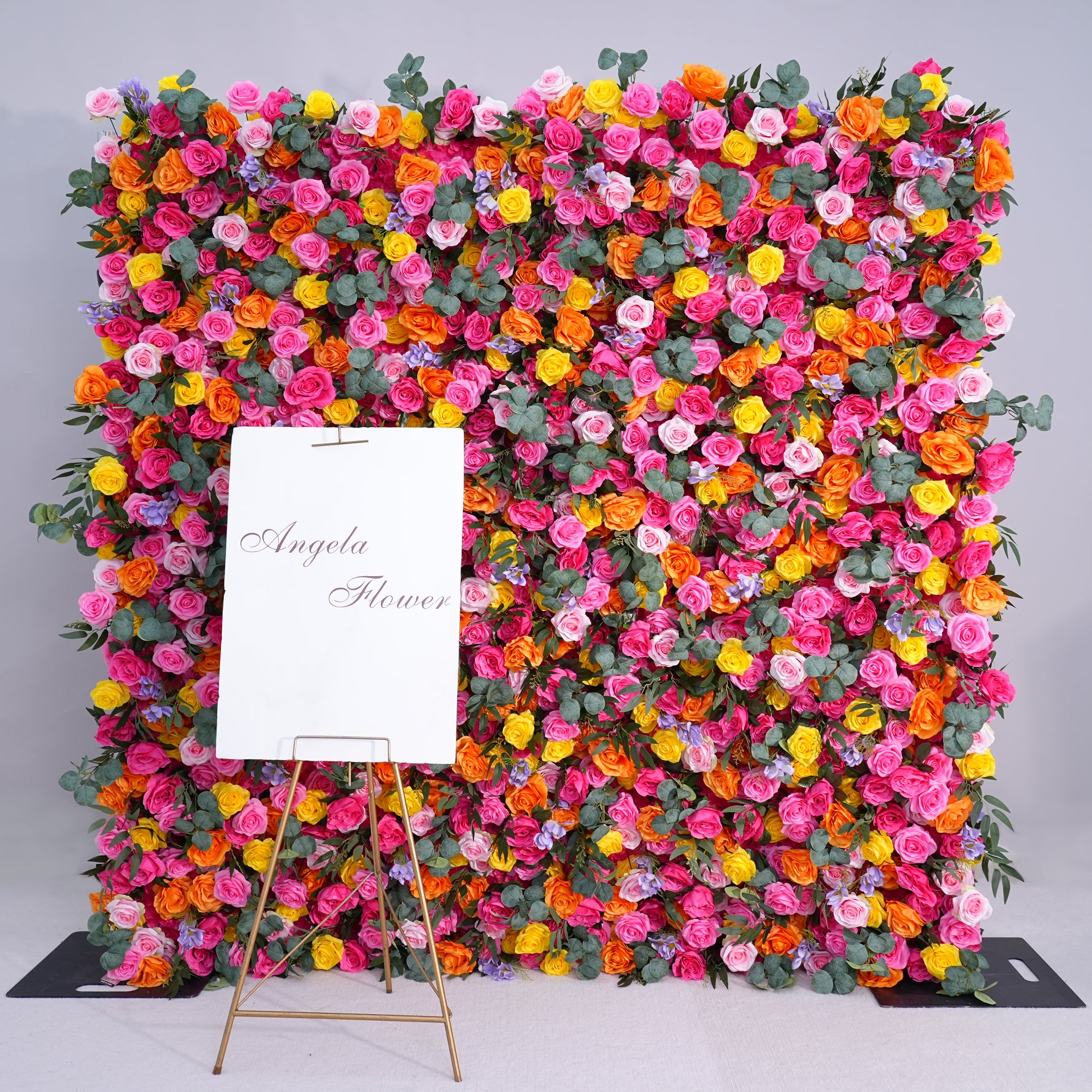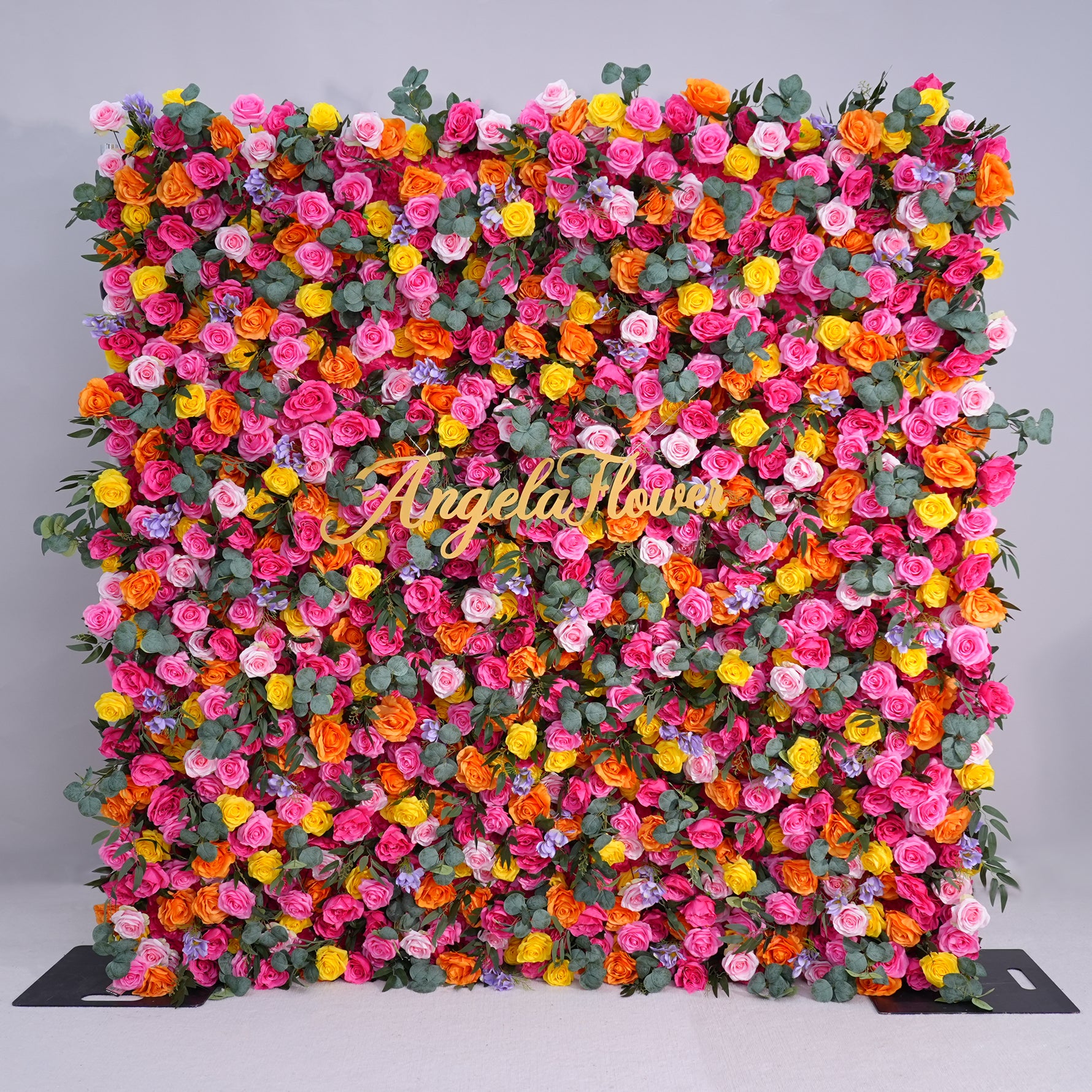 A8856 Colorful Rose Cloth Base 5D Roll Up Curtain Fower Wall Wedding Background
