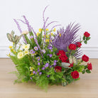Main Materials: roses, delphiniums, flower buds, green plants, etc.