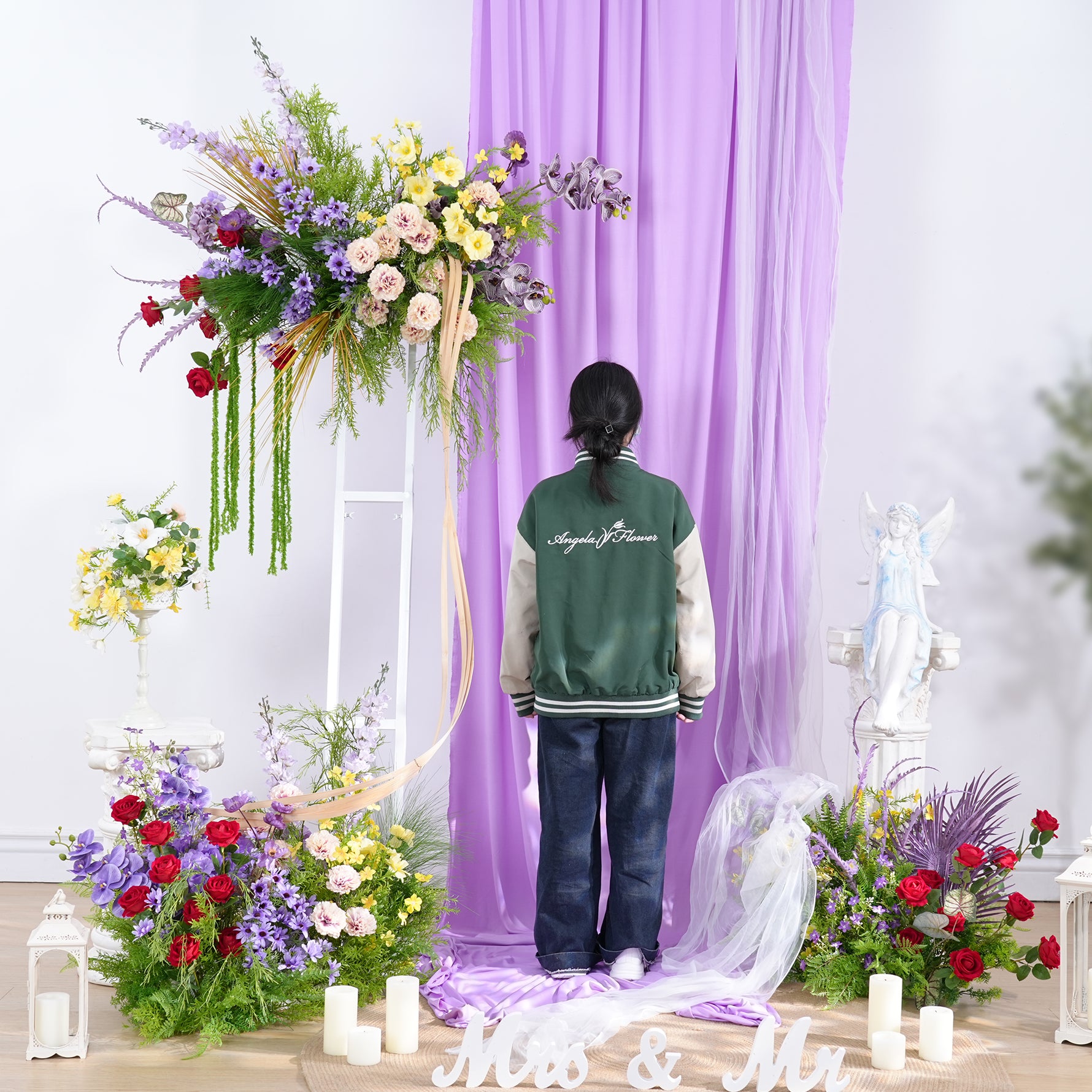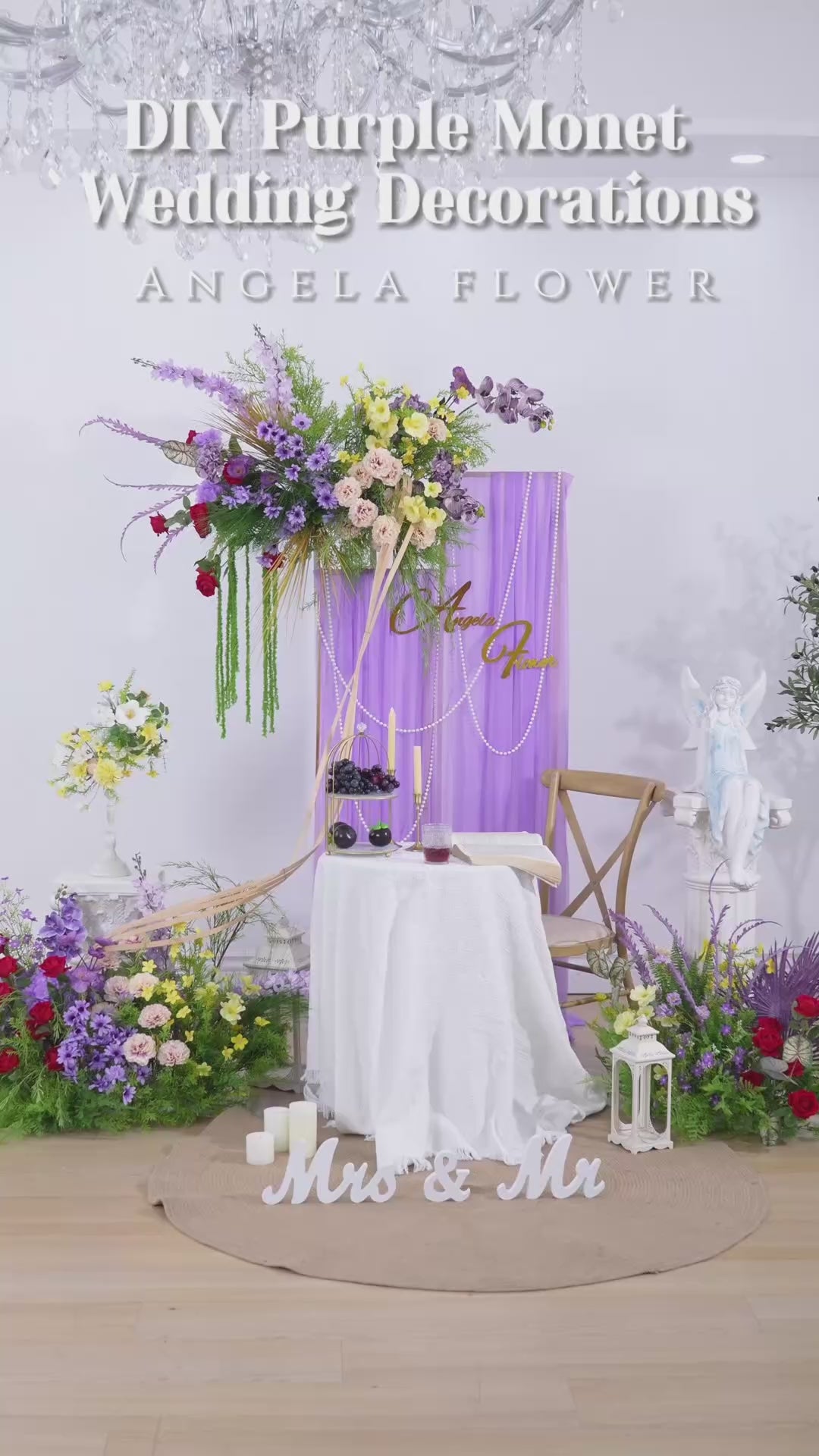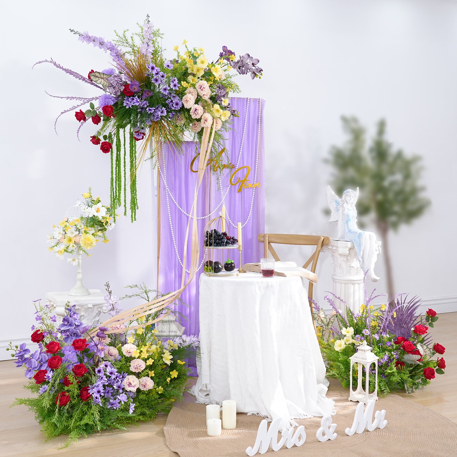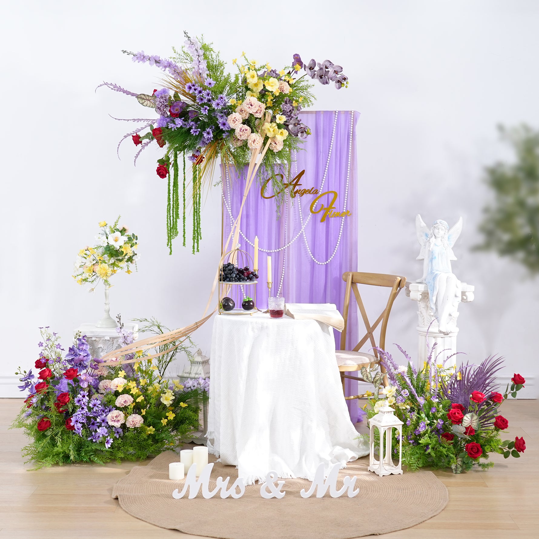 Color Inspiration: If you want a Mori wedding, you can choose this set of Mori flower arrangements, purple-based color with a variety of natural flowers represent nature, purity and freshness, implying that the love between the couple is as pure and beautiful as nature.