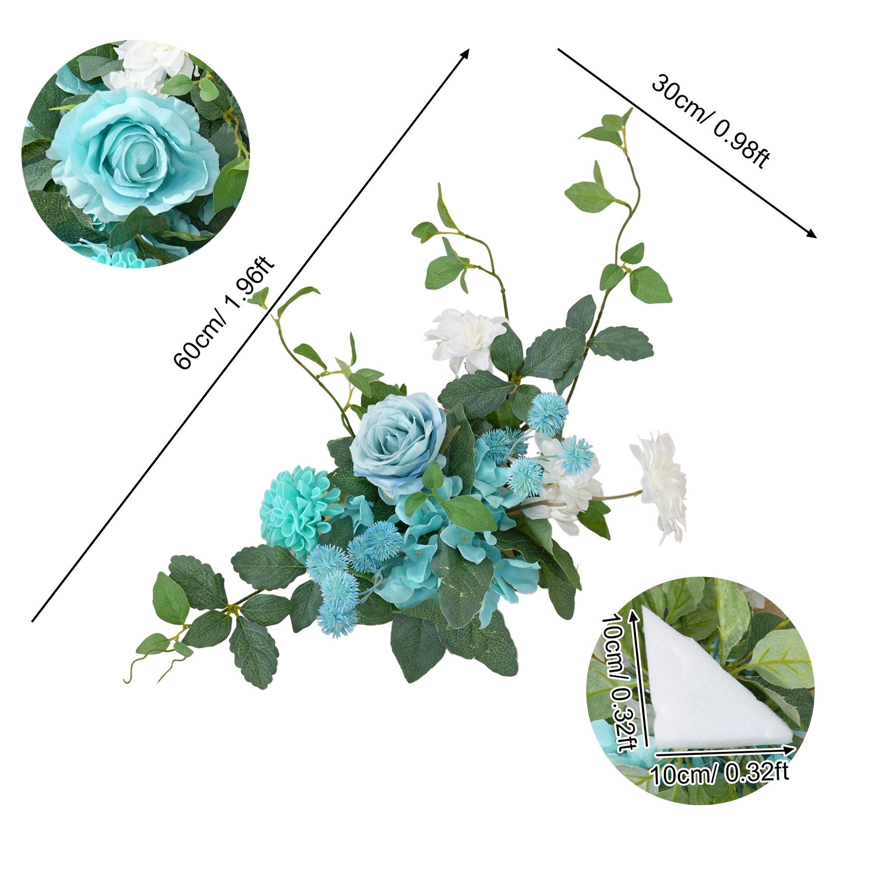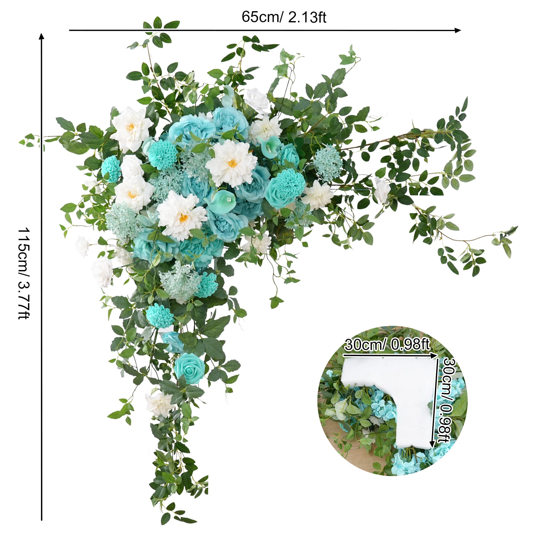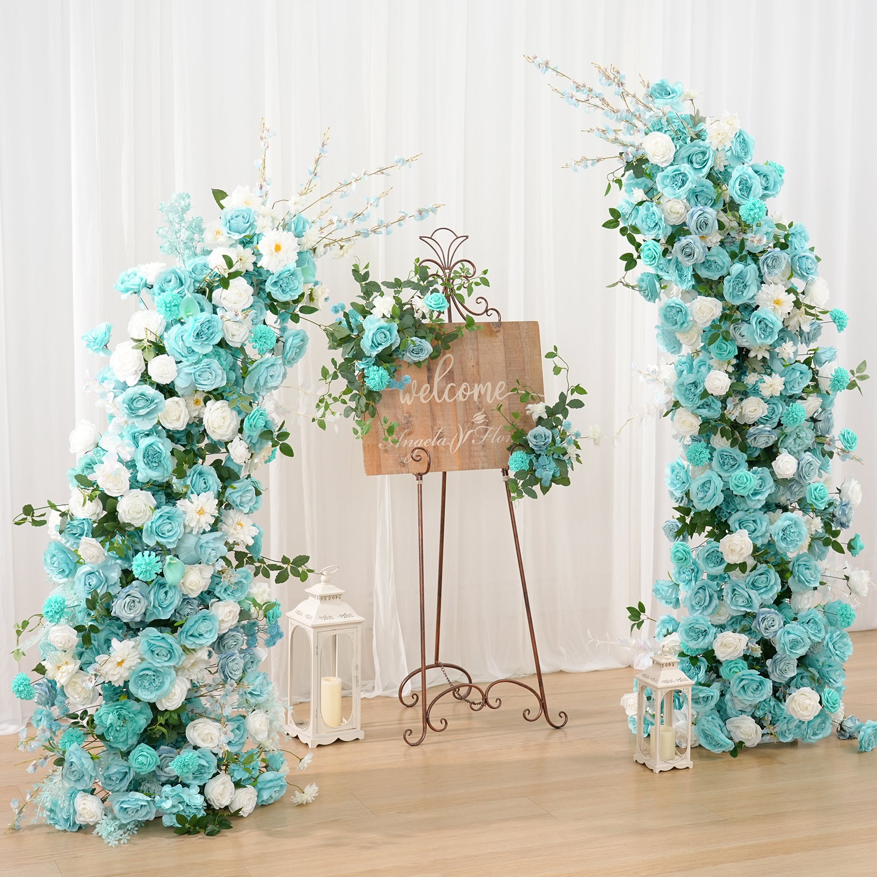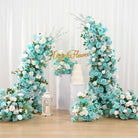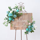 A8956 Tiffany Blue Floral Row Horn Arch Welcome Sign Hang Flower Wedding Decor Props