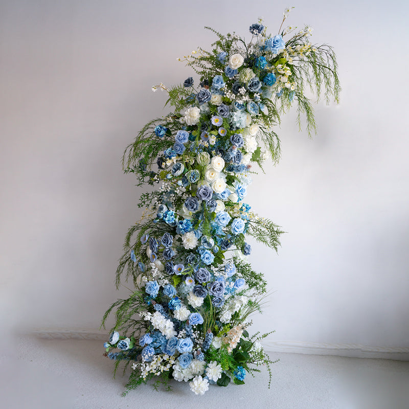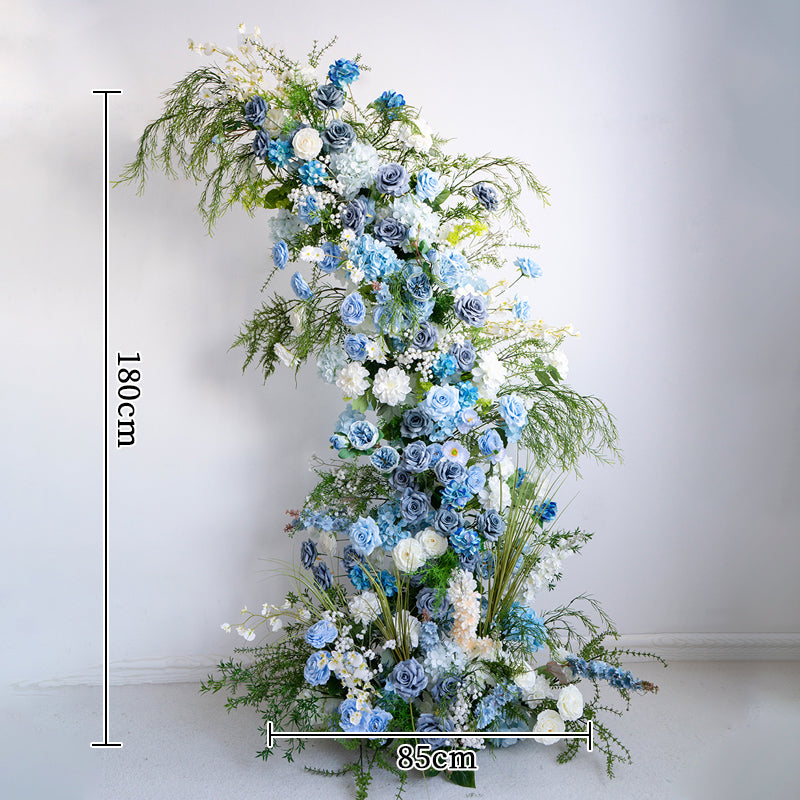 Mori Blue Rose Greenery Vine Flower Arrangement Wedding Horn Arch Decoration