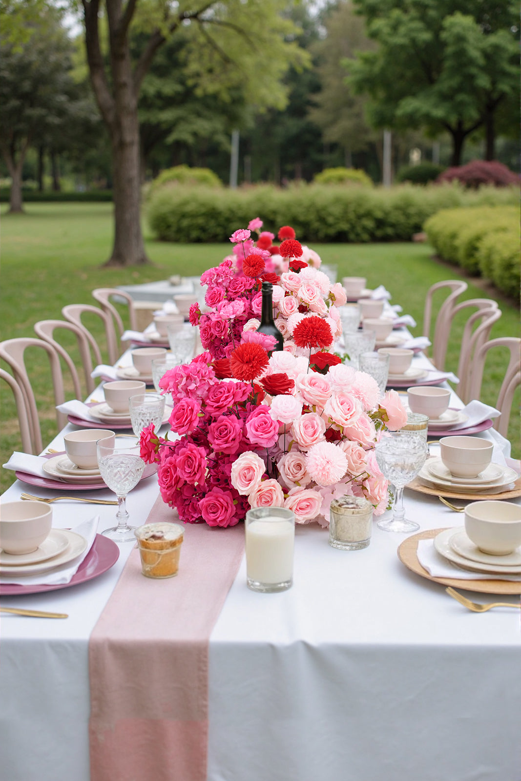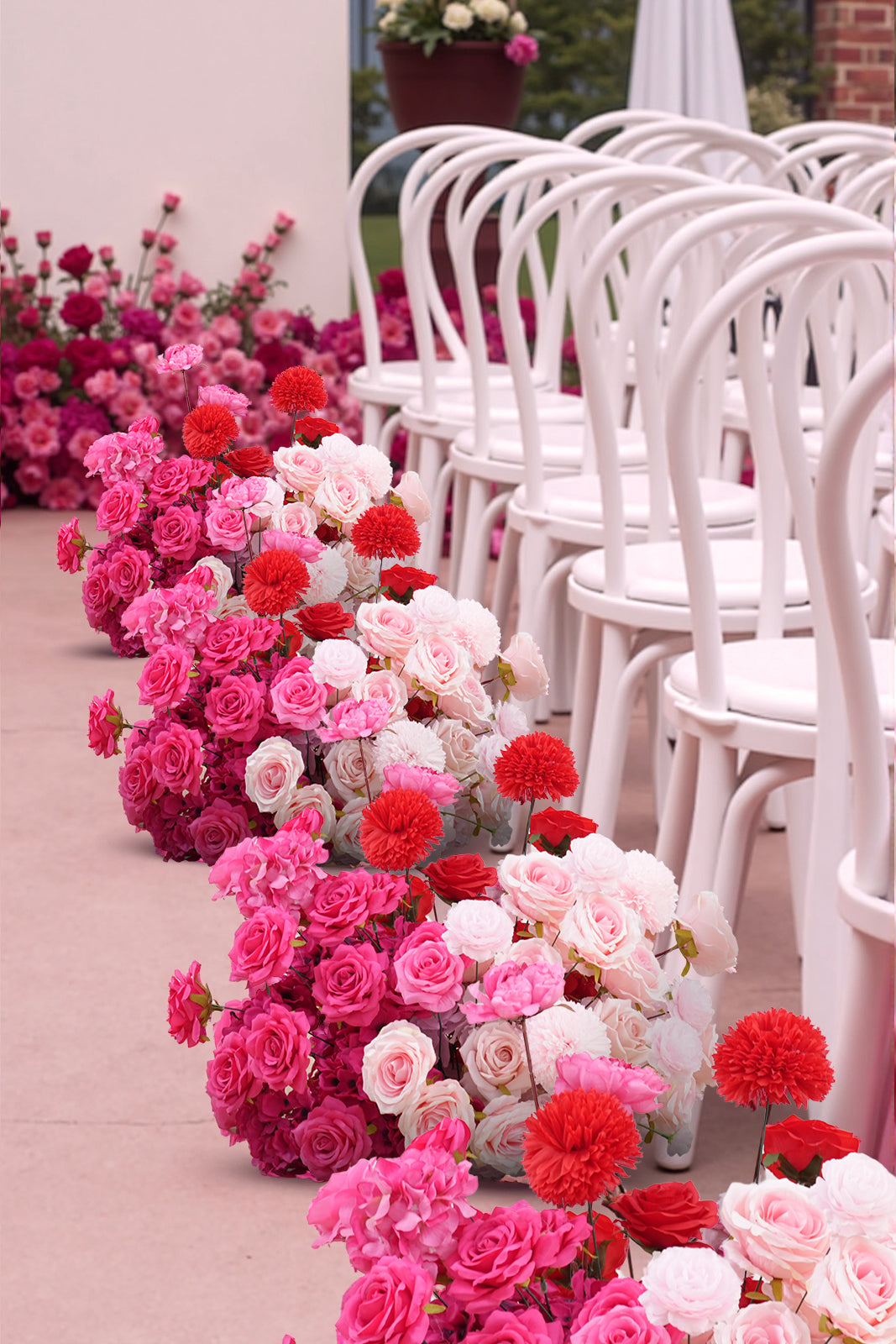 Color Inspiration: Vibrant bright pink flower arrangements can instantly draw attention to the wedding venue, making it more colorful and enhancing the overall visual effect. It also serves as a great backdrop for the couple's photo shoot, making the photos more vivid and beautiful, allowing you to be the center of attention and attracting the attention of your guests.