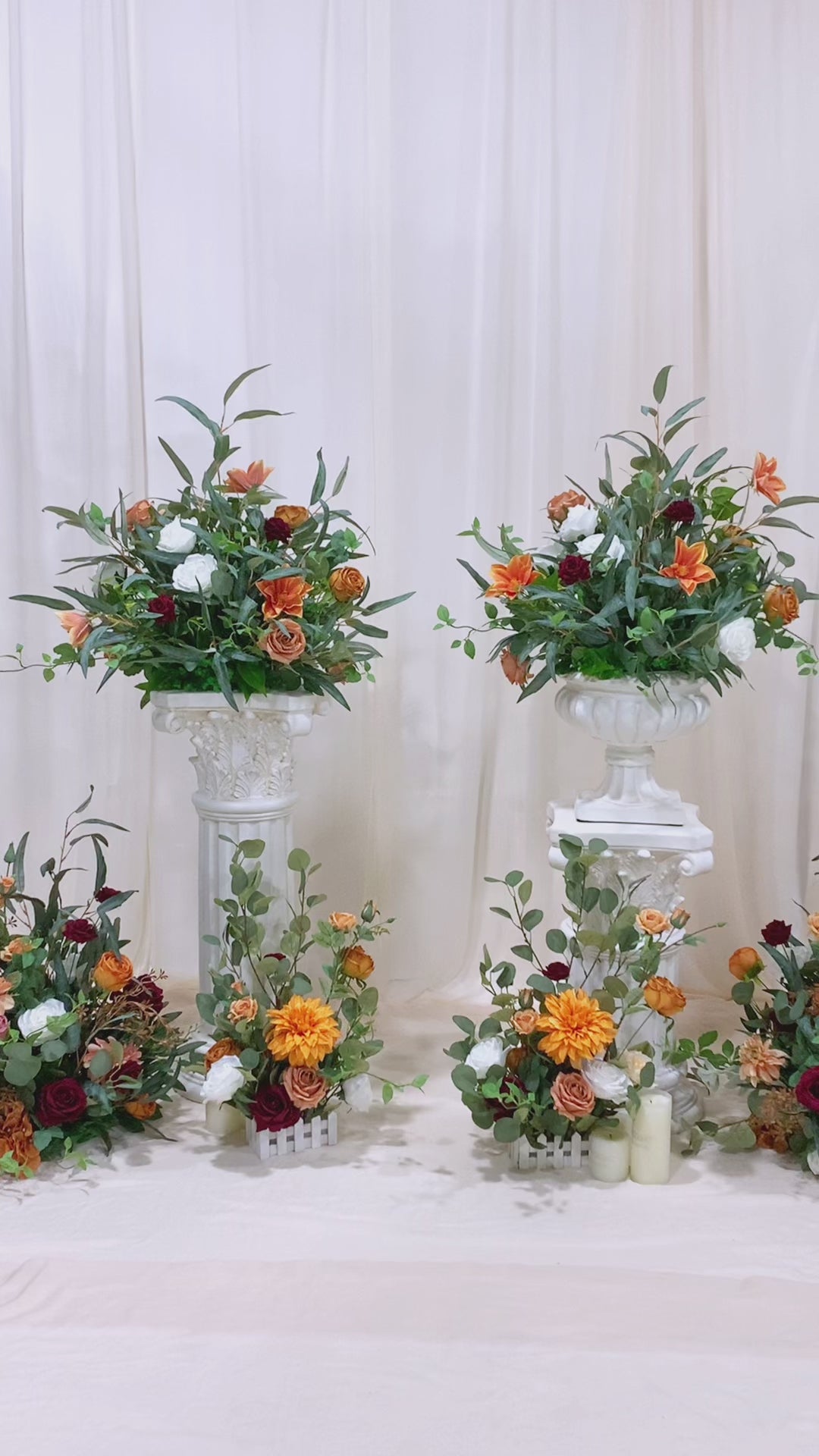 A863615 Autumn Color Series Rose Greenery Floor Flower Arrangement Wedding