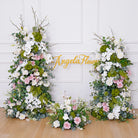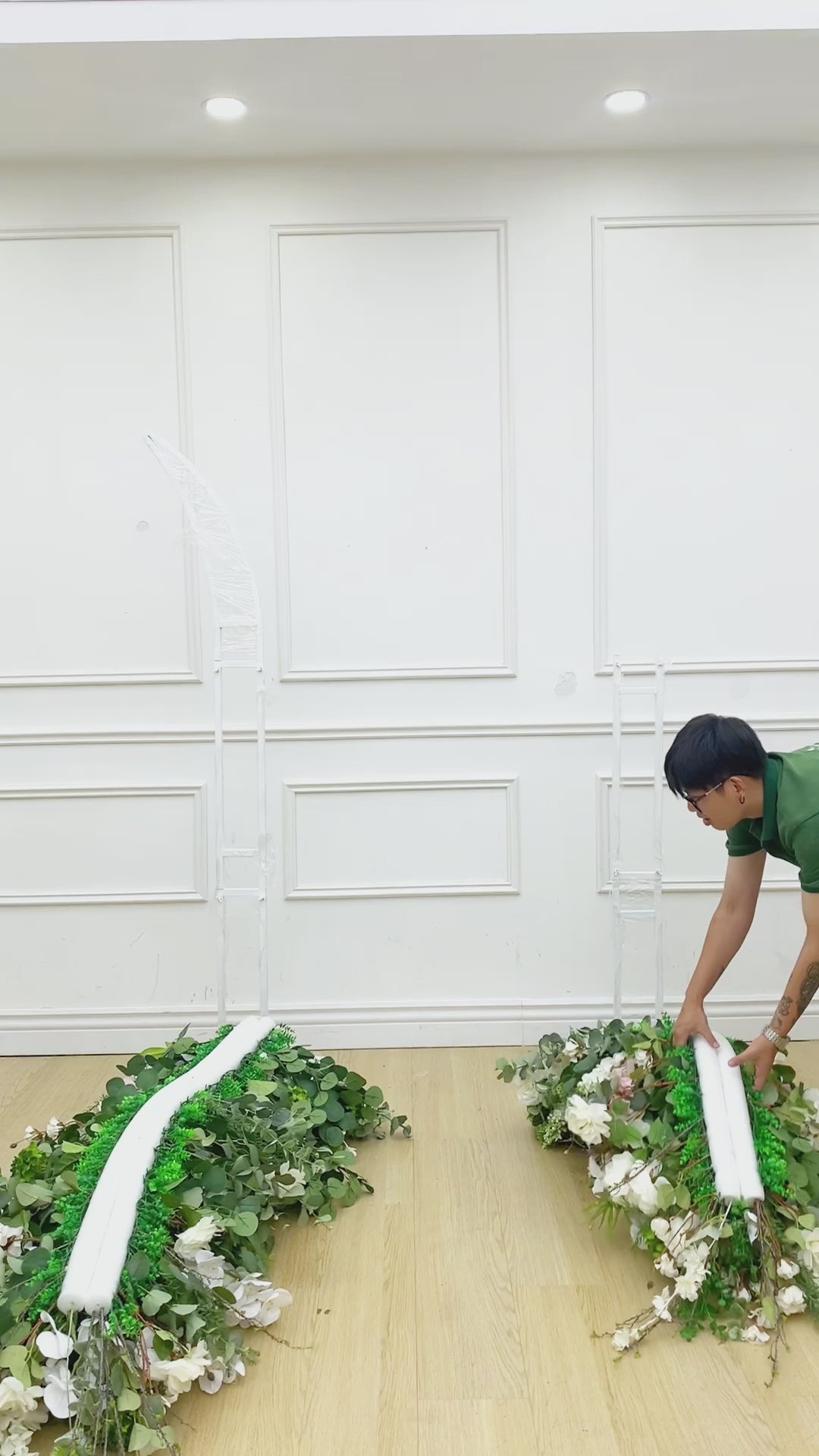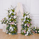 A8714 White Orchid Greenery Wisteria KT Board Floral Row Arrangement Decor Horn Arch Frame Wedding Backdrop