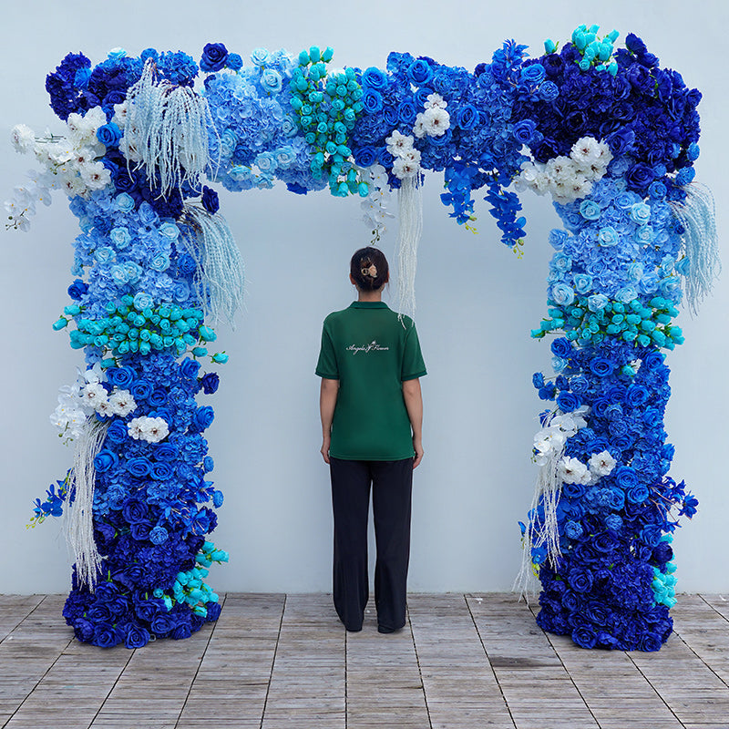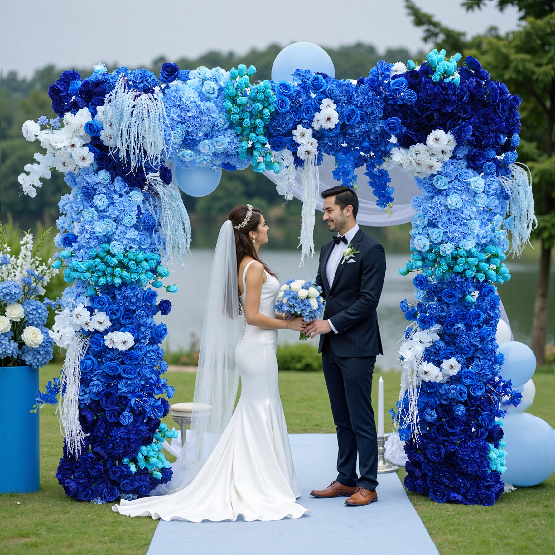 A8727 Blue Rose Wisteria Flower Row Arrangement Decor Wedding Backdrop Frame