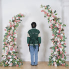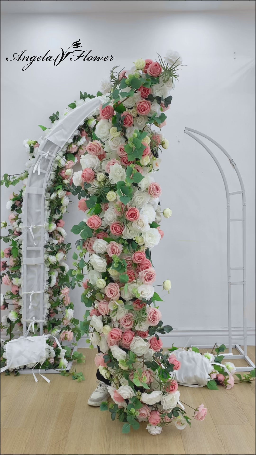 A8749 Cloth Base Baby Pink White Floral Row Decor For Wedding Horn Arch