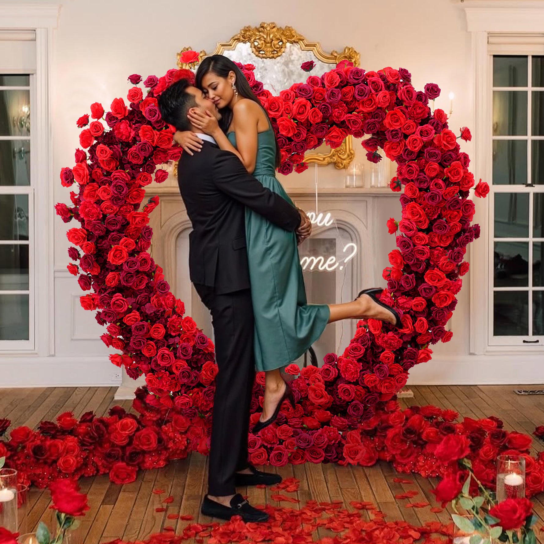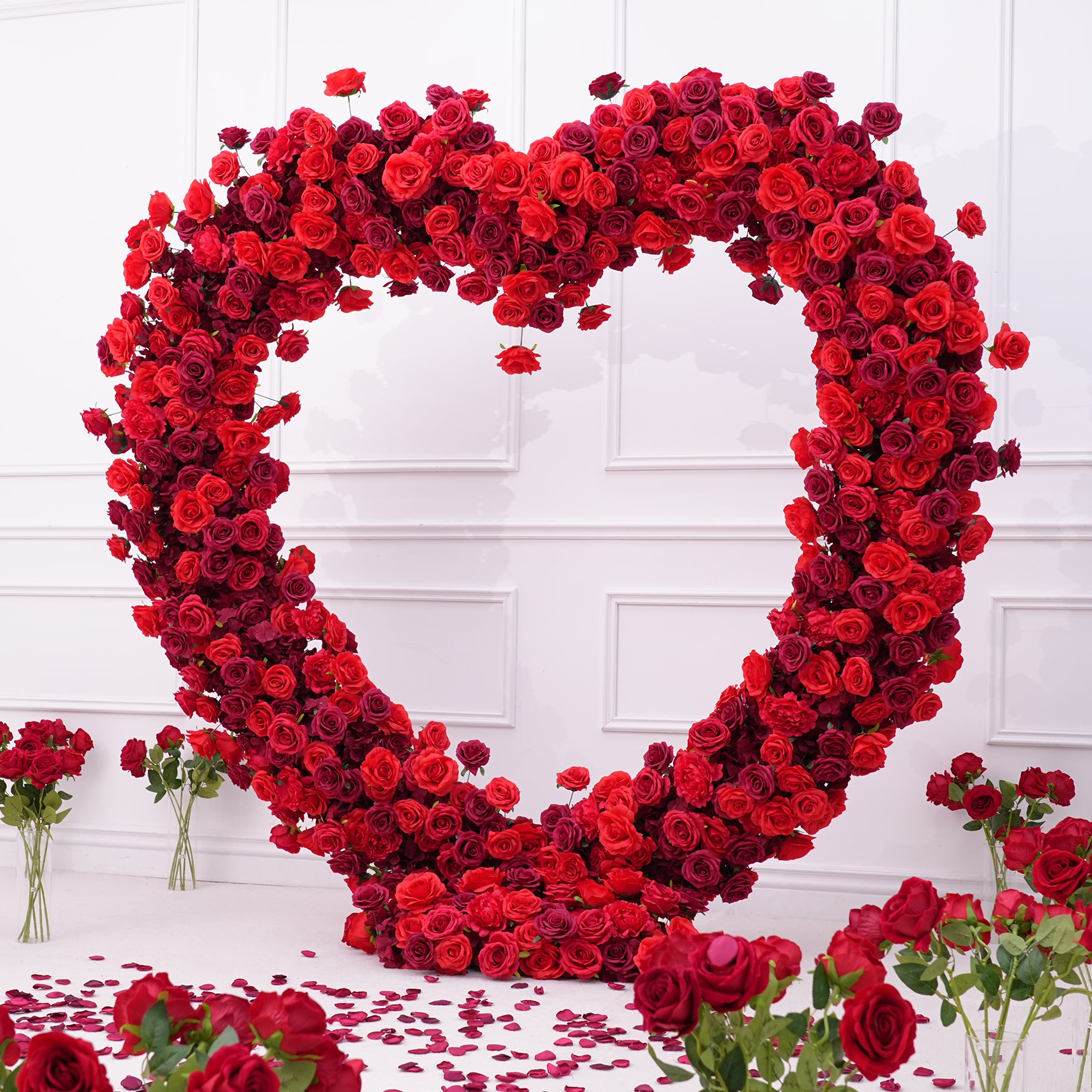 Color Inspiration: Enchant your wedding with our deep red rose heart backdrop! Handcrafted from lifelike silk roses, it creates a romantic, unforgettable photo-op. Durable, versatile for events or home décor. Easy setup, cost-effective beauty. Perfect for creating a stunning wedding, anniversary, or engagement celebration!