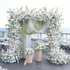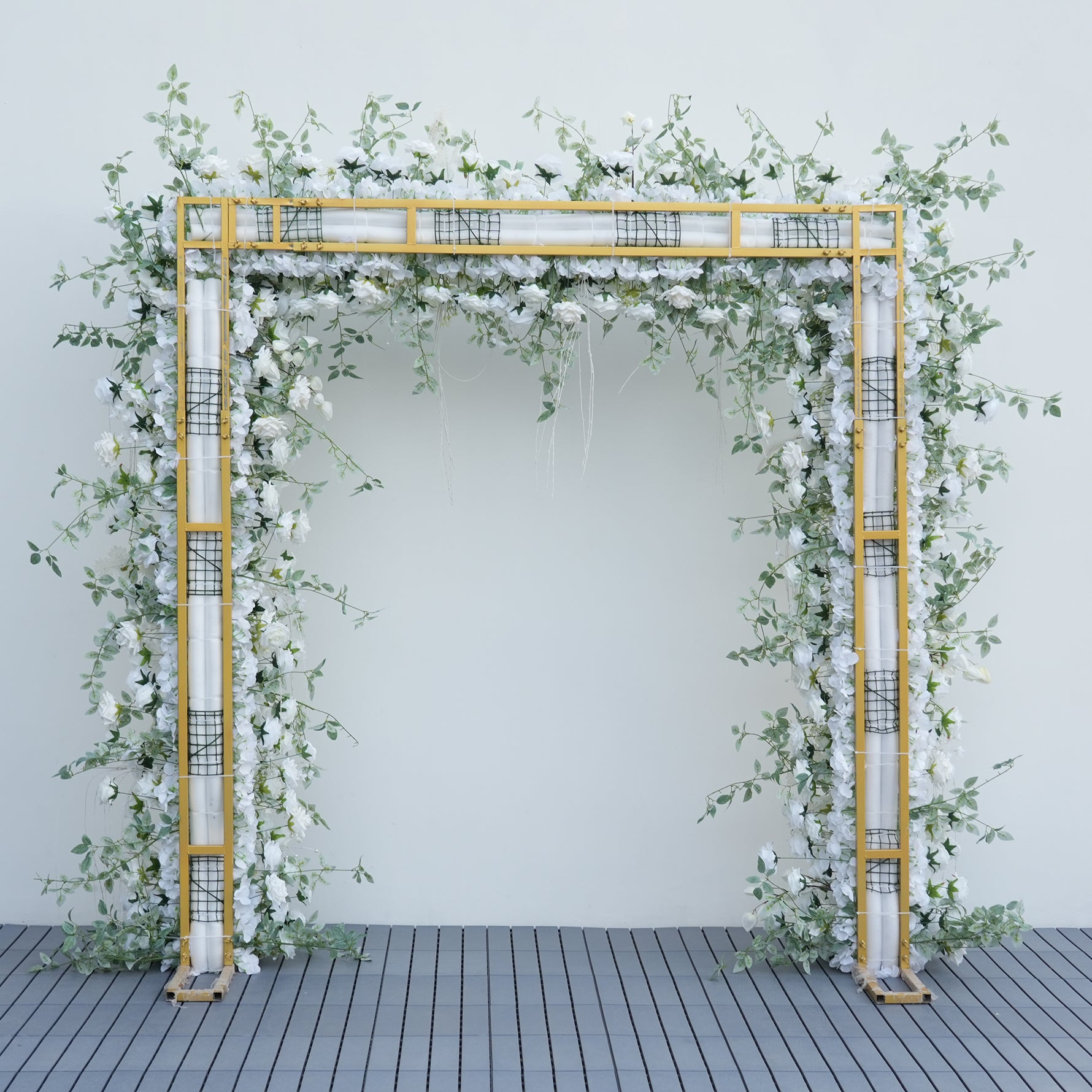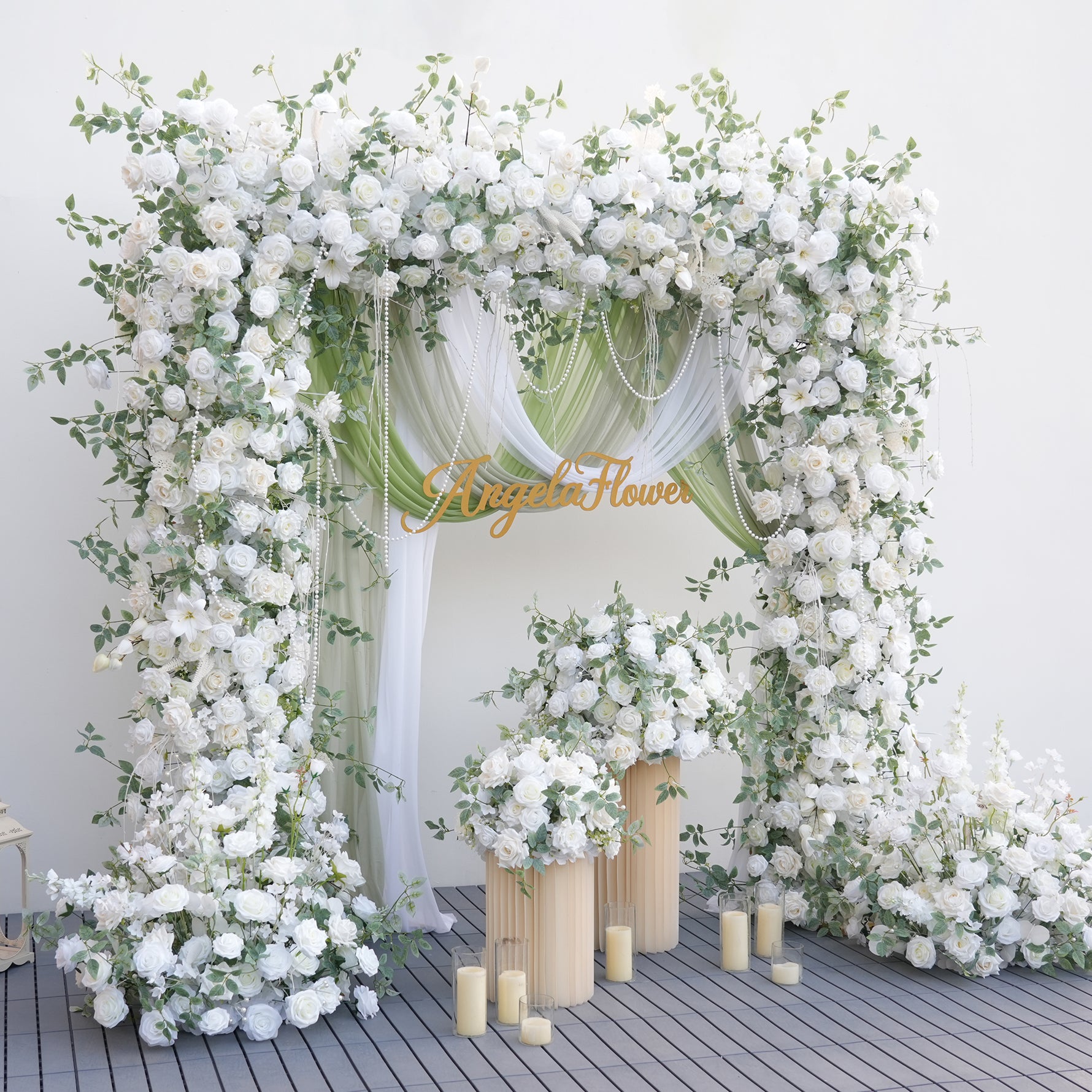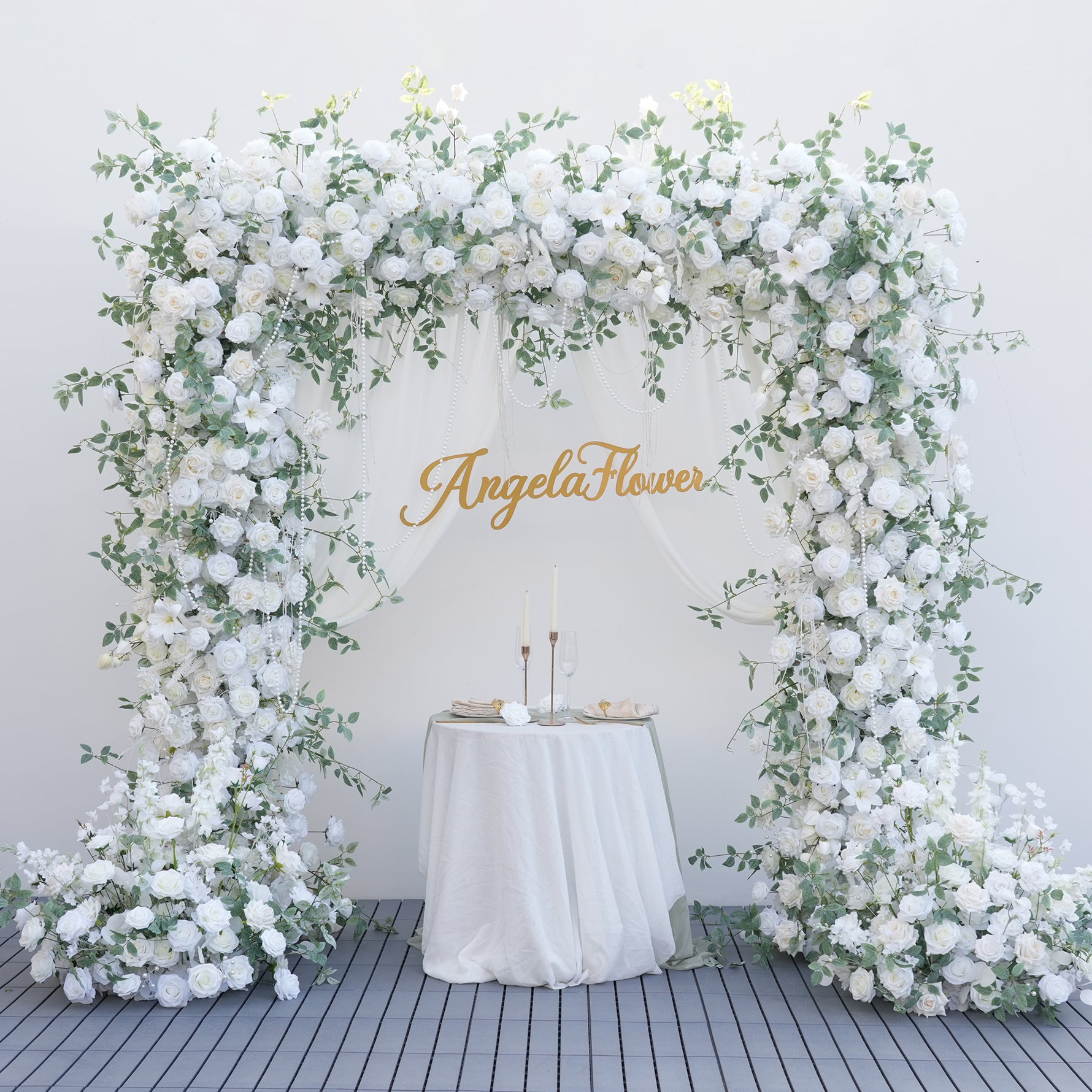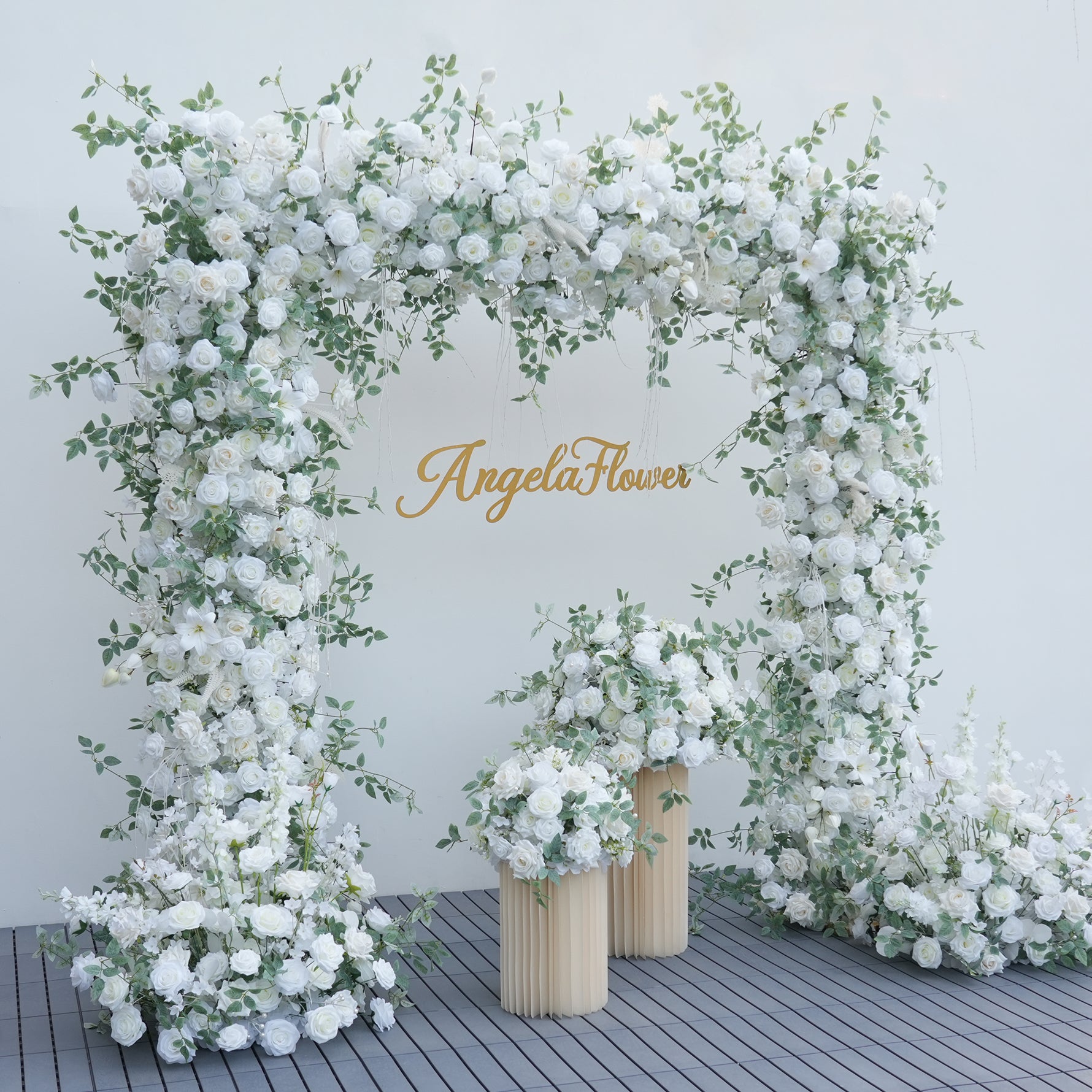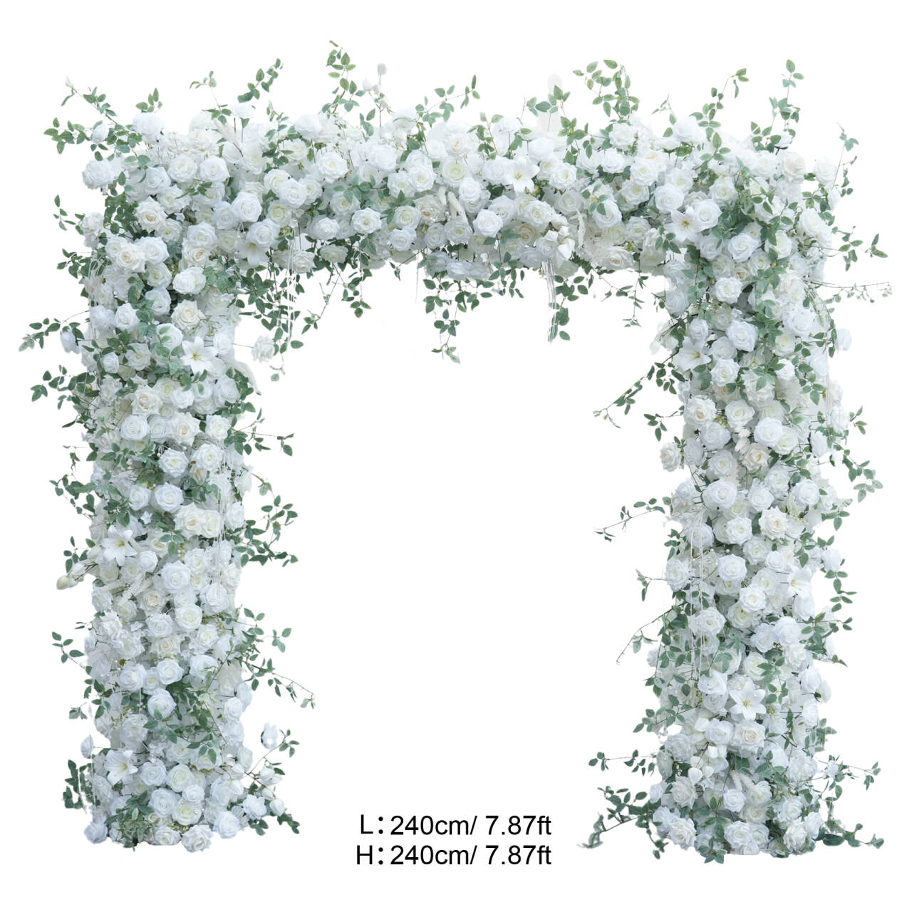 A8995 White Rose Greenery Floral Row Square Arch Flower Ball Outdoor Wedding Decor