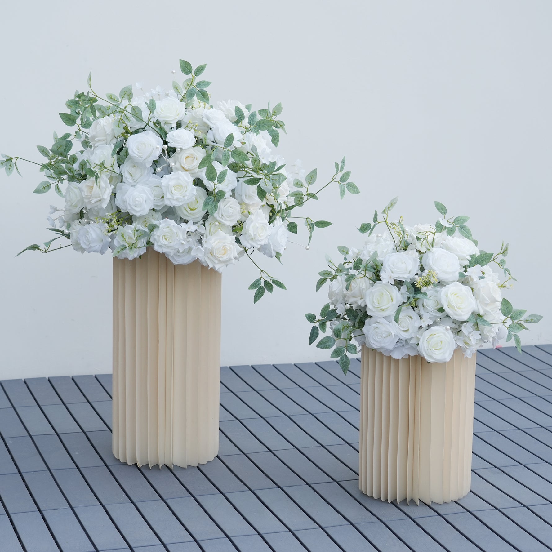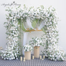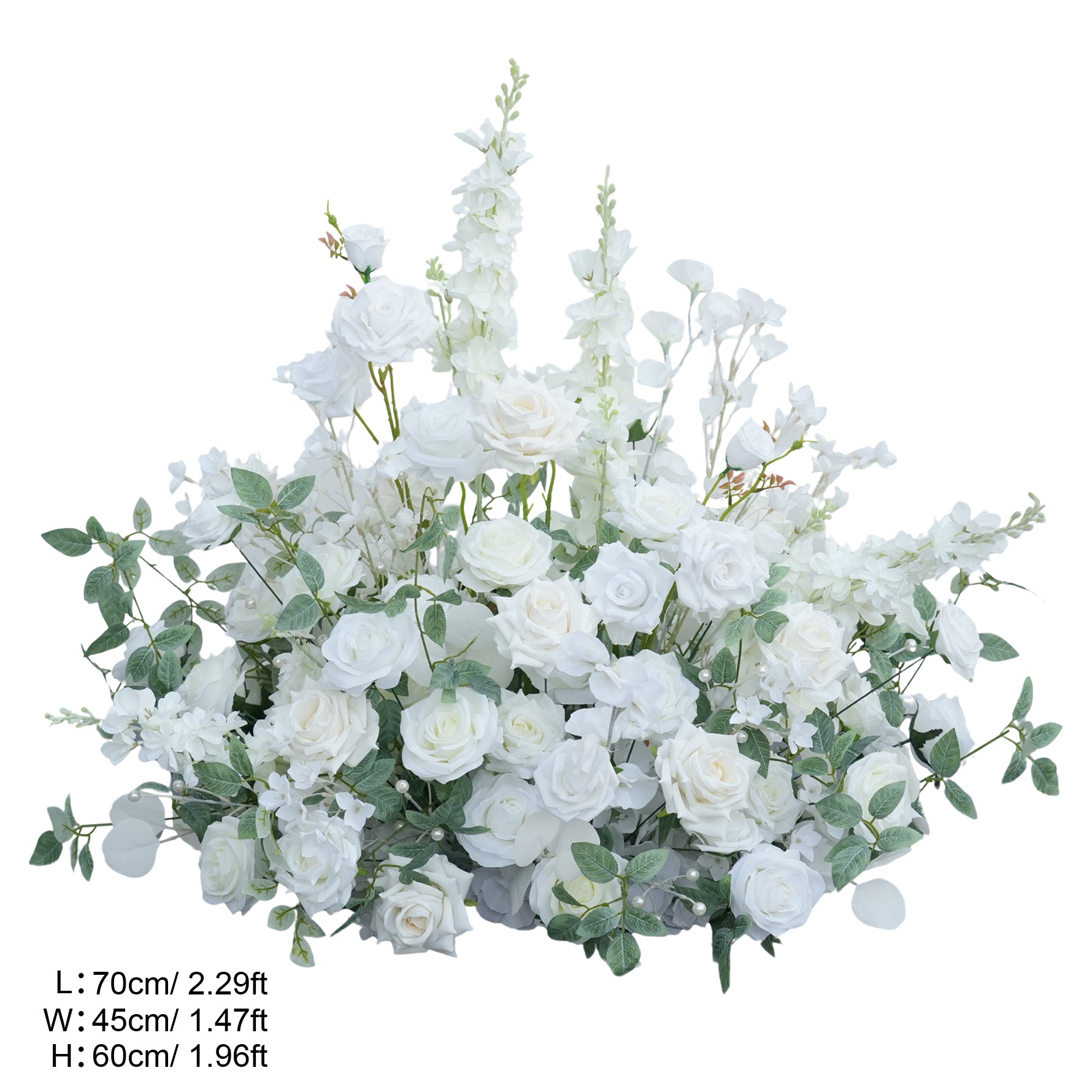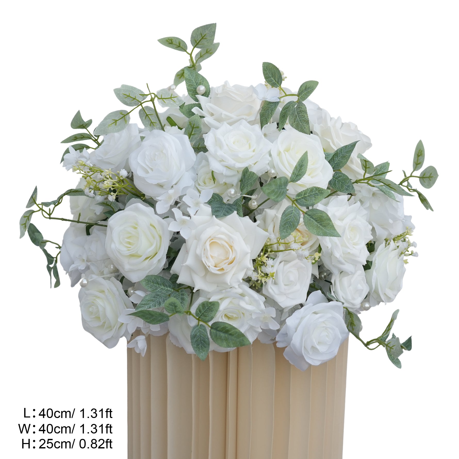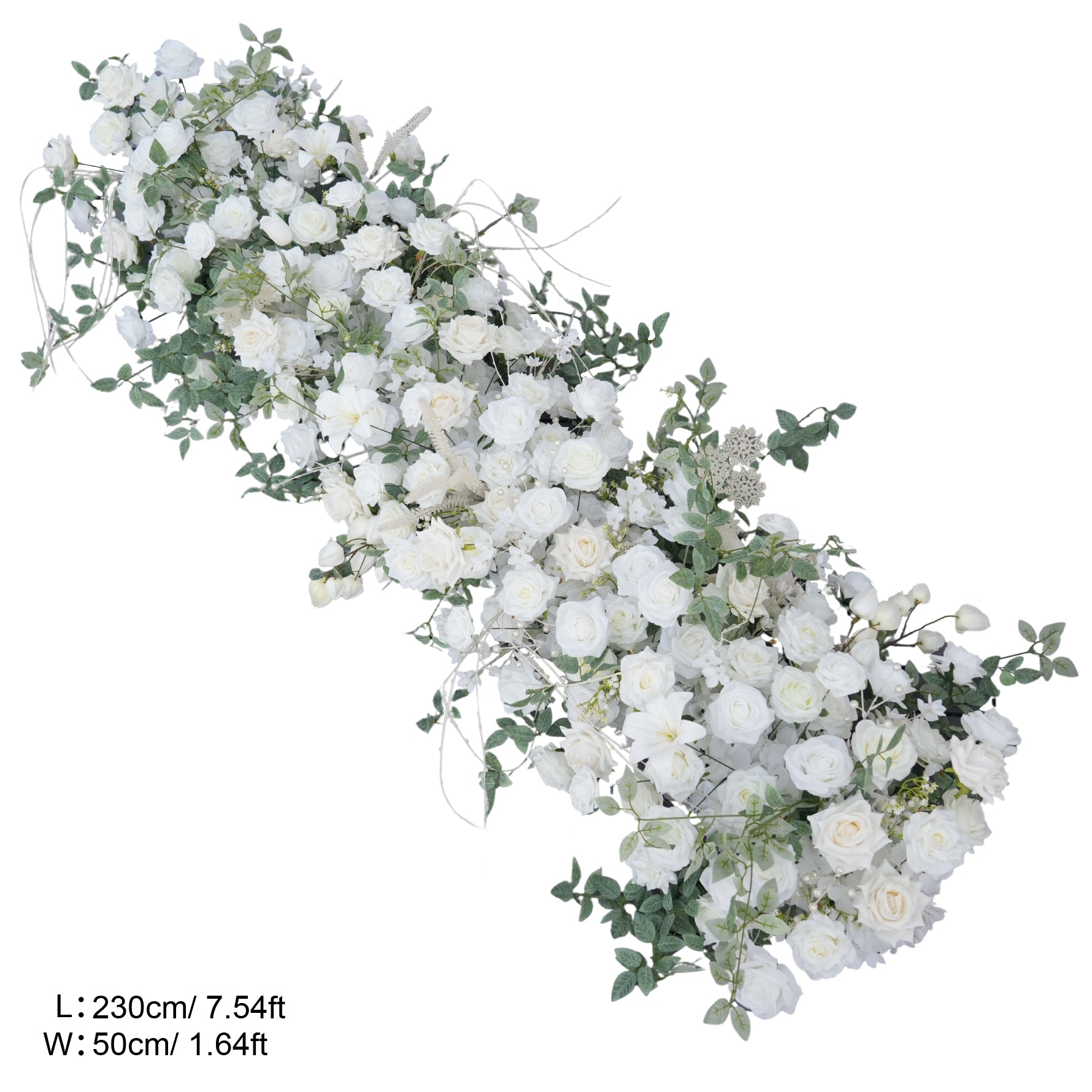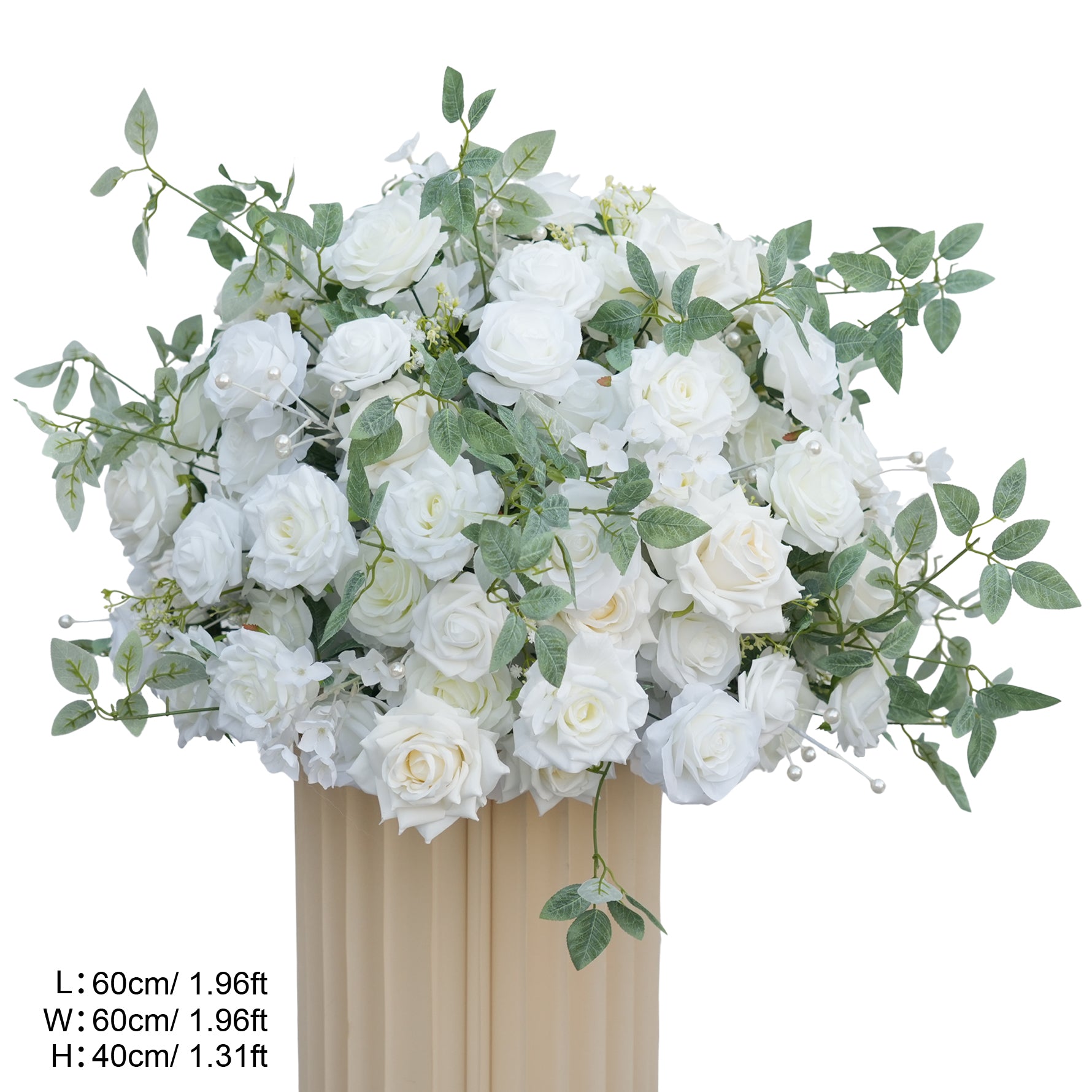A8995 White Rose Greenery Floral Row Square Arch Flower Ball Outdoor Wedding Decor
