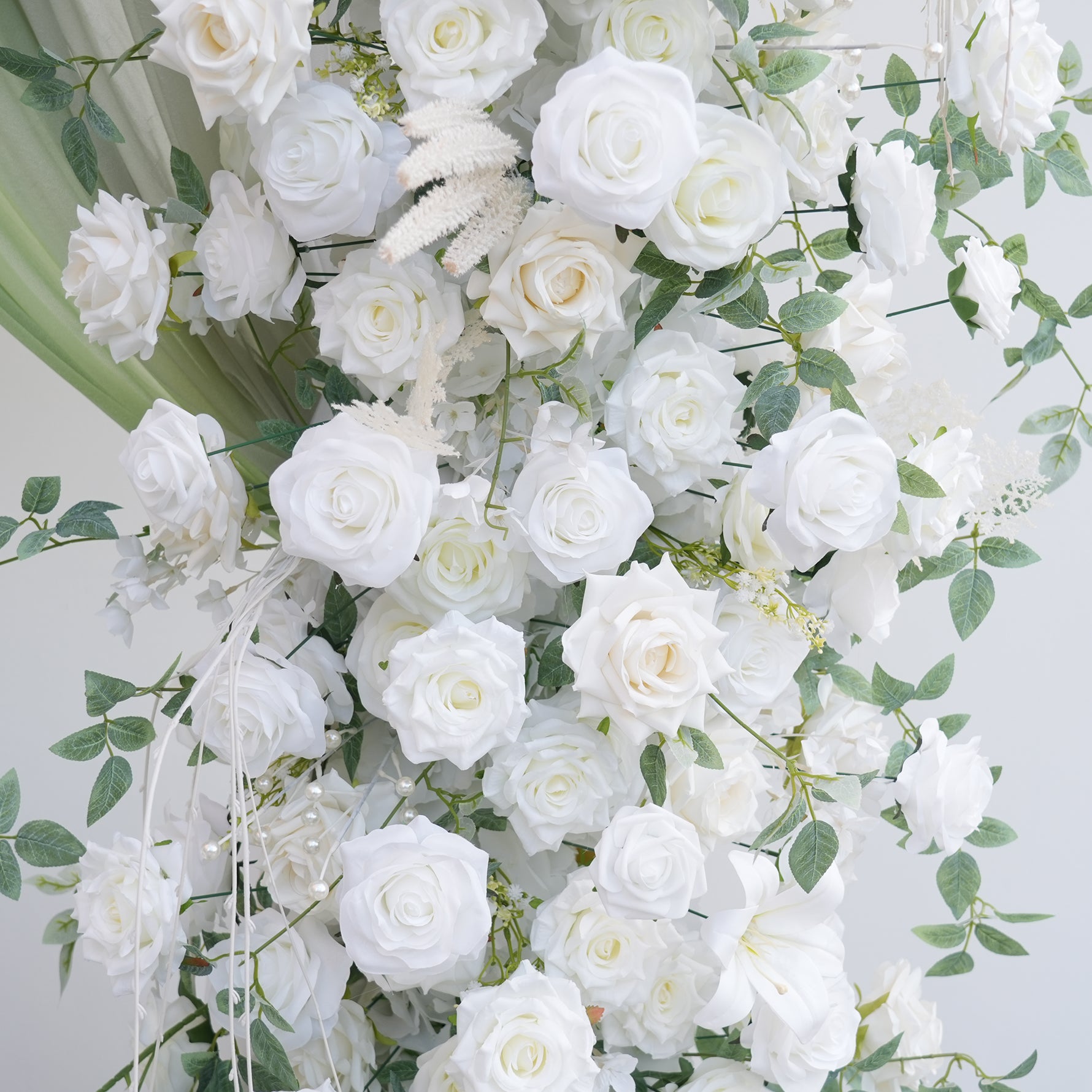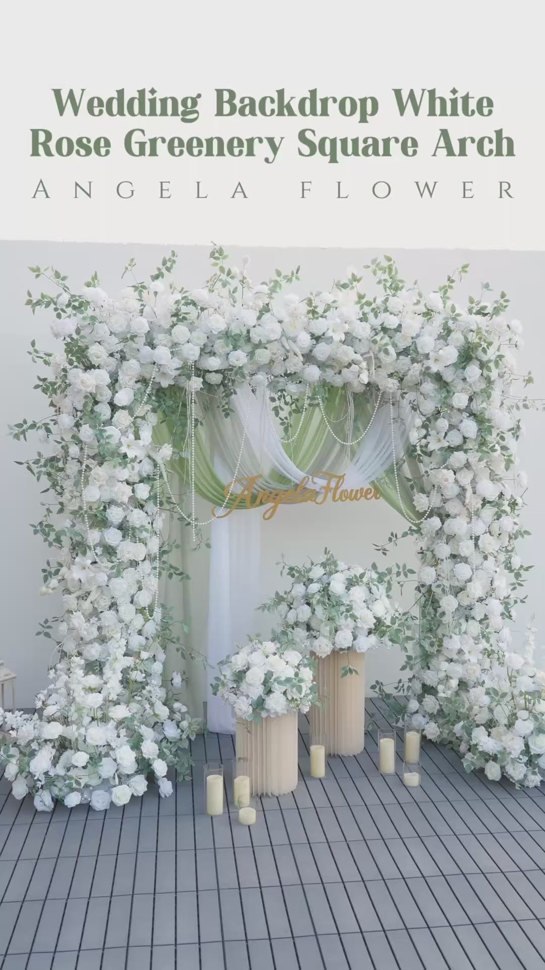 Color Inspiration: Elevate your event with our stunning white rose and greenery square arch. Featuring classic white roses artfully intertwined with lush greenery, this arch creates a romantic and sophisticated focal point. Perfect for weddings, ceremonies, and photo backdrops.