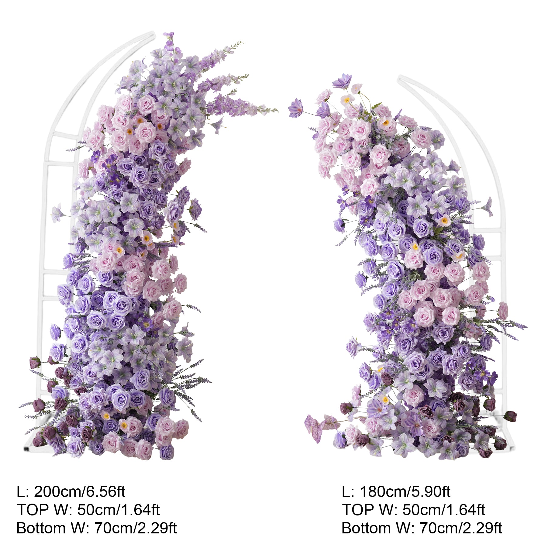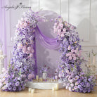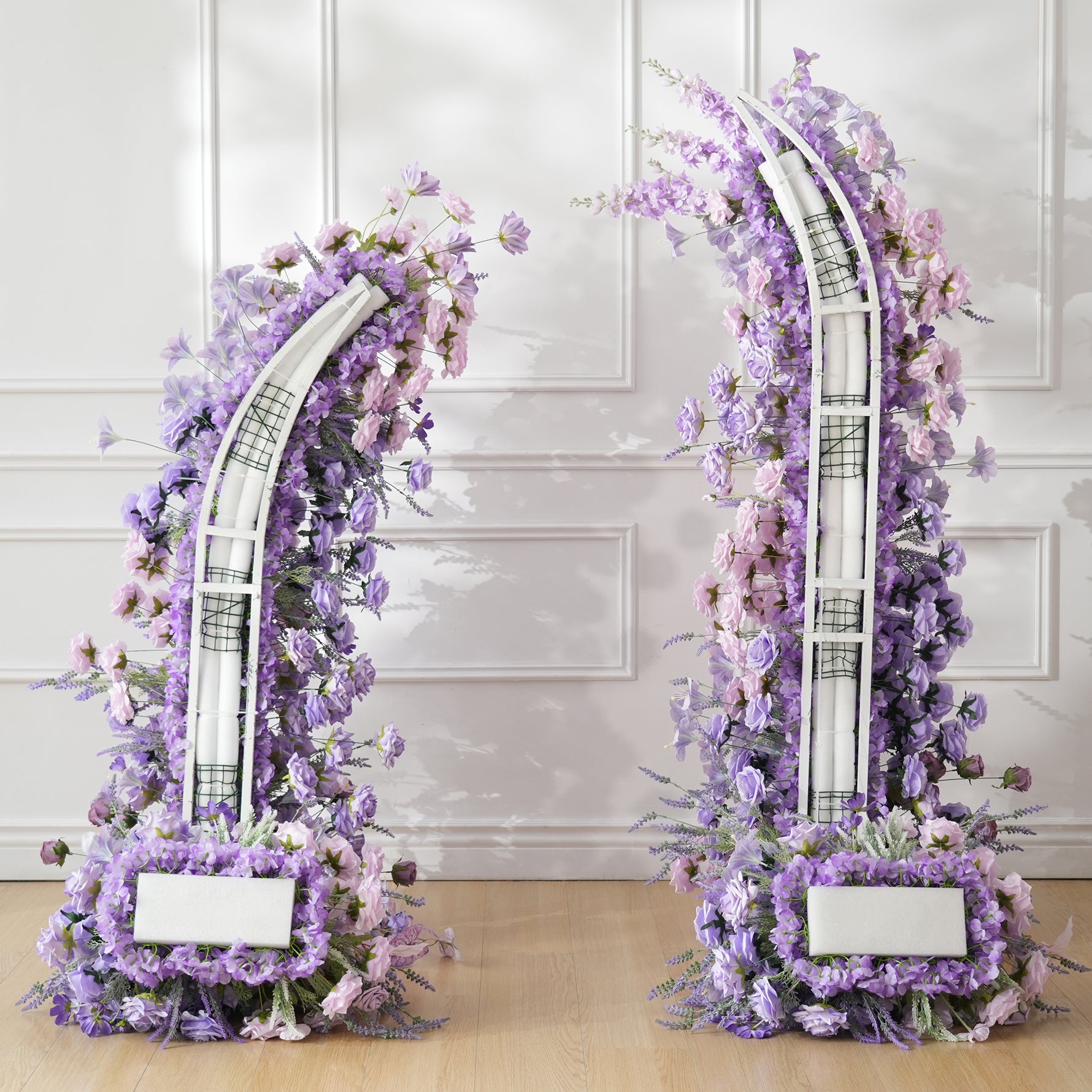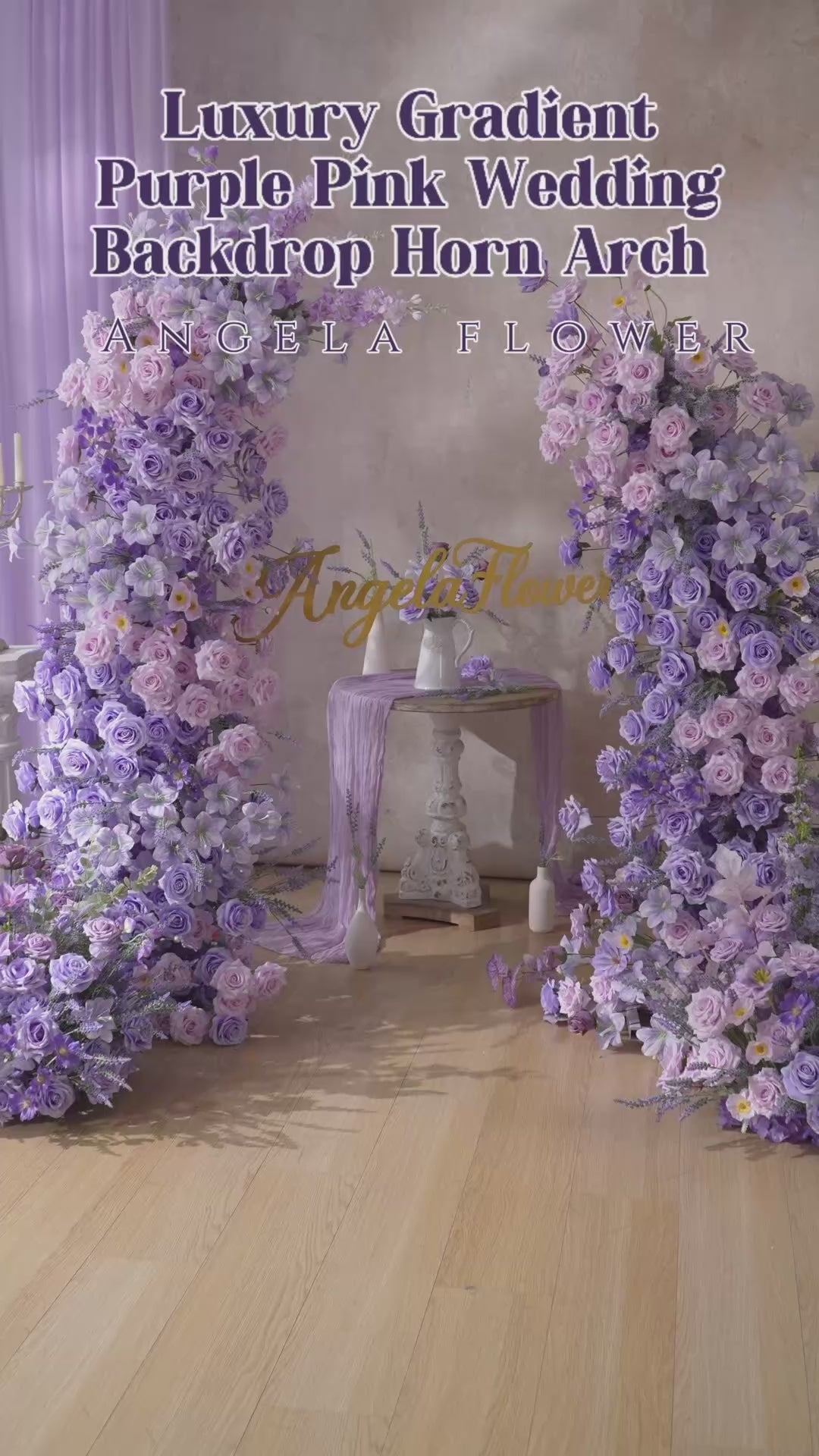 Color Inspiration: Create a whimsical and romantic atmosphere with our purple lavender and rose horn arch. This unique design features delicate lavender sprigs and elegant purple roses artfully arranged on a horn-shaped frame. Perfect for weddings, garden parties, and enchanting photo backdrops.