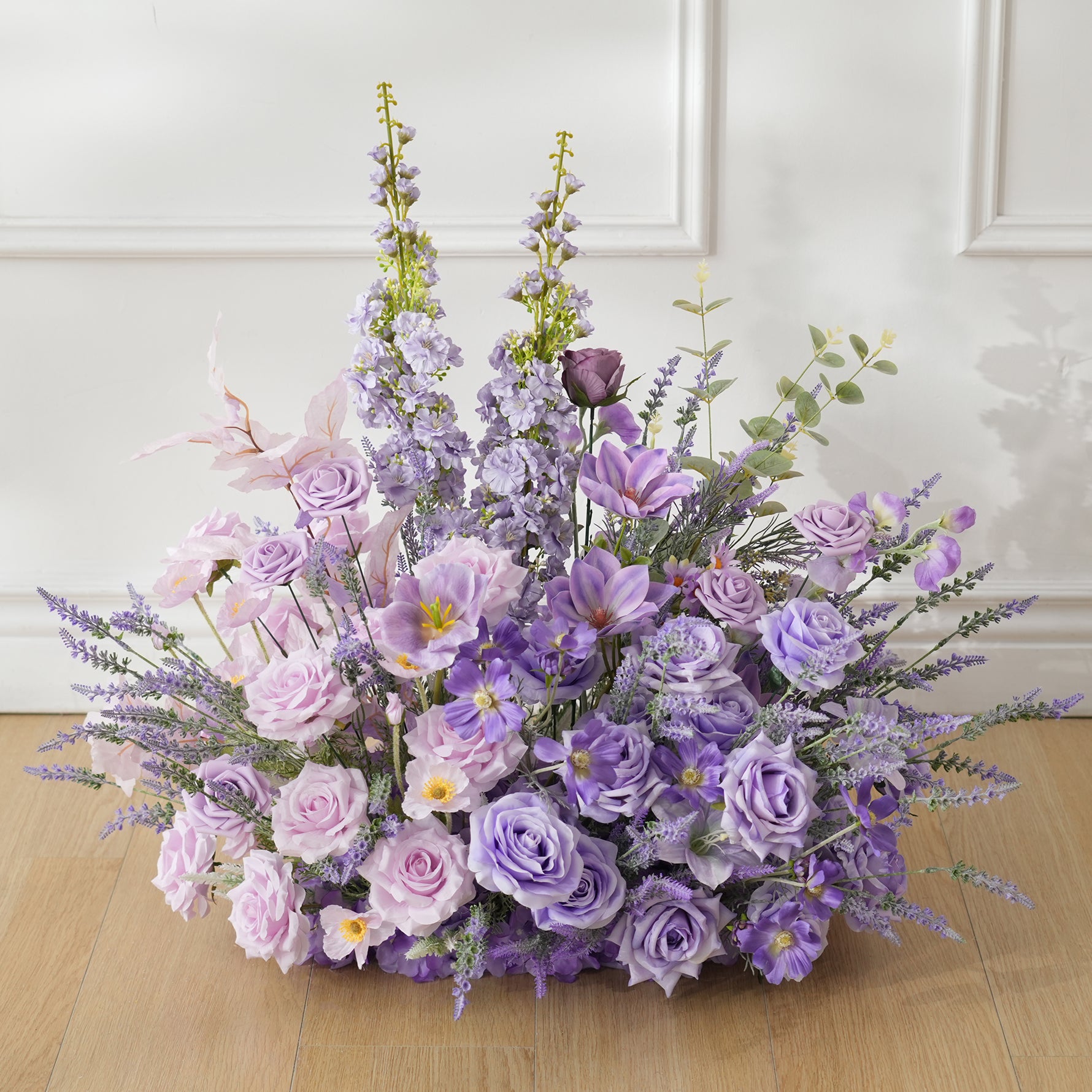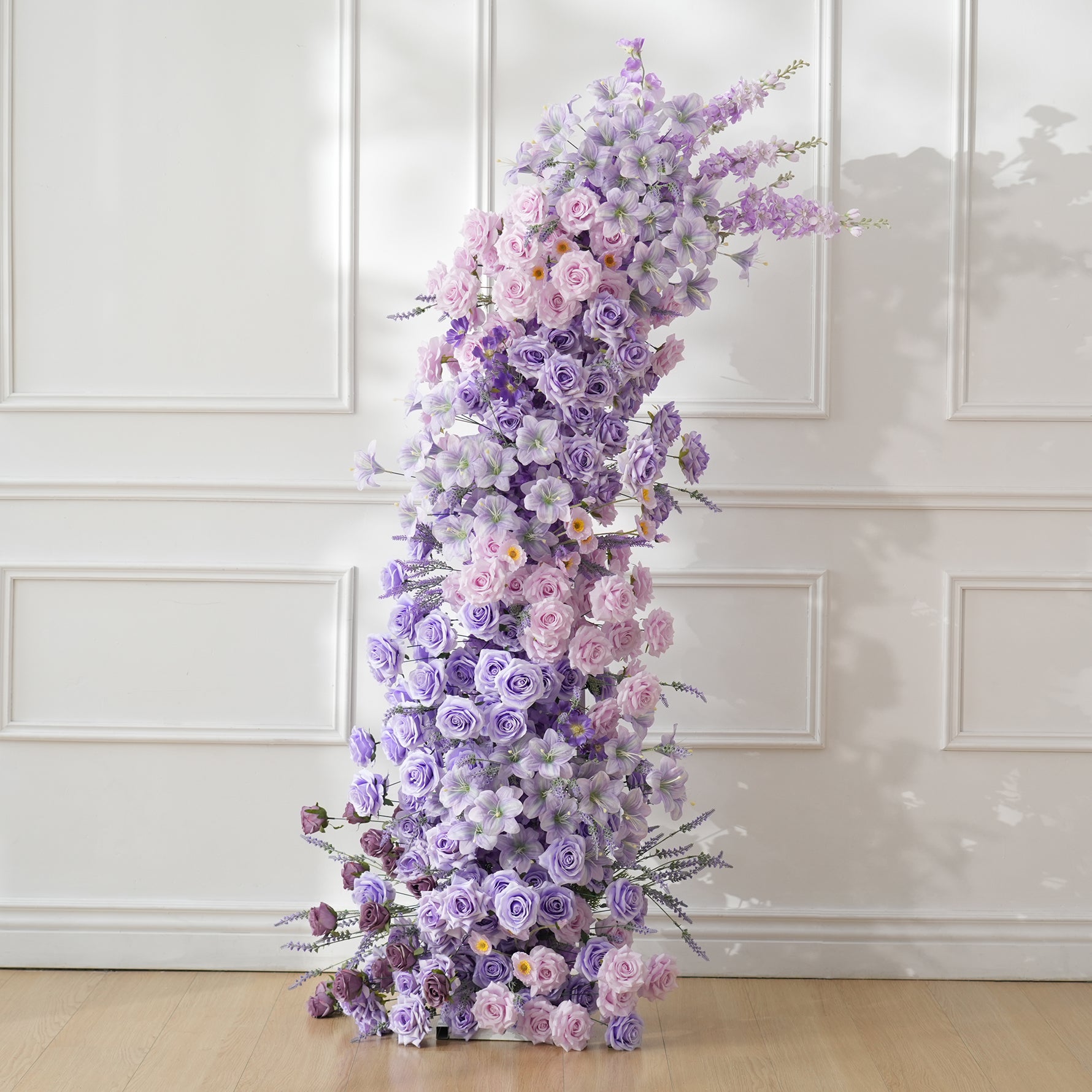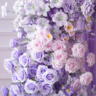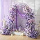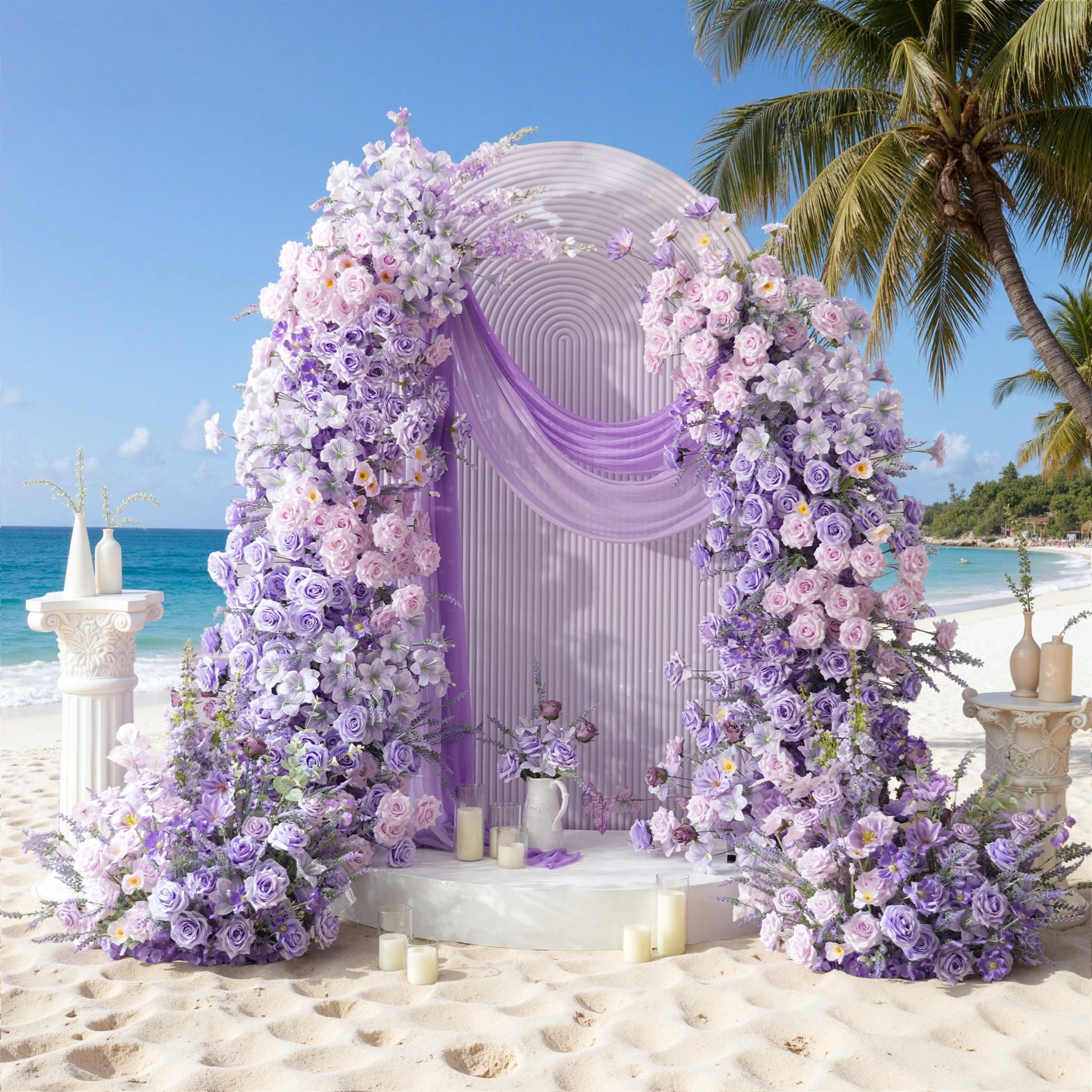 Color Inspiration: Create a whimsical and romantic atmosphere with our purple lavender and rose horn arch. This unique design features delicate lavender sprigs and elegant purple roses artfully arranged on a horn-shaped frame. Perfect for weddings, garden parties, and enchanting photo backdrops.