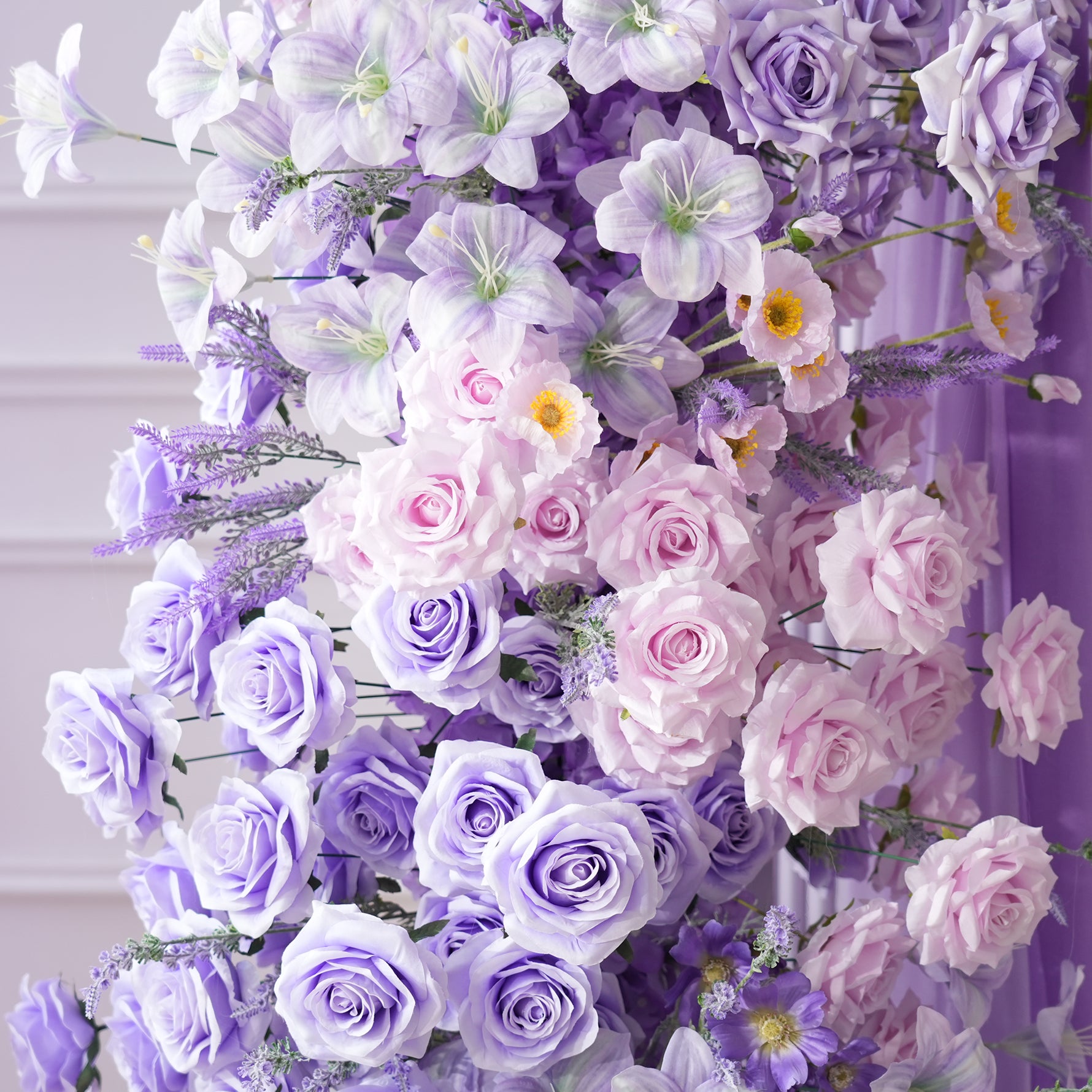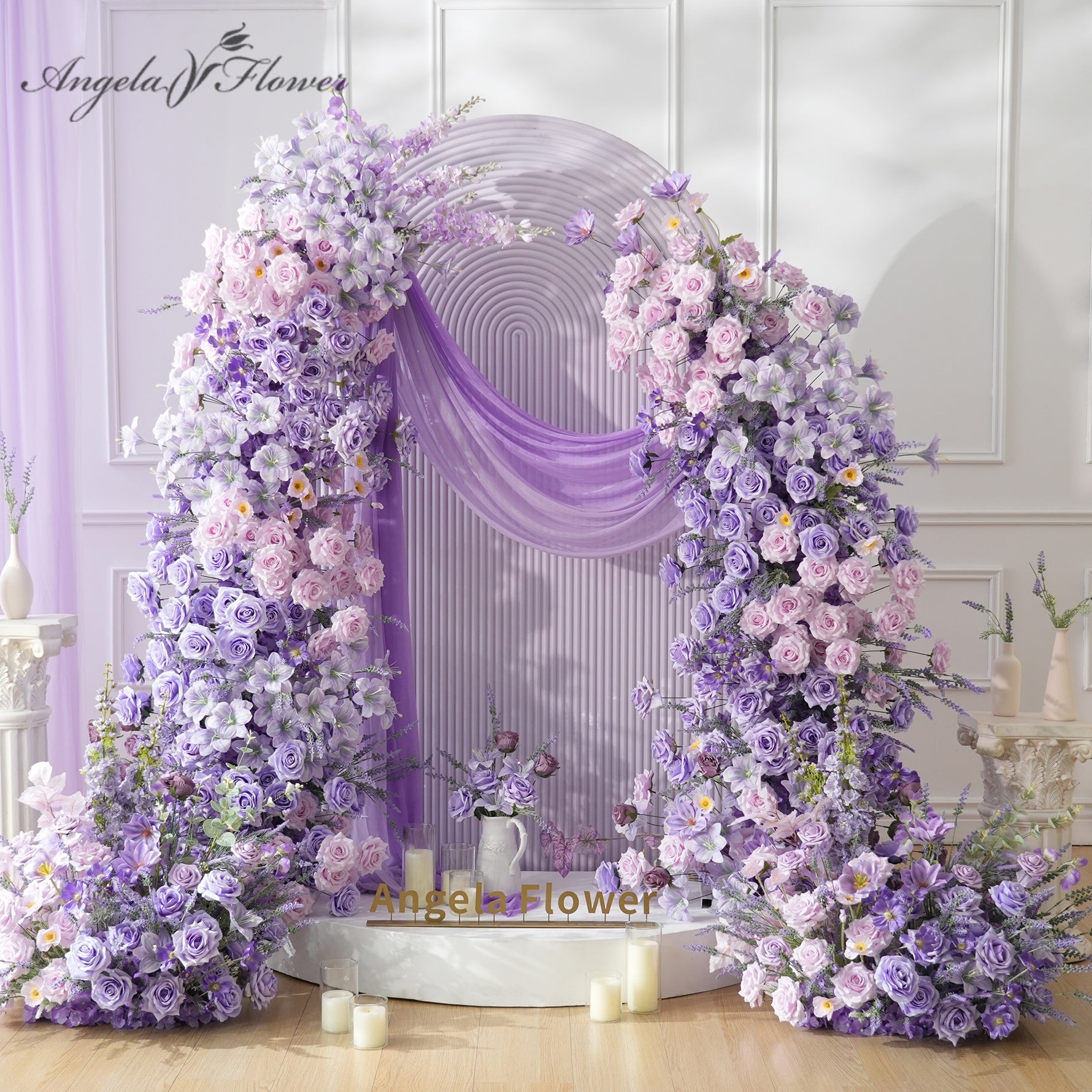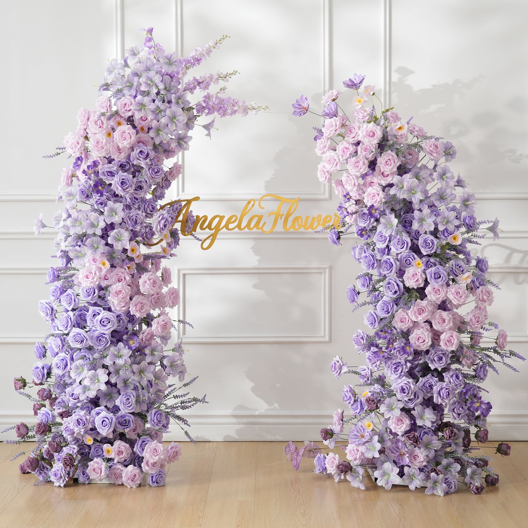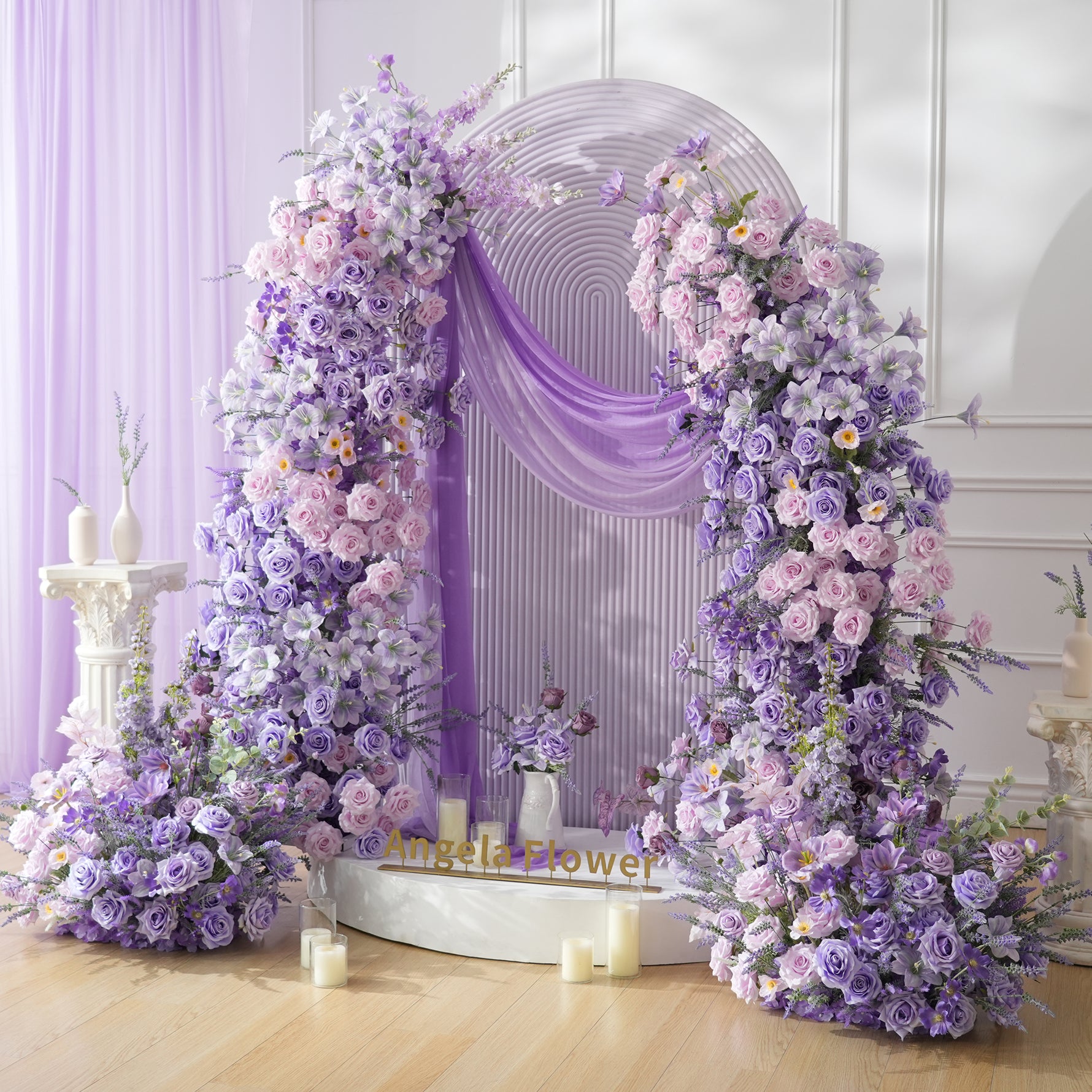 A9002 Purple Lavender Rose Artificial Floral Row Horn Arch Aisle Flower Wedding Decor