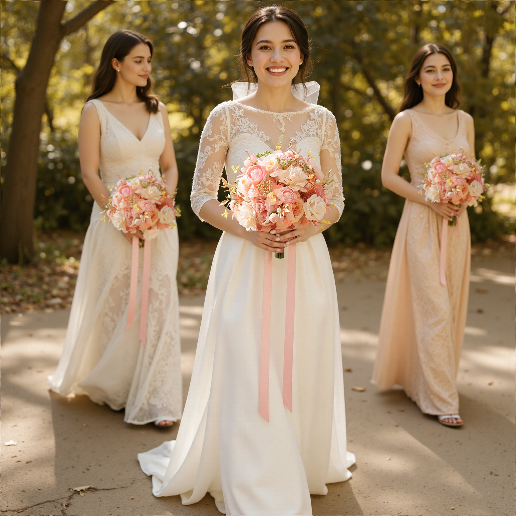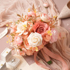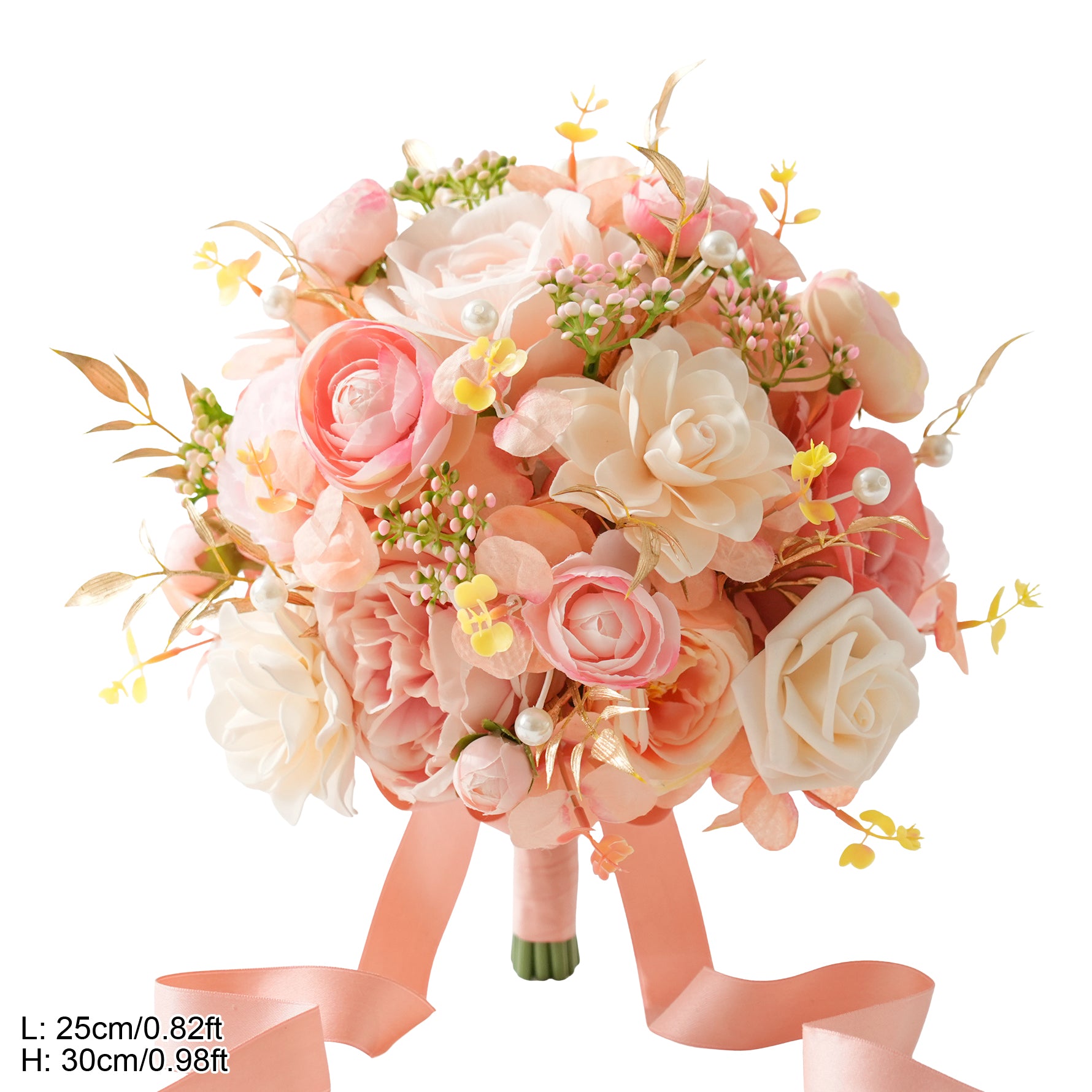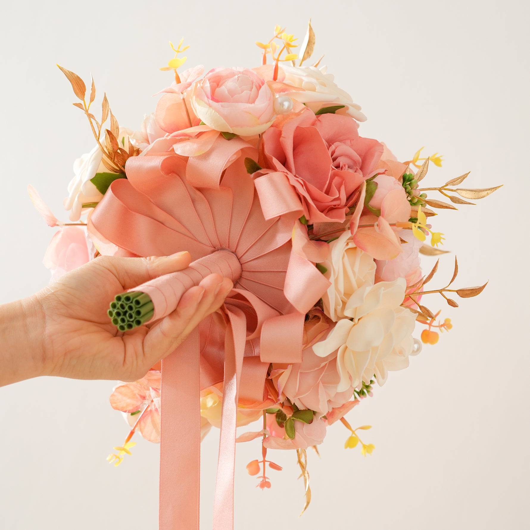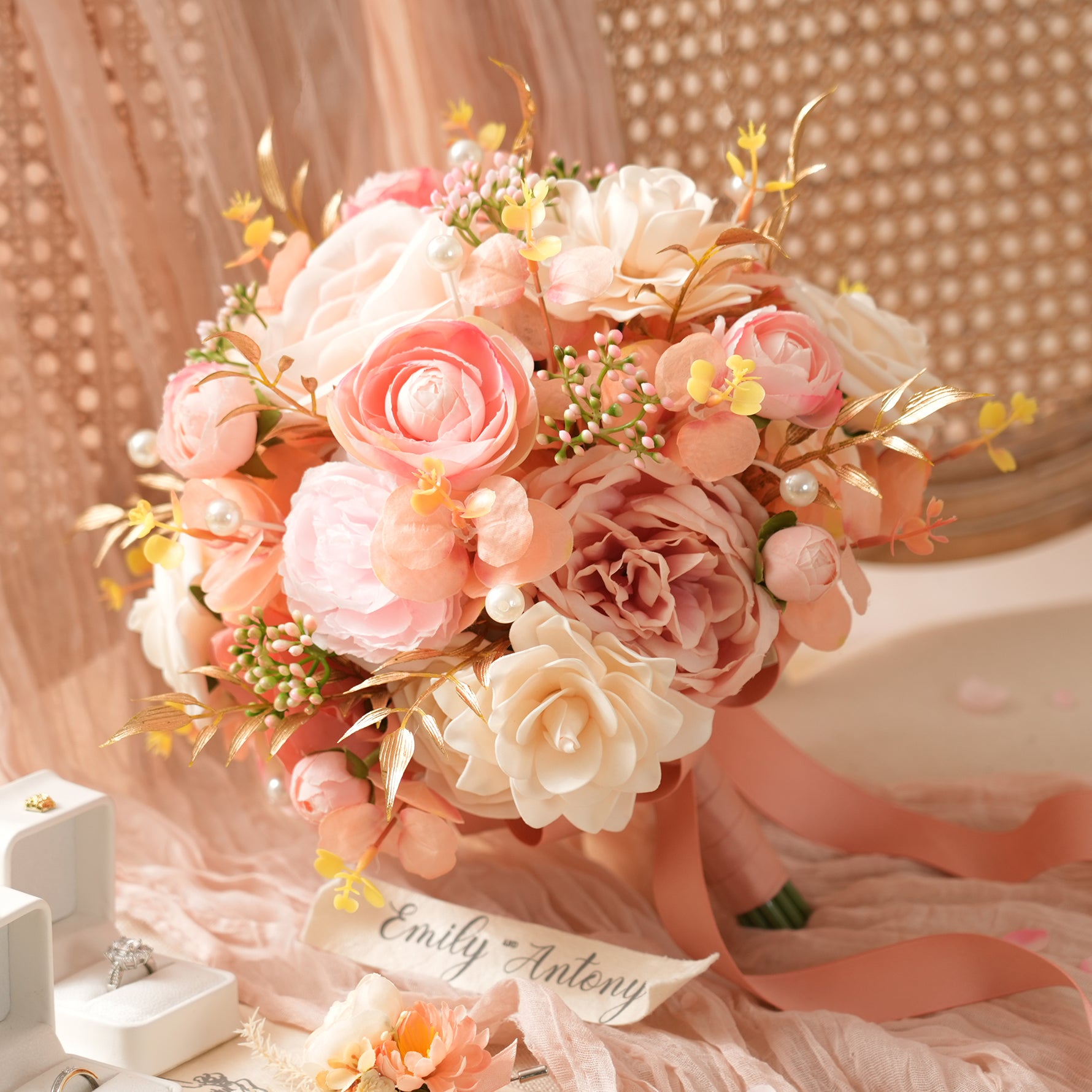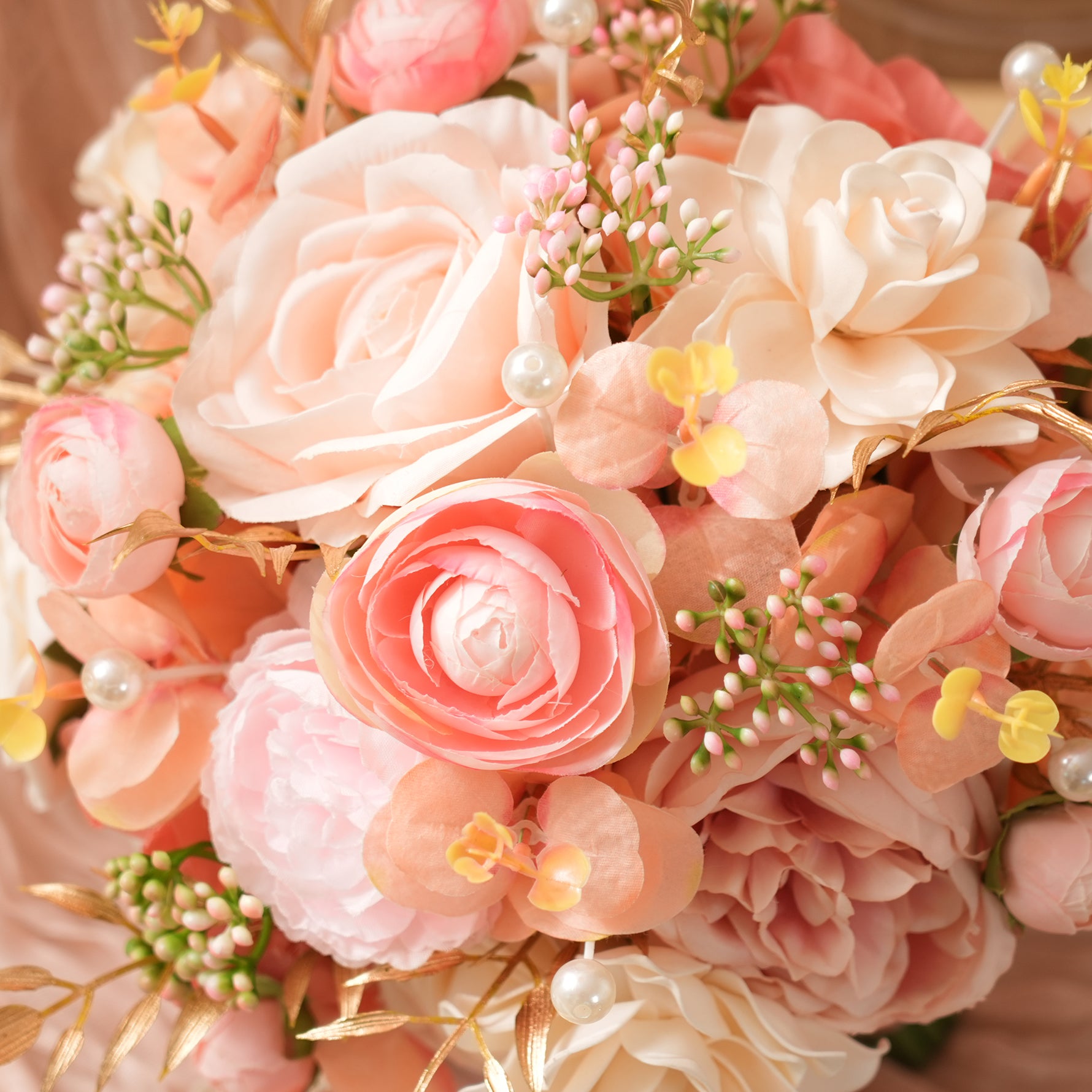 Color Inspiration: This artificial bridal bouquet in dusty rose and eucalyptus tones blends soft blush roses, peonies, and delicate foliage with pearl accents. Crafted from lifelike silk, it captures the gentle warmth of a romantic wedding palette—perfect for timeless, boho, or garden-themed ceremonies.