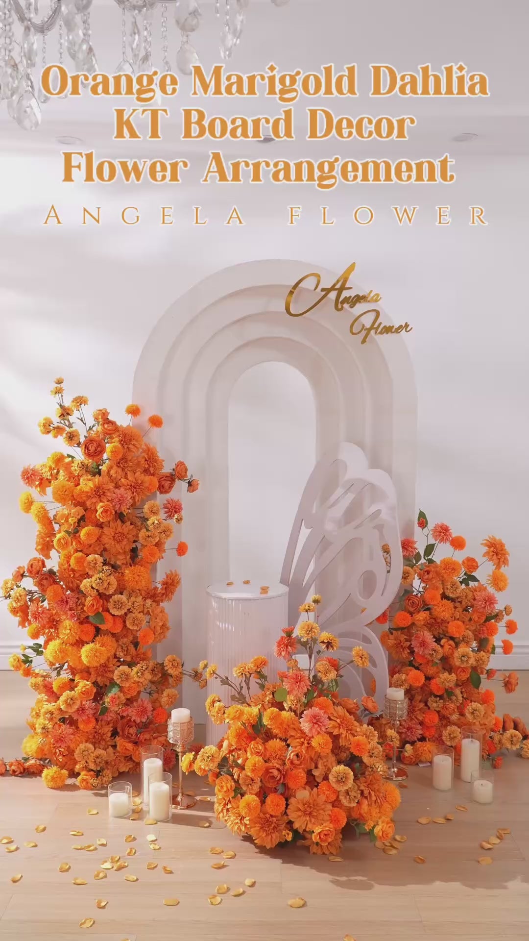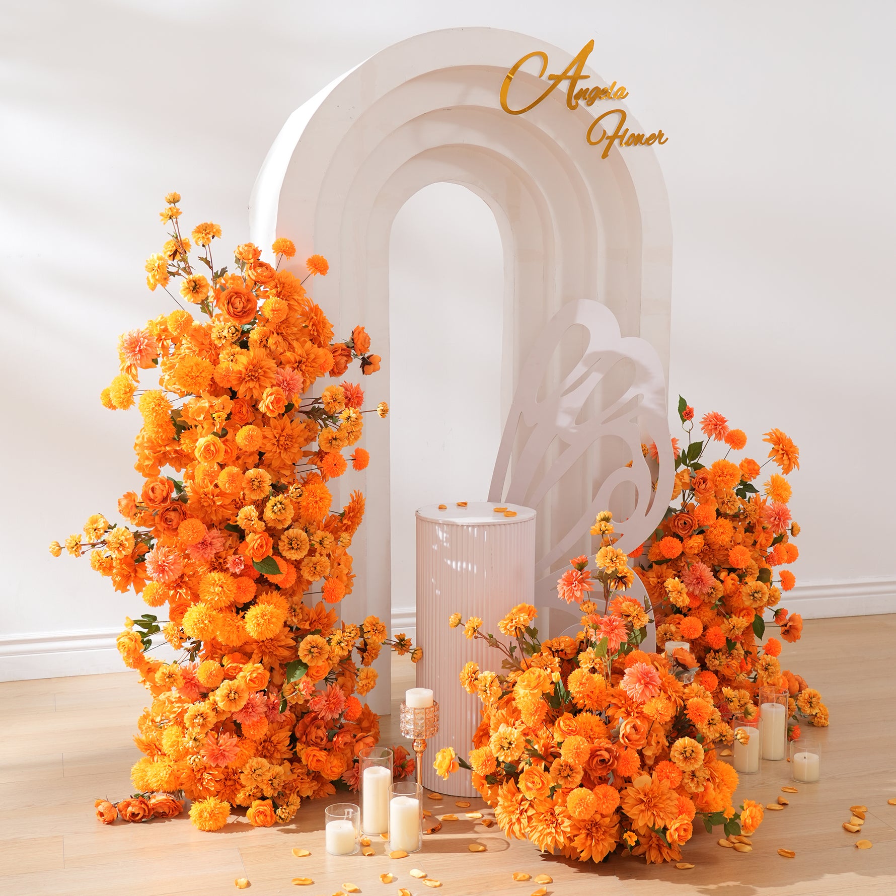 A9017 Orange Dahlia Pompon Floral Arrangement KT Board Outdoor Wedding Decor