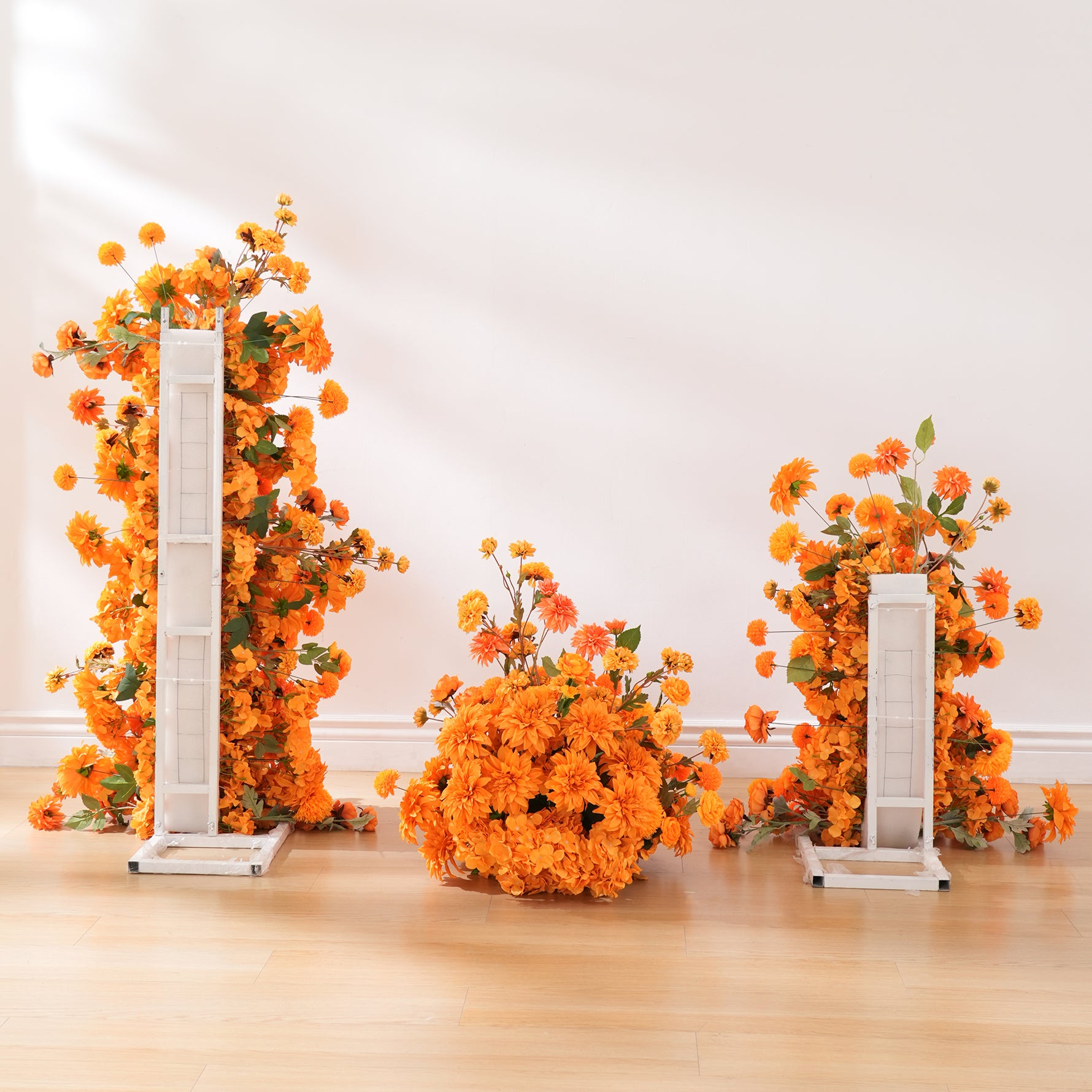 Color Inspiration: Bring warmth and vibrancy to your special event with our orange floral set. Featuring stunning orange flower rows and aisle decorations, this collection captures the essence of a radiant sunset. A subtle yellow is artfully combined with a rich, warm orange. Perfect for weddings, parties, or any celebration seeking a touch of cheerful elegance.