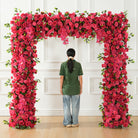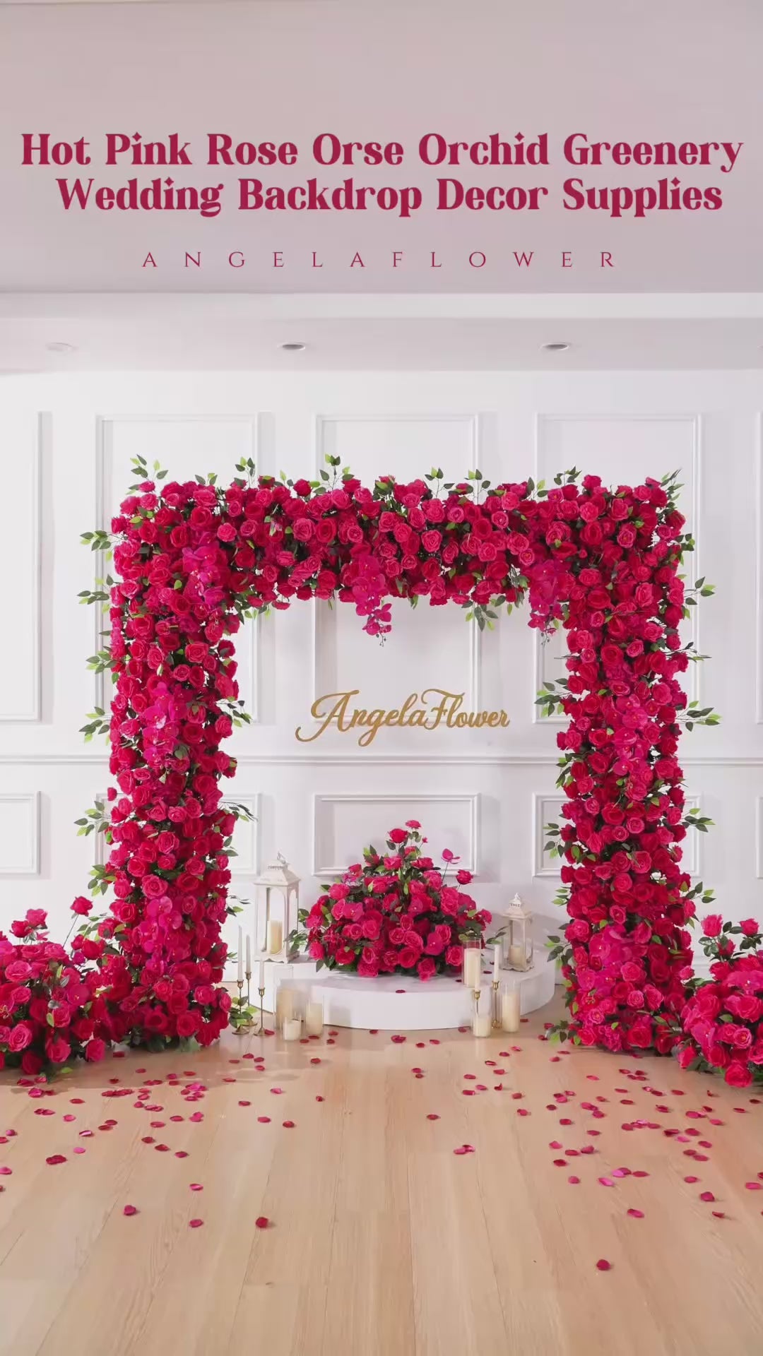 Color Inspiration: Make a statement with our vibrant hot pink artificial archway set! This eye-catching set includes a stunning square arch, coordinating floor flowers, and elegant table centerpieces. Hot pink roses take center stage, complemented by cascading orchids for a touch of drama. Perfect for weddings, parties, or events, this set brings bold beauty to any space.