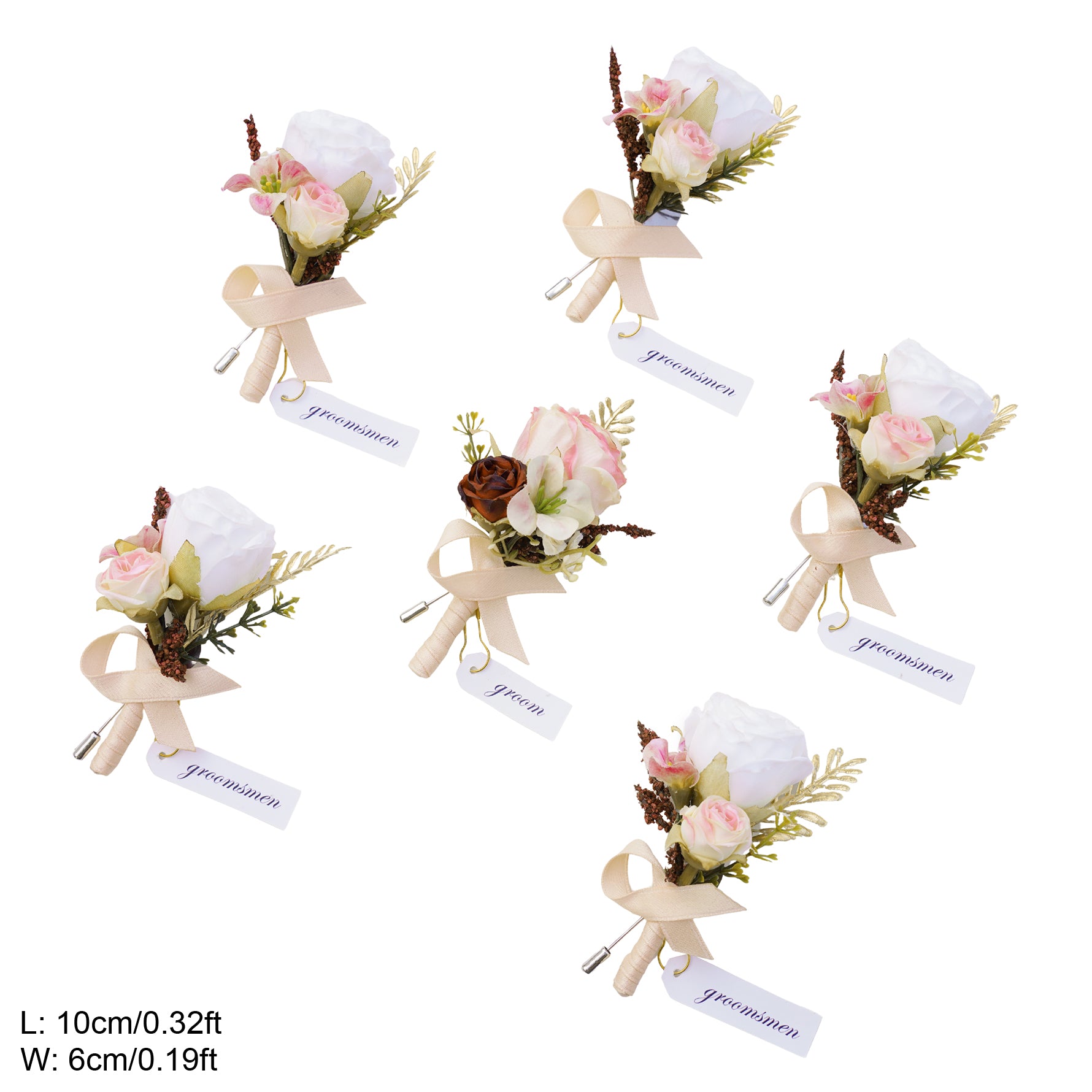 A9060 6pcs/set Artificial Pink Rose Boutonniere Set For Groomsman Wedding Props