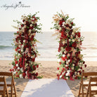 A9062 Artificial Gold Leaves Red Floral Arrangement Horn Arch Wedding Background Decor