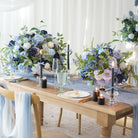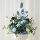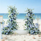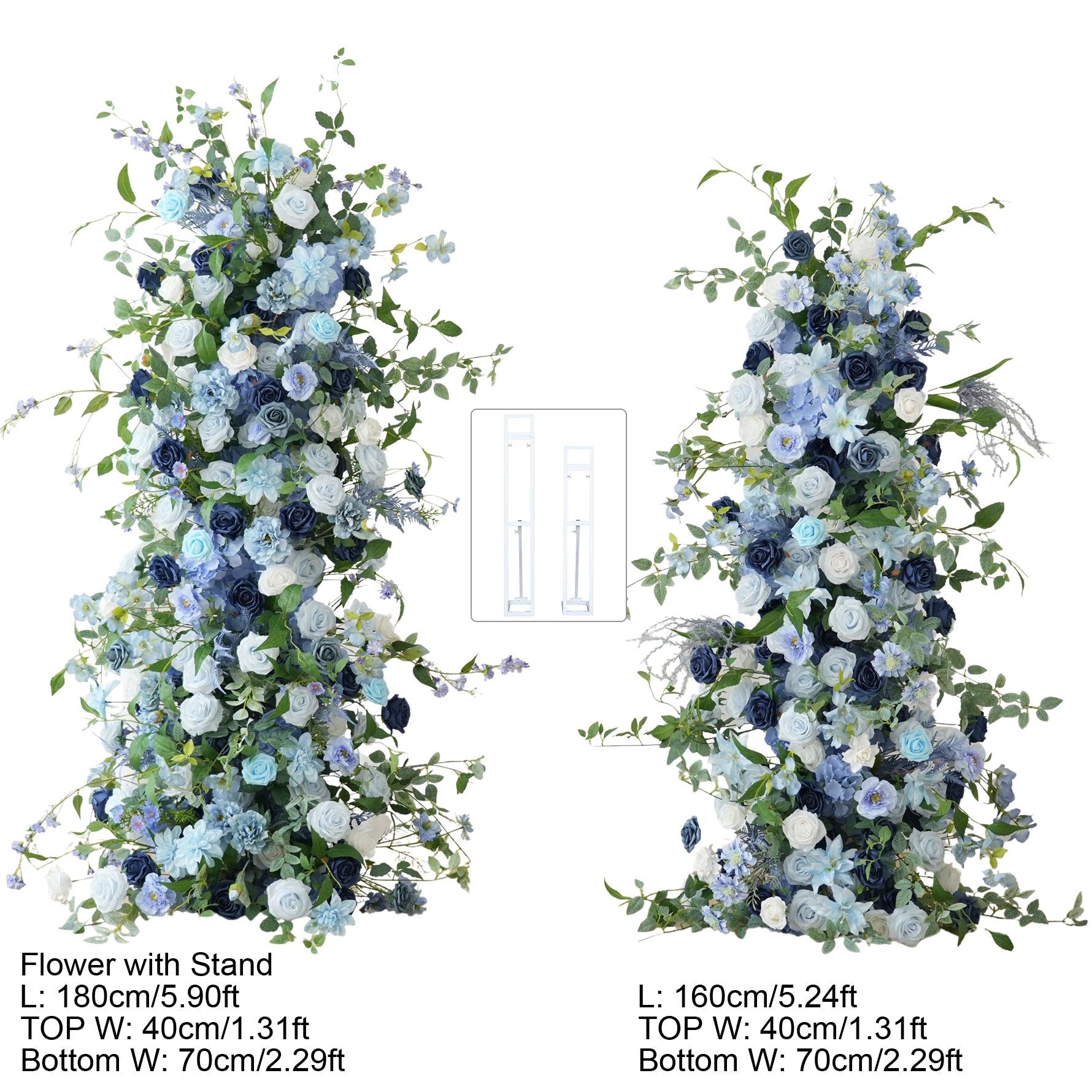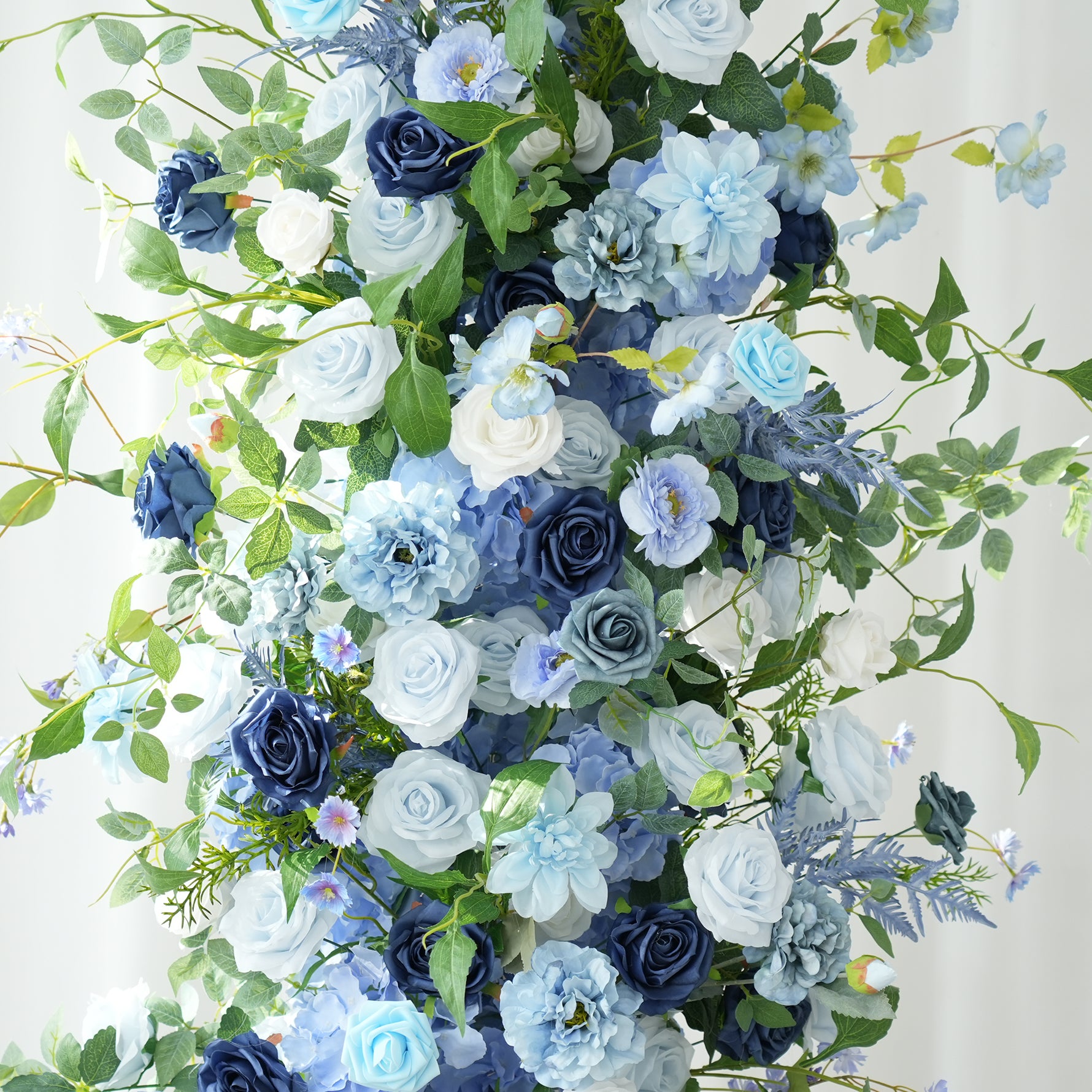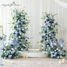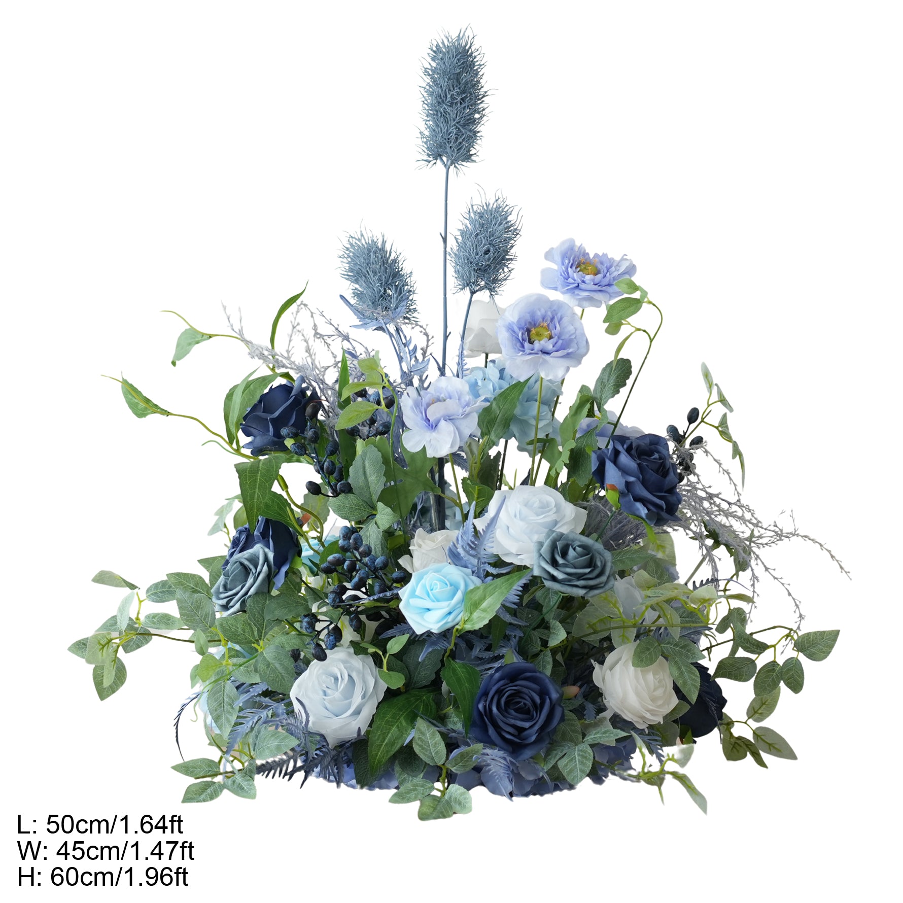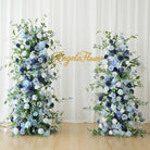 Color Inspiration: Create an ethereal ambiance with our Light & Dark Blue Artificial Floral Decor! This collection features stunning KT board flower rows, table centerpieces, and aisle decorations, crafted with delicate light and deep blue artificial blooms.