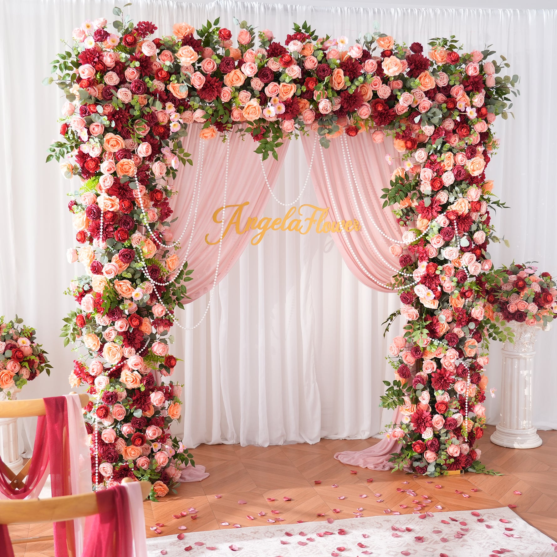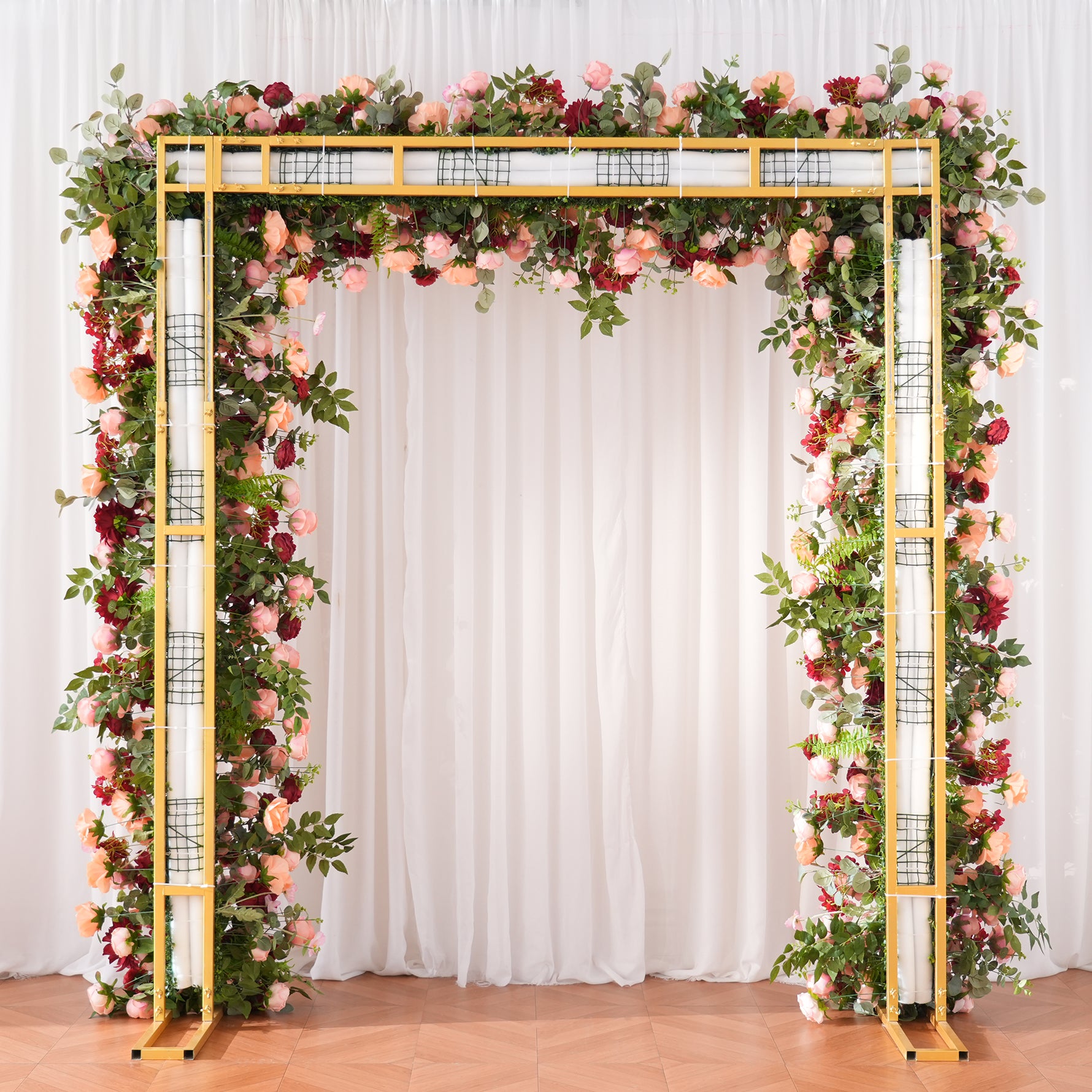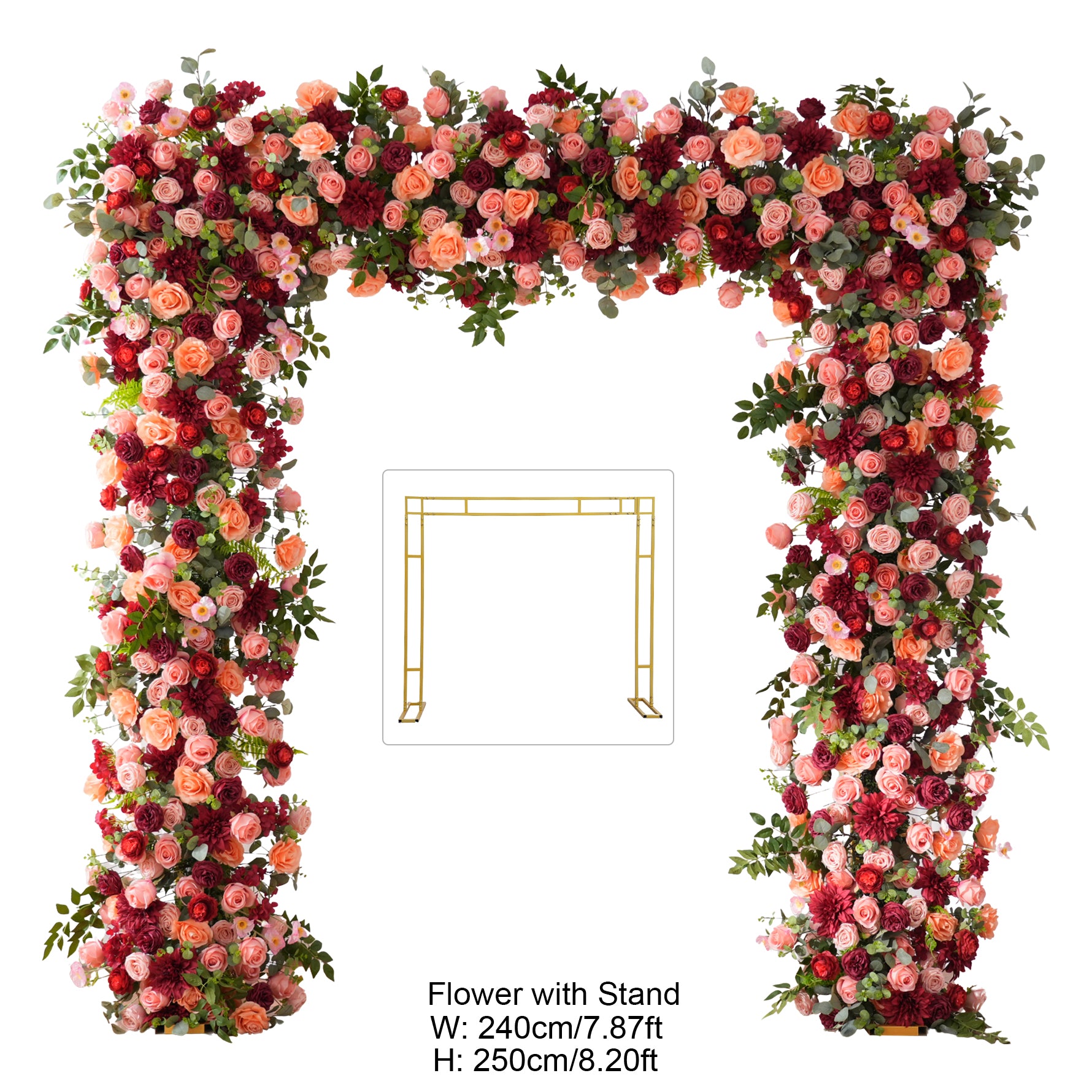 Color Inspiration: Romantic rose hues paired with greenery create a soft, elegant color palette ideal for weddings. This arch decoration features lifelike artificial flowers and foliage, durable and fade-resistant. Lightweight, easy to assemble and reusable, it adds a lush, romantic focal point for ceremonies, photo backdrops and outdoor events with timeless charm.