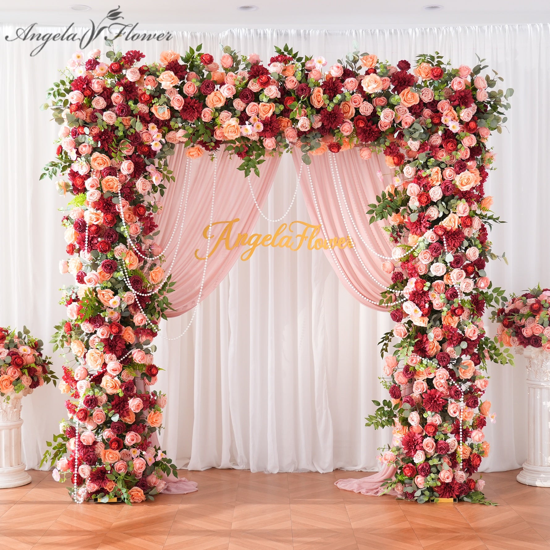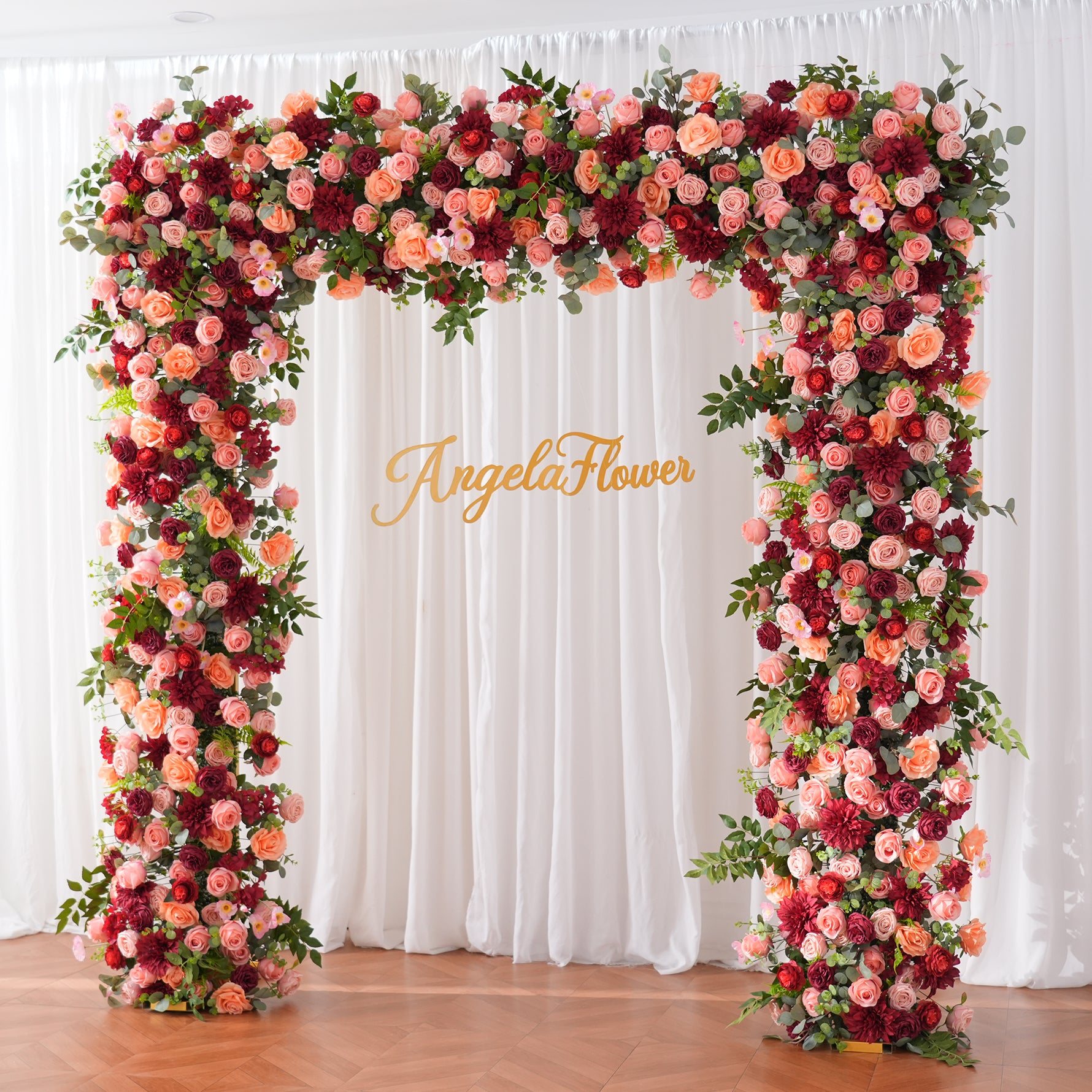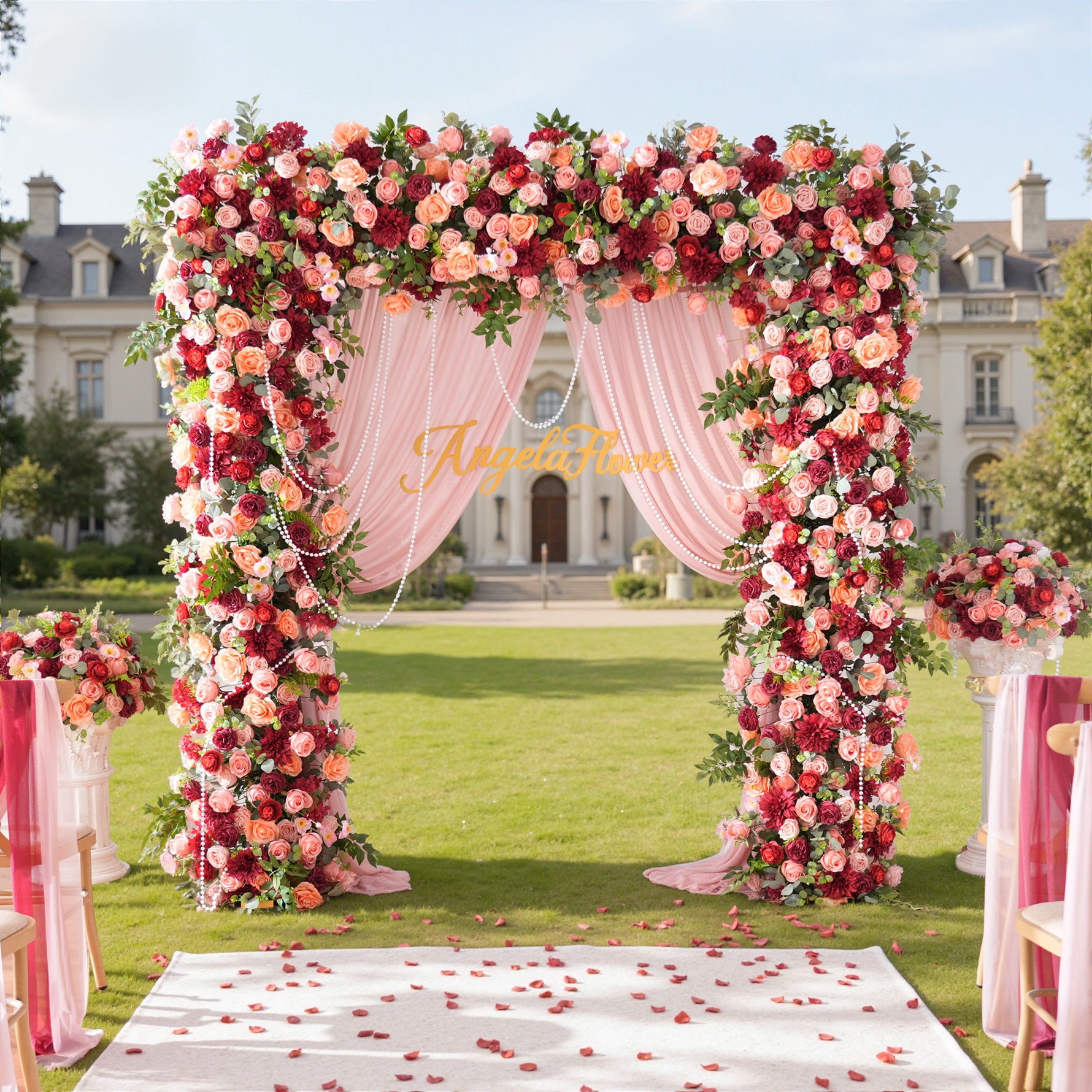 Color Inspiration: Romantic rose hues paired with greenery create a soft, elegant color palette ideal for weddings. This arch decoration features lifelike artificial flowers and foliage, durable and fade-resistant. Lightweight, easy to assemble and reusable, it adds a lush, romantic focal point for ceremonies, photo backdrops and outdoor events with timeless charm.