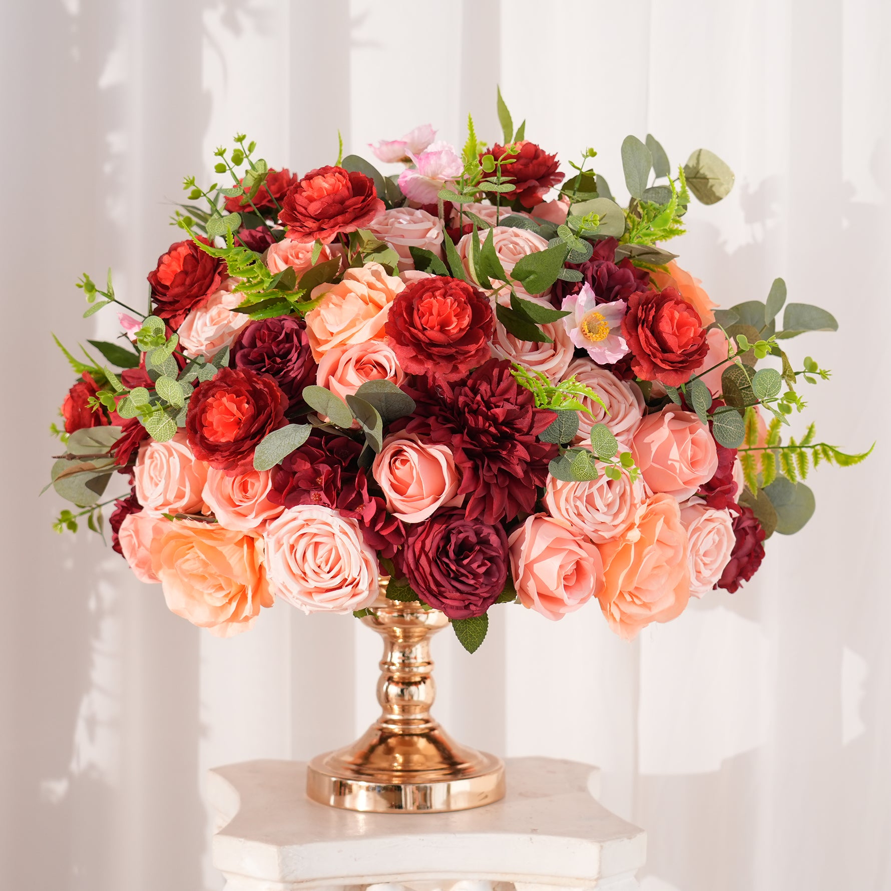 【Manual】: Due to shipping and packaging reasons, the artificial flowers may be squeezed, please use the steam or hair dryer to make the flowers stretchm will be ok.