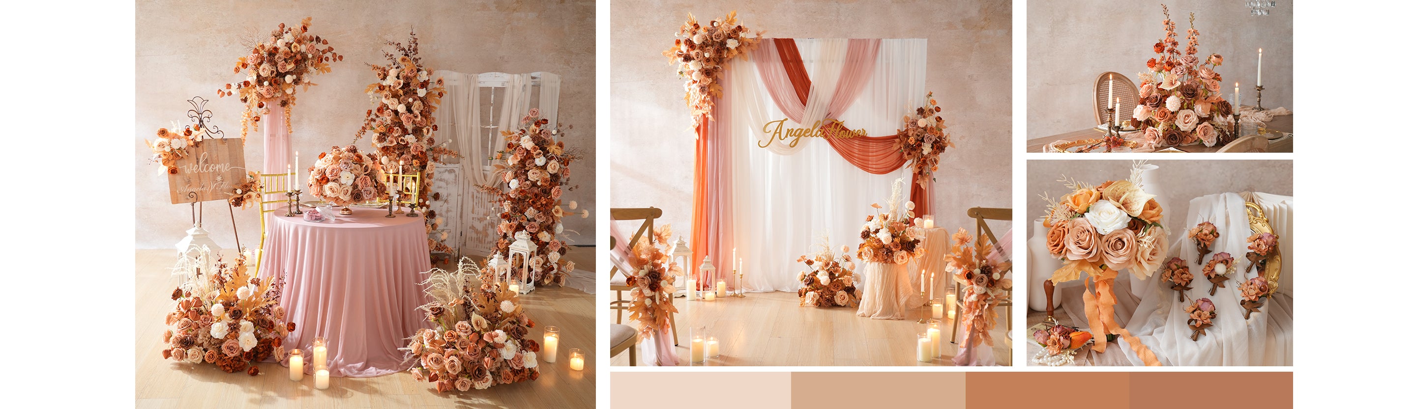 A9057 Artificial Coffee Brown Rose Wedding Table Decor Flower Arrangement Event Props