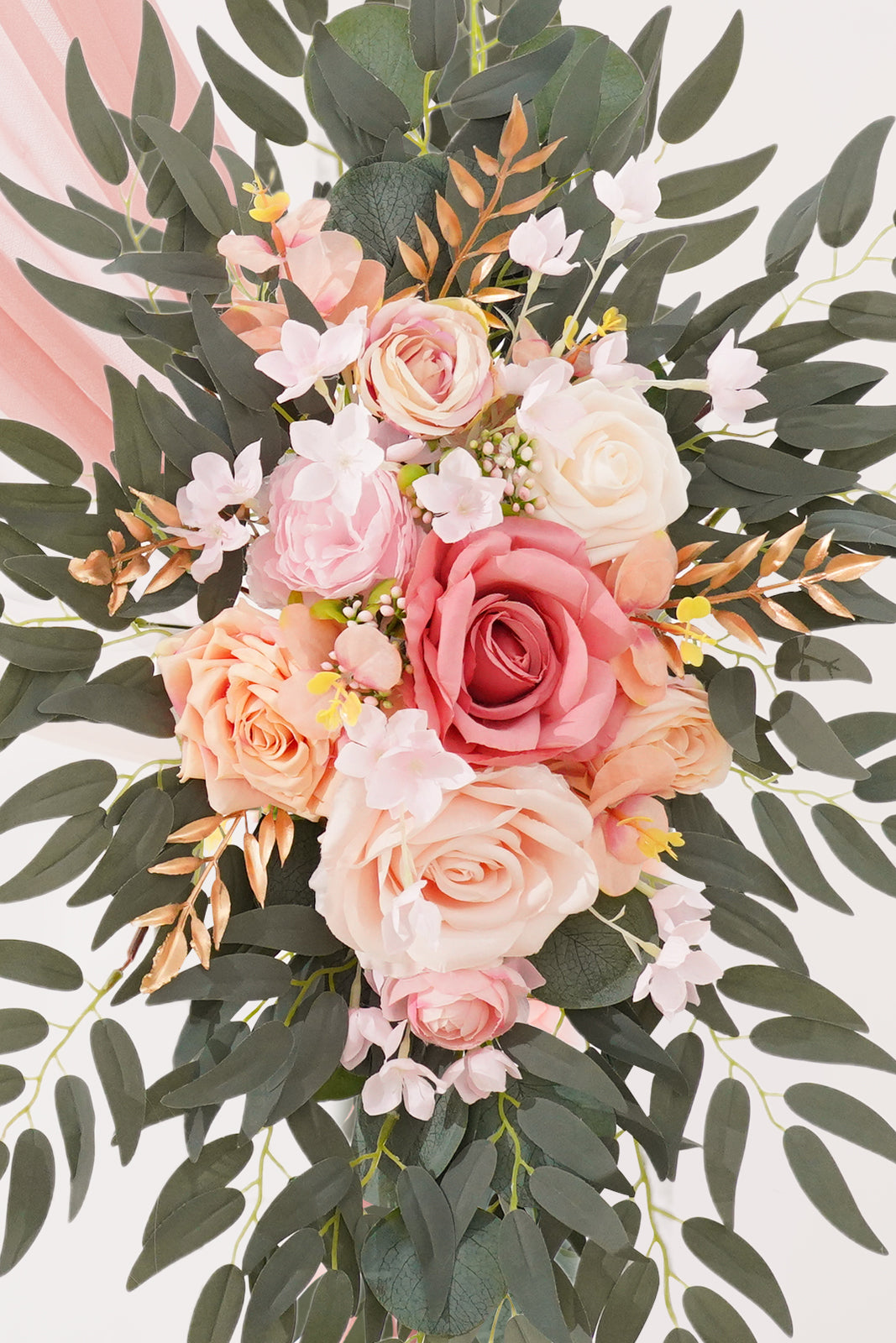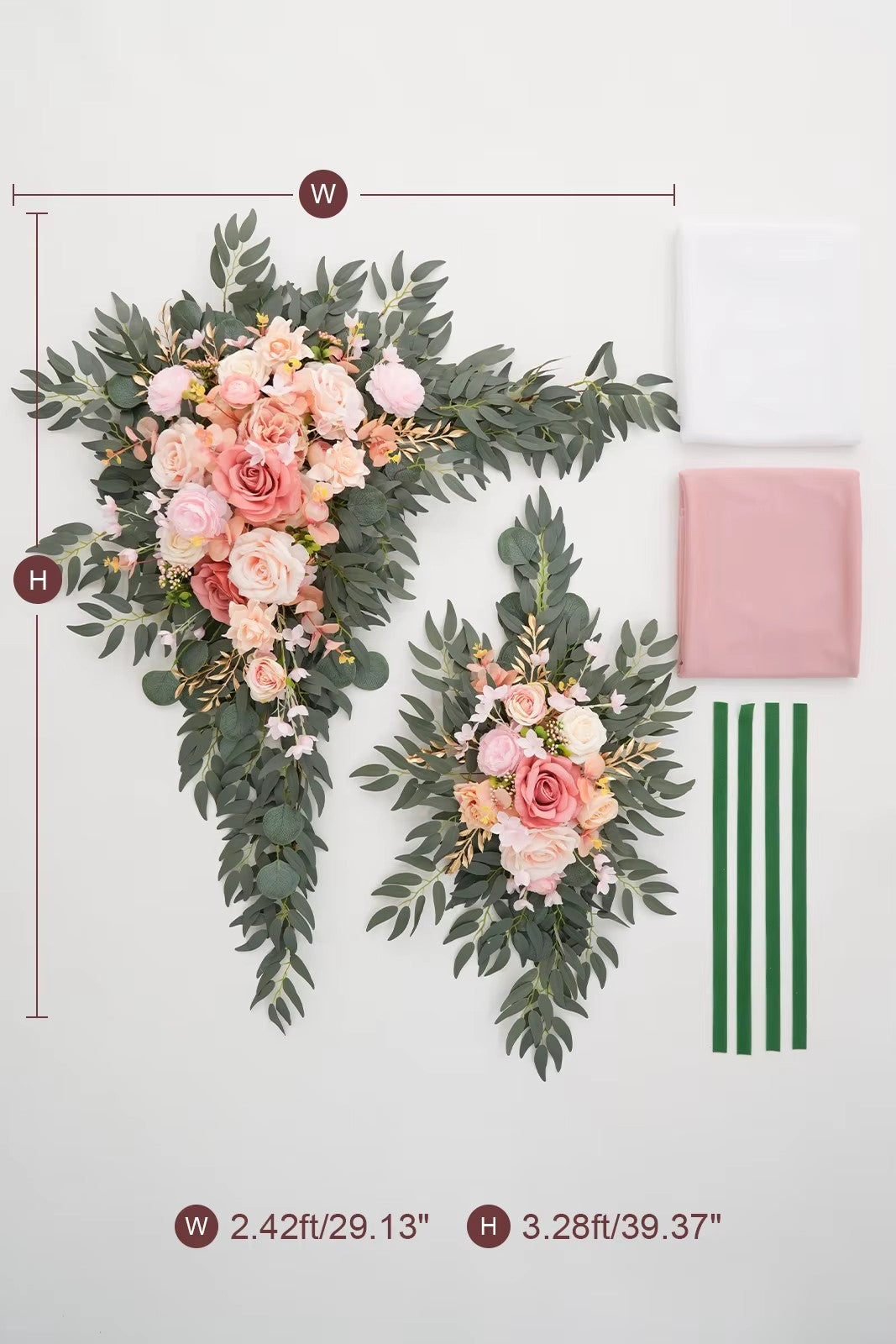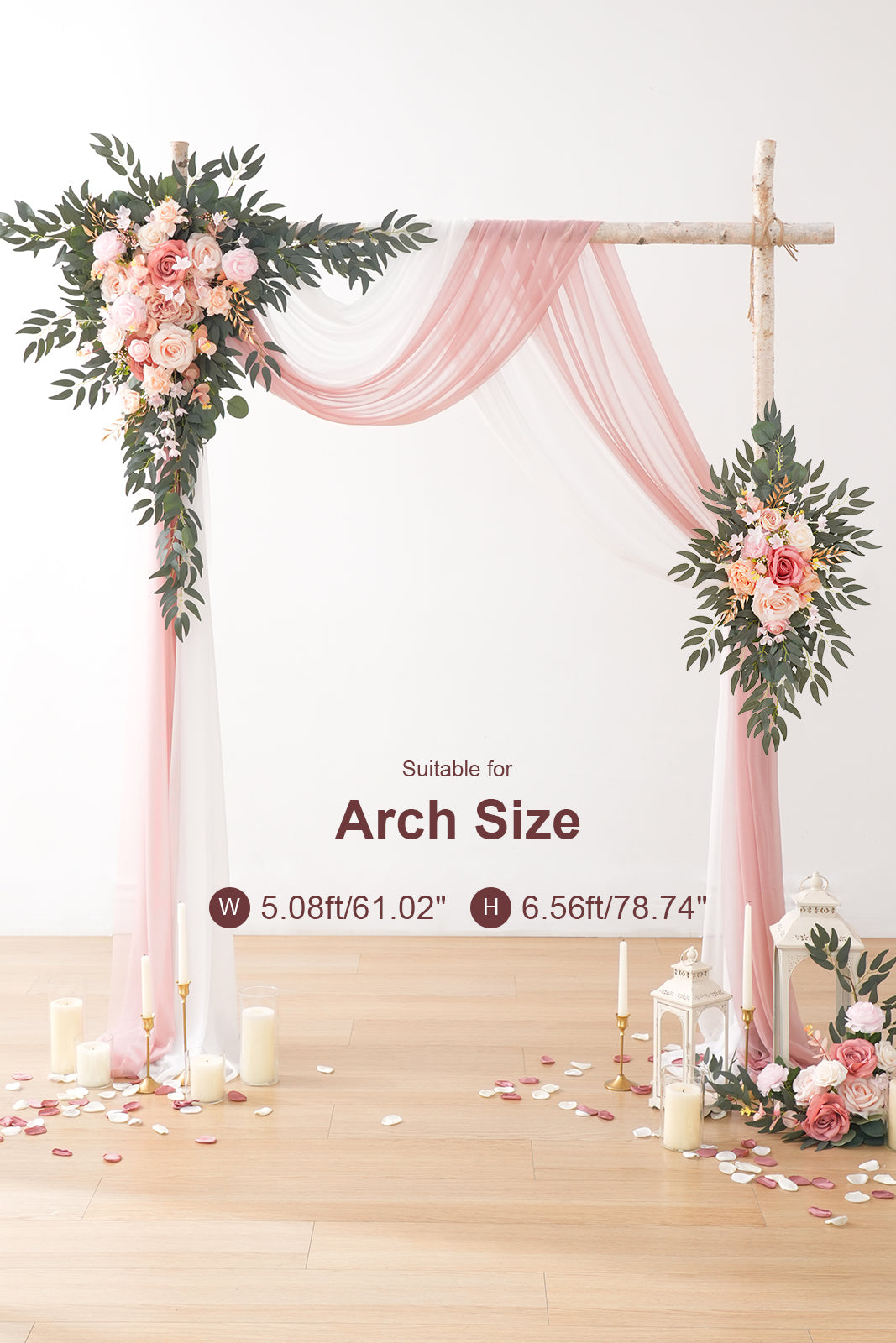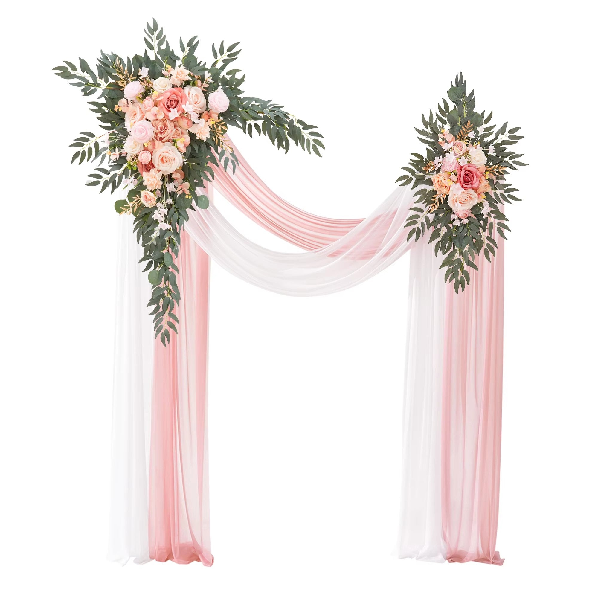 Color Inspiration: This set includes 2 romantic floral arrangements with roses and greenery, plus 2 chiffon drapes. Featuring adjustable green Velcro, it easily attaches to arches, canopies, or railings. Transition seamlessly from weddings to home decor—twist garlands on staircases, drape fabrics over curtains, or frame fireplaces. Ideal for parties, baby showers, birthdays, or photo studios. The reusable design works indoors or outdoors, offering versatile elegance for any event.